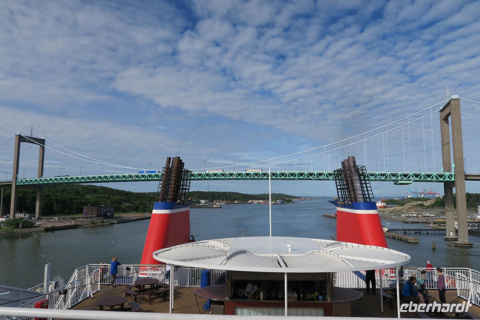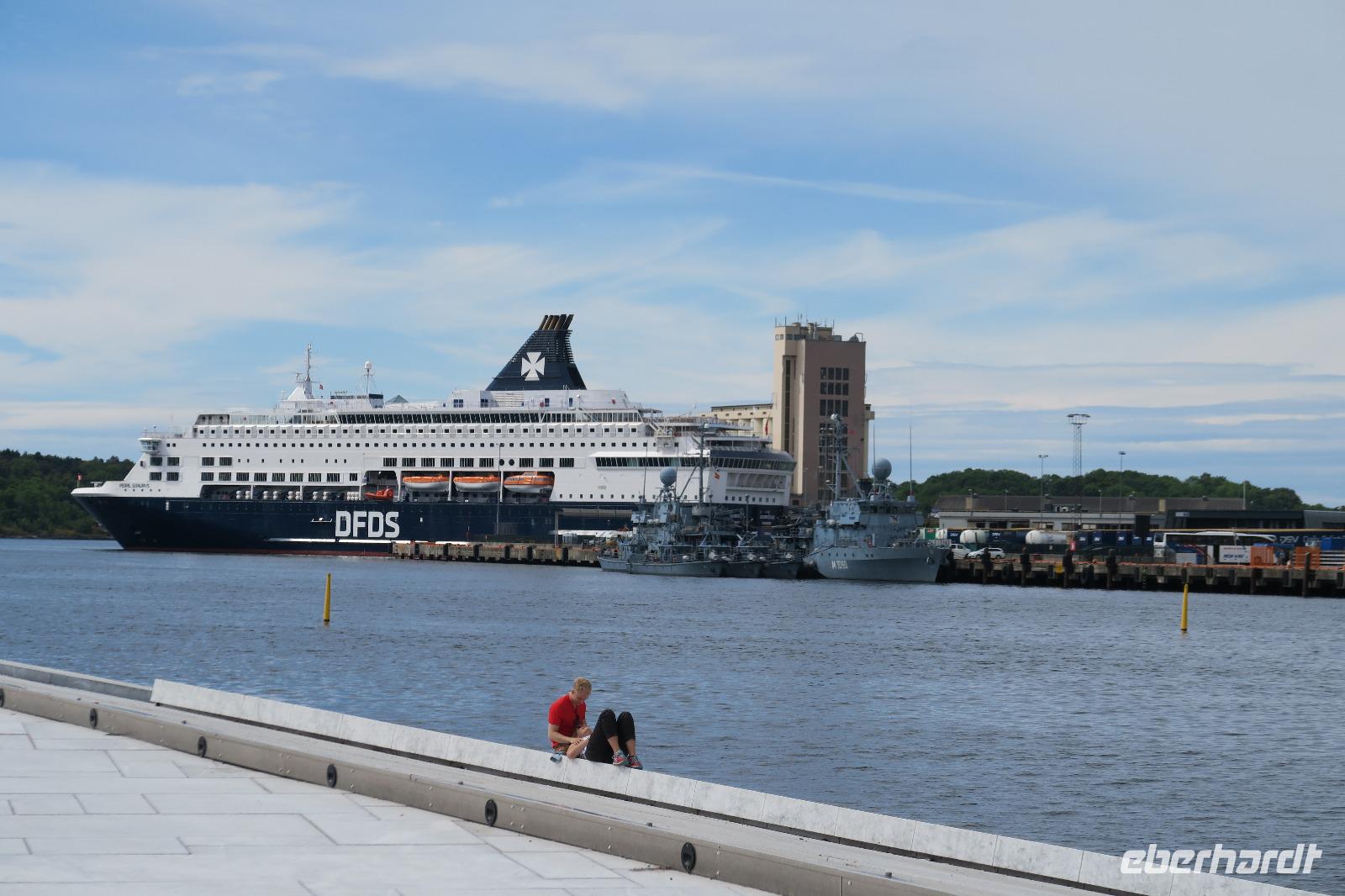 Über das Dach der Oper ging es zurück zum Bus und zum nahegelegenen Bahnhof. Hier haben wir nun unsere Flugreisenden mit Tränen in den Augen verabschiedet. Die restlichen Gäste des Busses machte sich nun mit uns auf den Weg zur Fähre nach Göteborg. Nach Ankunft ging es auch gleich zum einchecken. Um 17:45 legte die Fähre ab. Man hatte genug Zeit um das Auslaufen zu beobachten und zu fotografieren.