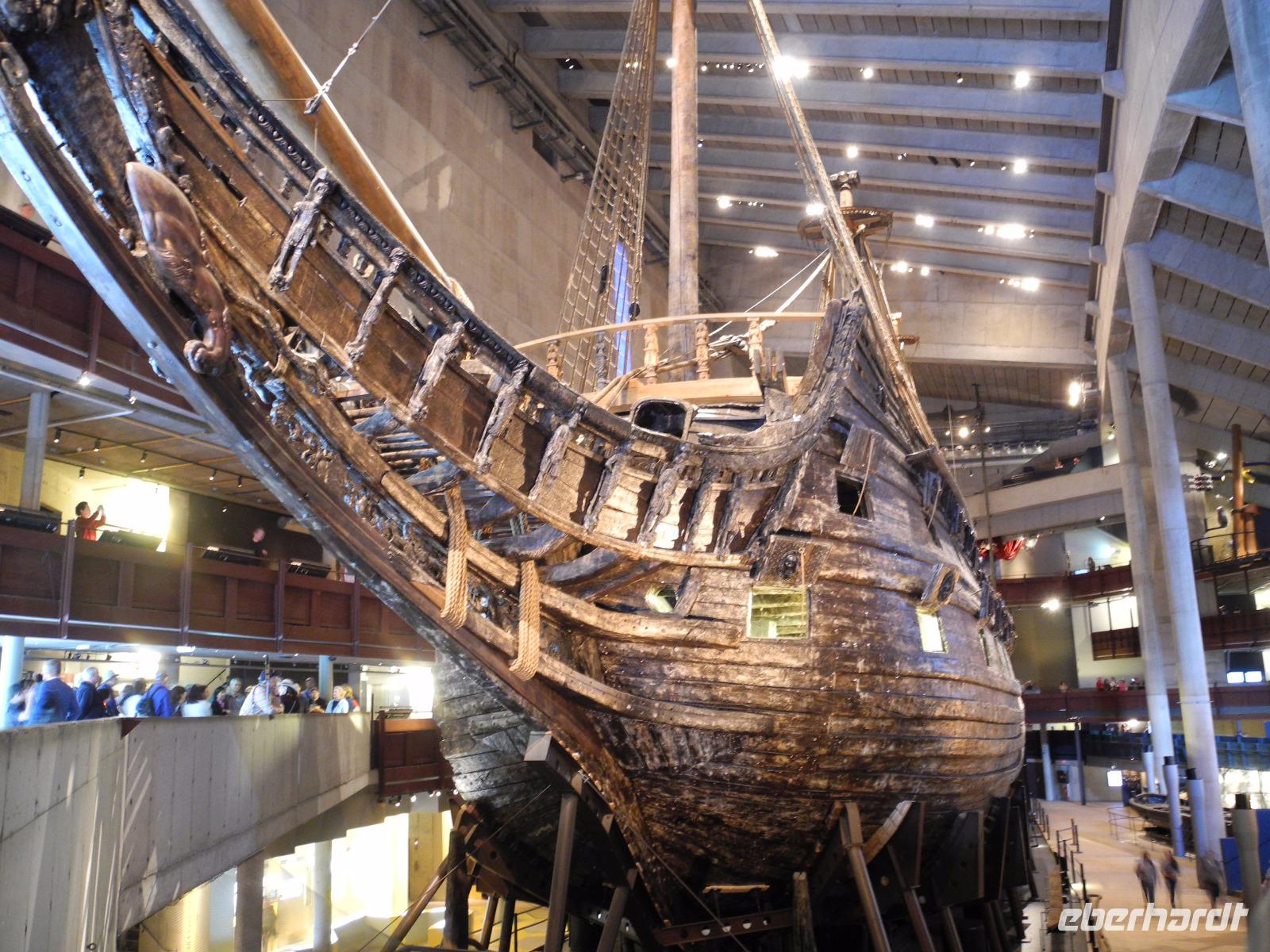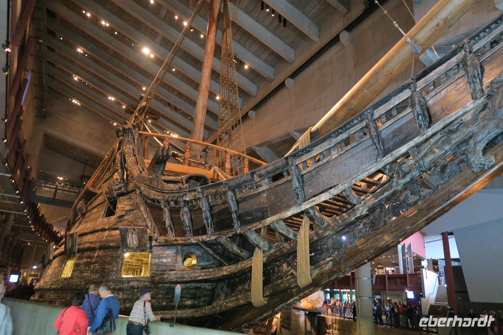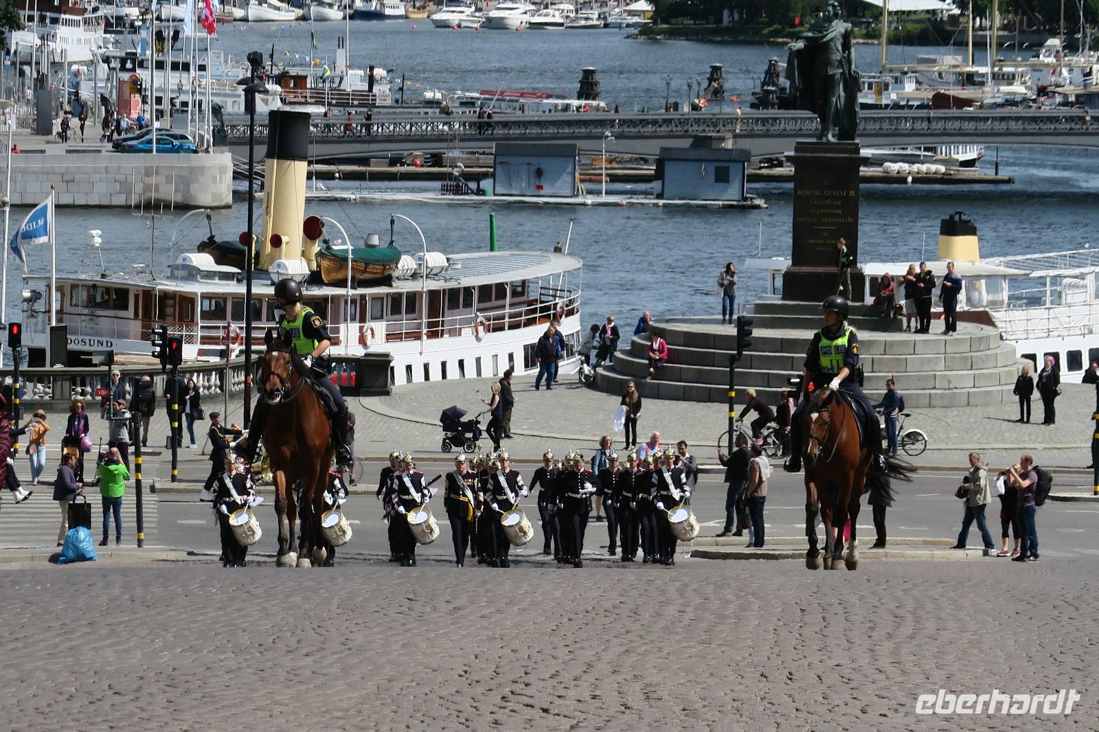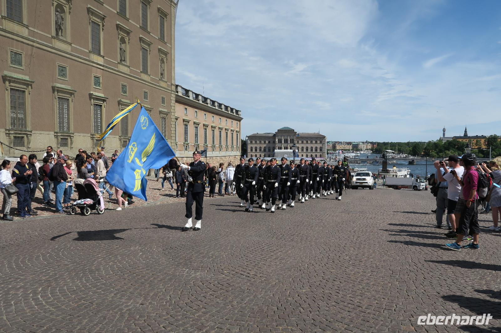 Unser Stadtführer wartete am Schloss und fuhr mit uns durch Stockholm. Das Wetter war bewölkt und etwas frisch. Nach ca. 2 Std sind wir dann ins Wasa Museum gegangen, wo es dann das Schiff „Wasa" in voller Größe zu bewundern gab. Vorab sahen wir einen Film über den Untergang und der Bergung des Schiffes nach 333 Jahren. Nach einer Stunde mussten wir leider das Museum verlassen, denn es ging zur Wachablösung um 12:10 am Schloss. Diese findet täglich statt.