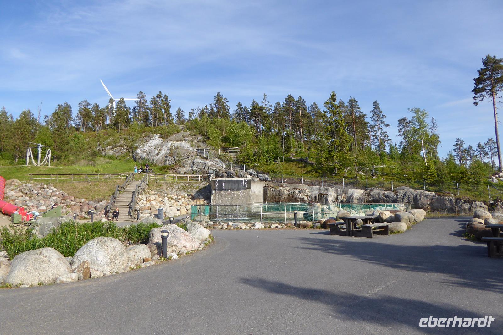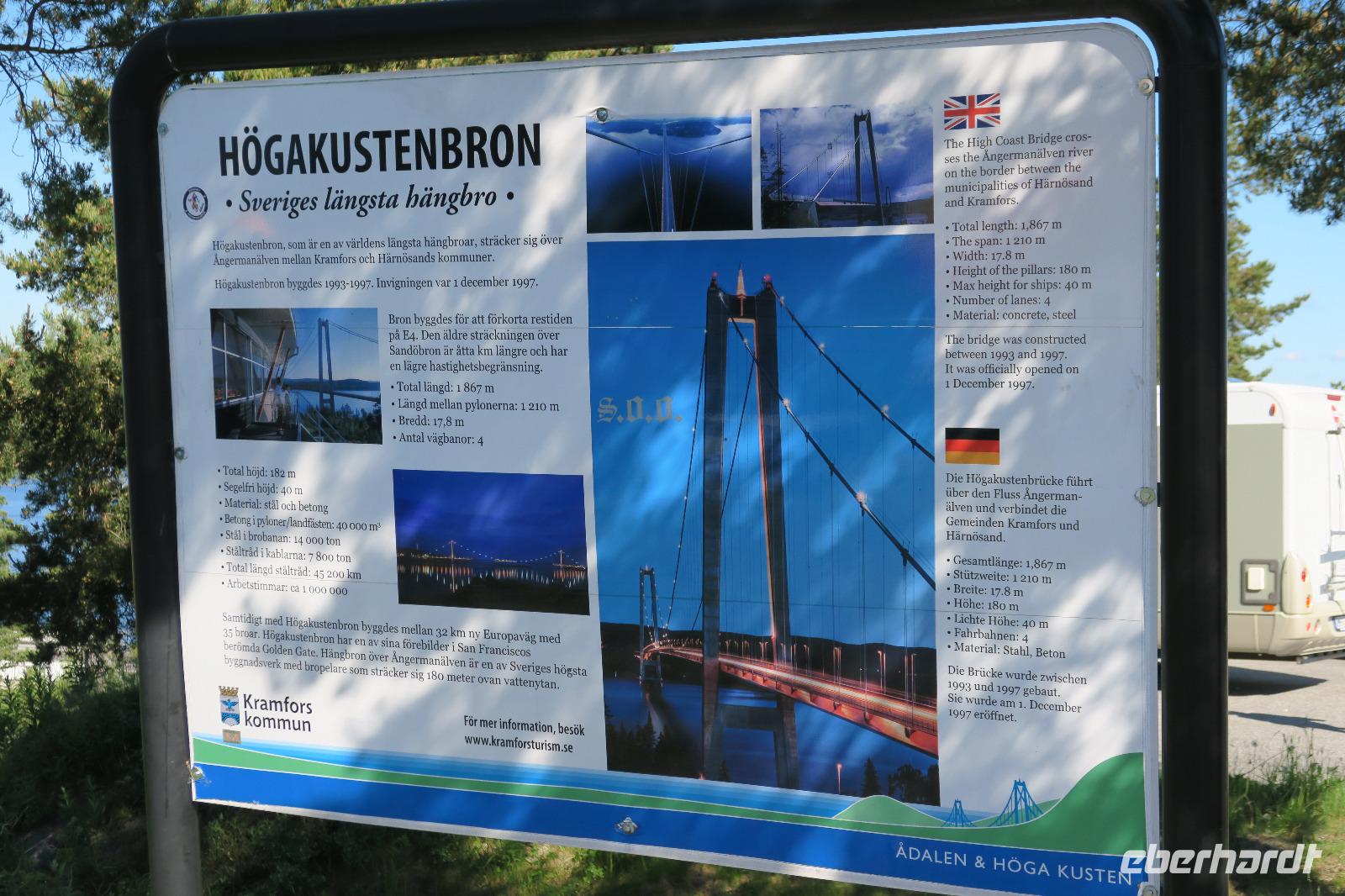 Unser erster Halt war an der Brücke „Höga Kustbron". Traumhafte Aussicht auf die Brücke 1870m lang und über die schöne Gegend. Nächster Stopp an der Olofsfors Bruk. Dort ist eine ehemalige Eisenhütte vorhanden. Nach einem kleinen Imbiss ging es weiter zur Kirchstadt in Lövanger. Die "Stadt" wird als Übernachtungsmöglichkeit genutzt. Derzeit befanden sich Flüchlinge in den Häusern.