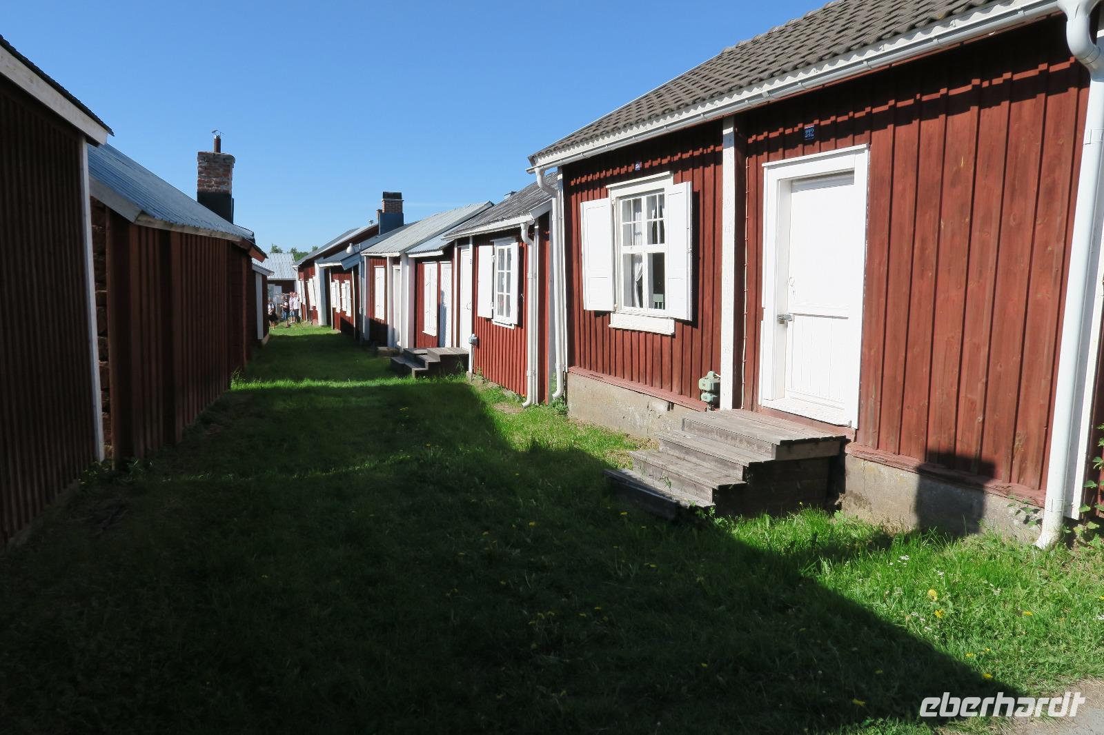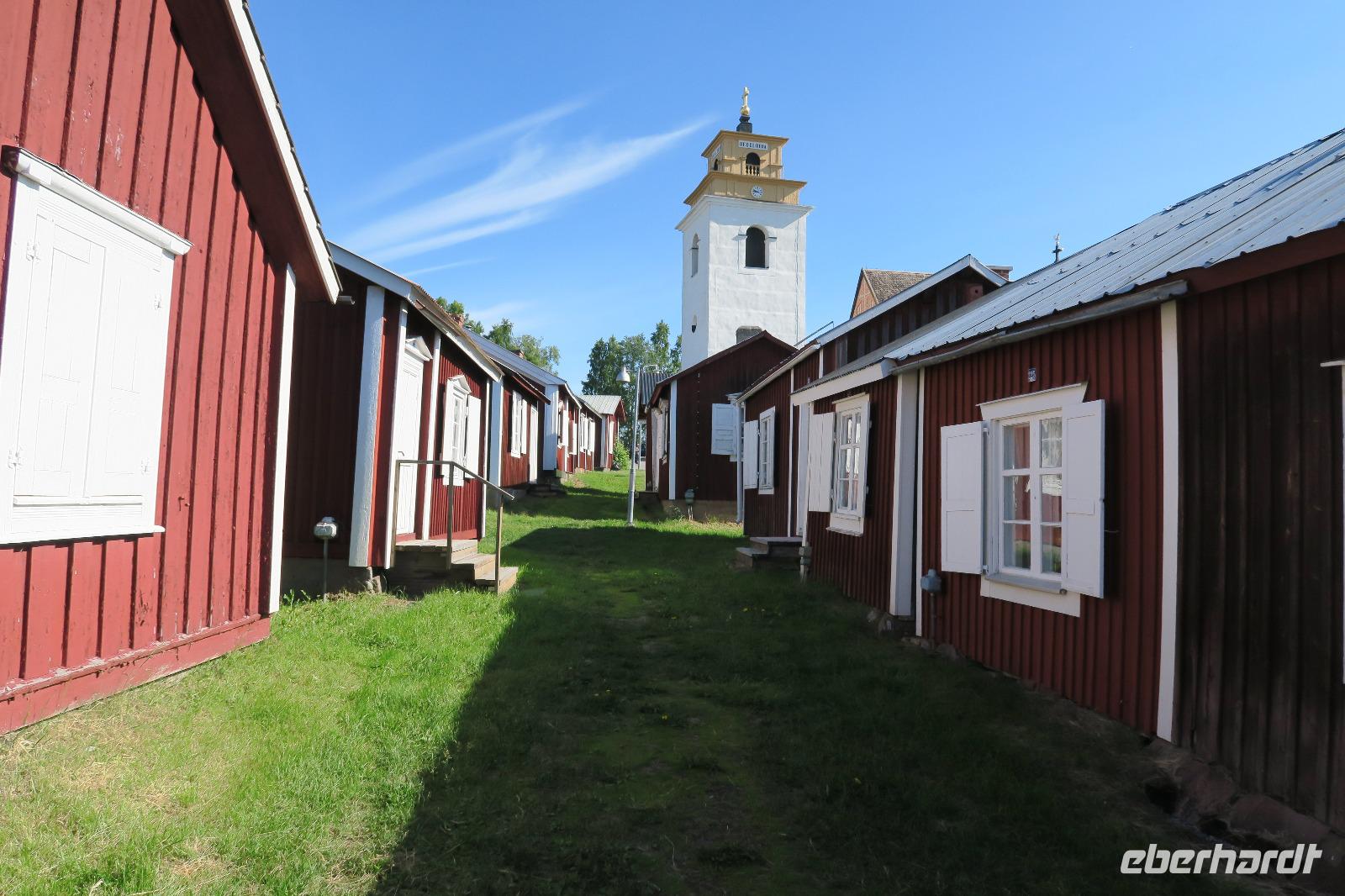 Es begann wieder mit traumhaftem Wetter. Schon morgens über 20 Grad und blauer Himmel. Unsere erste Station war die „alte Stadt" in Lulea. Weltkulturerbe. Hier hielten wir uns 45 min auf. Man konnte sich die Häuser sowie die Kirche ansehen. Alles noch recht gut erhalten. Auch ein Blick in die Häuser war immer möglich. Die Häuser sind in Privatbesitz. Sie haben kein fließend Wasser also kein WC oder Bad. Man nutzt sie meist übers Wochenende zum ausruhen. Die Kirche und die Gemeinde sind auch noch aktiv.