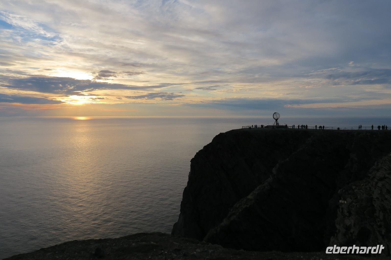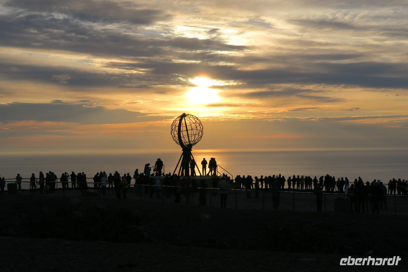 Wir hatten noch genug Pause um uns auszuruhen. Um 21:30 ging es bei gutem Wetter 15 Grad zum Nordkap. Unser Fahrer ein Schwede, dunkelhäutig mit langen Rasterlocken war der Hingucker. Oben angekommen ging es gleich zum Film ins Kino. Thema die 4 Jahreszeiten am Nordkap natürlich in „deutscher Sprache". Das Wetter für das Nordkap (300m hoch MSL) war traumhaft. Es wurden viele Fotos geschossen. Wir konnten teilweise gut die Sonne beobachten wie sie wieder aufging. Um 00:15 ging es dann zum Hotel zurück.