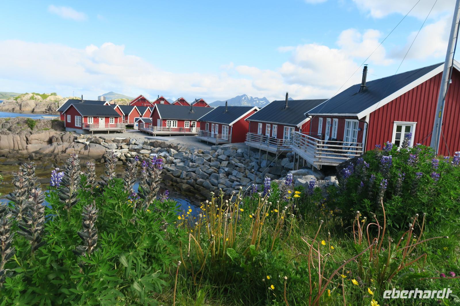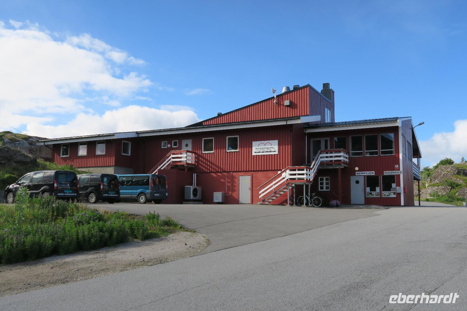 Zum Hotel waren es jetzt noch 1,5 Std. Staties Rorbuscenter. Die Fischerhäuser waren schön gelegen am Wasser. Am Anfang dachten die Gäste, nachdem ich immer drei Parteien in ein Haus stecken wollte, dass das ja wohl so nicht geht. Die Gesichter sahen nicht glücklich aus. Es war dann aber doch ganz schön und es gab keine Klagen.