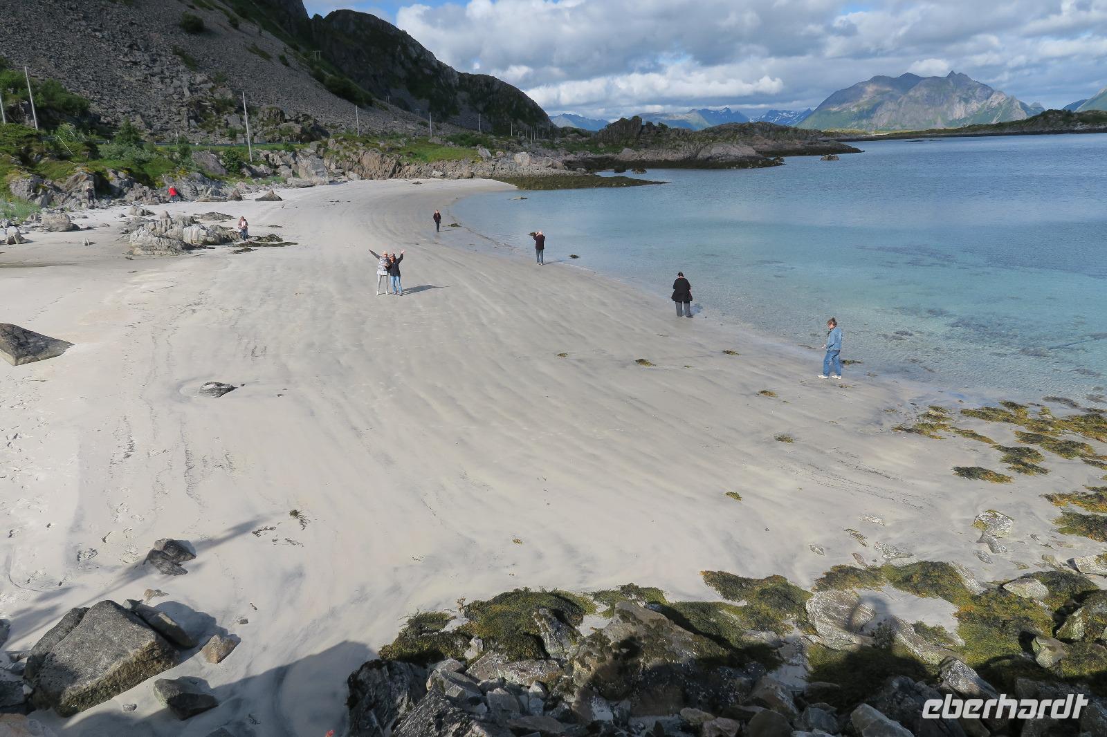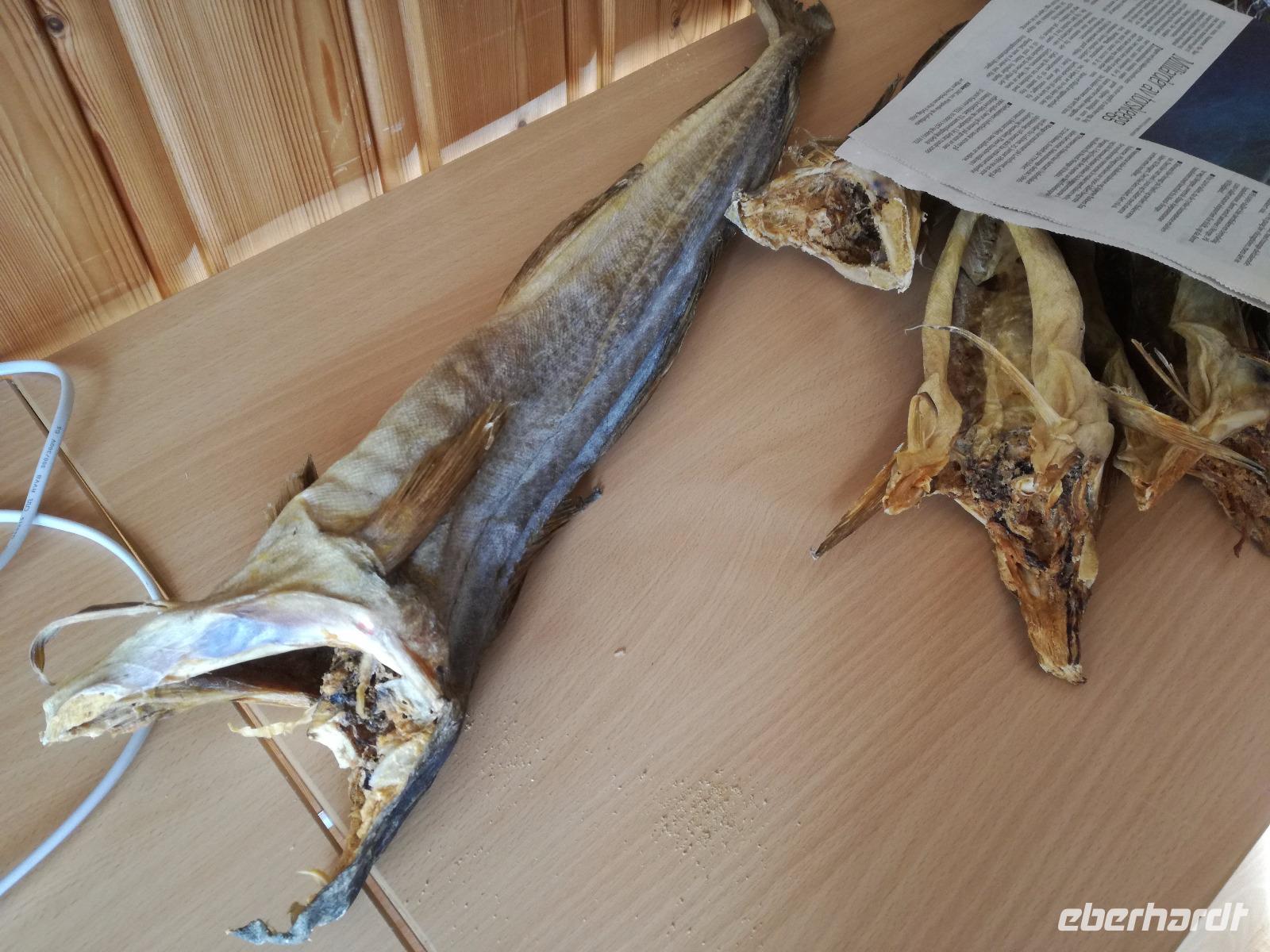 Lag da ein U Boot? Ich glaube schon. Auf dem Weg zu den Hütten noch einen letzten Stopp an einem kleinen Sandstrand. Dieser ist aber recht schön gewesen und die Sonne zeigte sich kurz für ein gutes Foto. An den Hütten angekommen gab es einen Vortrag über Stockfisch. Sehr informativ und gut gemacht. Das Abendessen rundete den Tag ab.