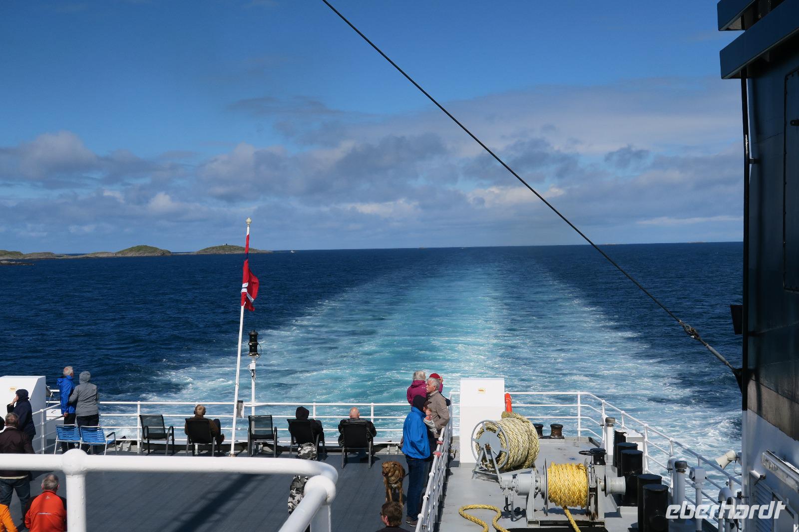 Sehr wechselhaftes Wetter am Morgen. 3 Fährüberfahrten bei 21 Grad. Traumwetter während der Überfahrten. Die ganze Zeit über ist man im Freien geblieben. Zu bewundern gab es gleich die 7 Schwestern. Diese hatten noch nicht ausgeschlafen und lagen noch etwas im Nebel versteckt.