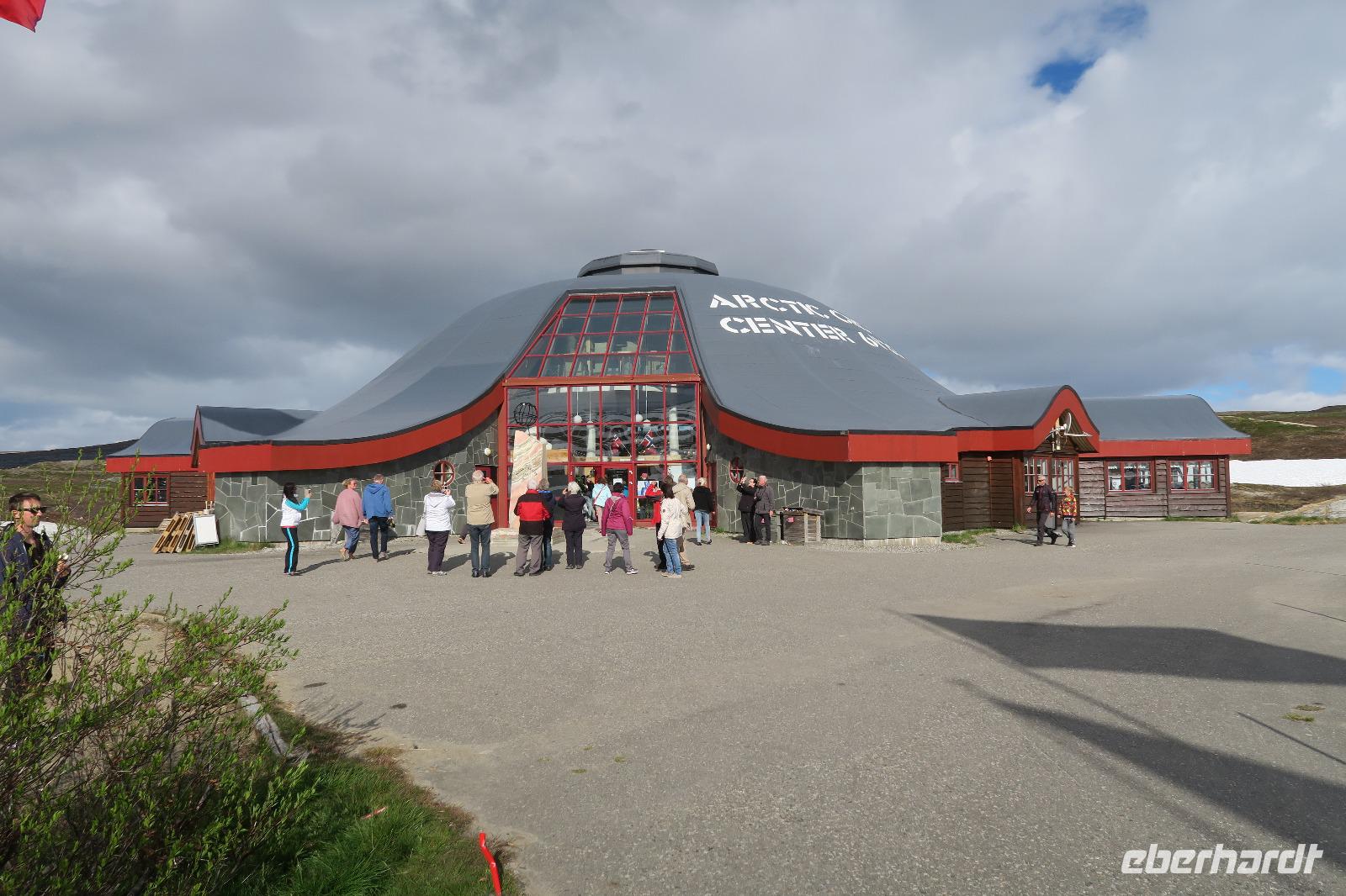 Nach der Pause ging es weiter durch die Natur entlang der Berge Richtung Polarkreis in ca. 1000 m Höhe. Es war dort sonnig und es lag auch noch rundherum Schnee auf den Bergen. Auch hier machten wir ein Gruppenbild als Andenken. Das Polarkreiscenter passt auch besser zum Polarkreis als auf finnischer Seite der Weihnachtsmann.