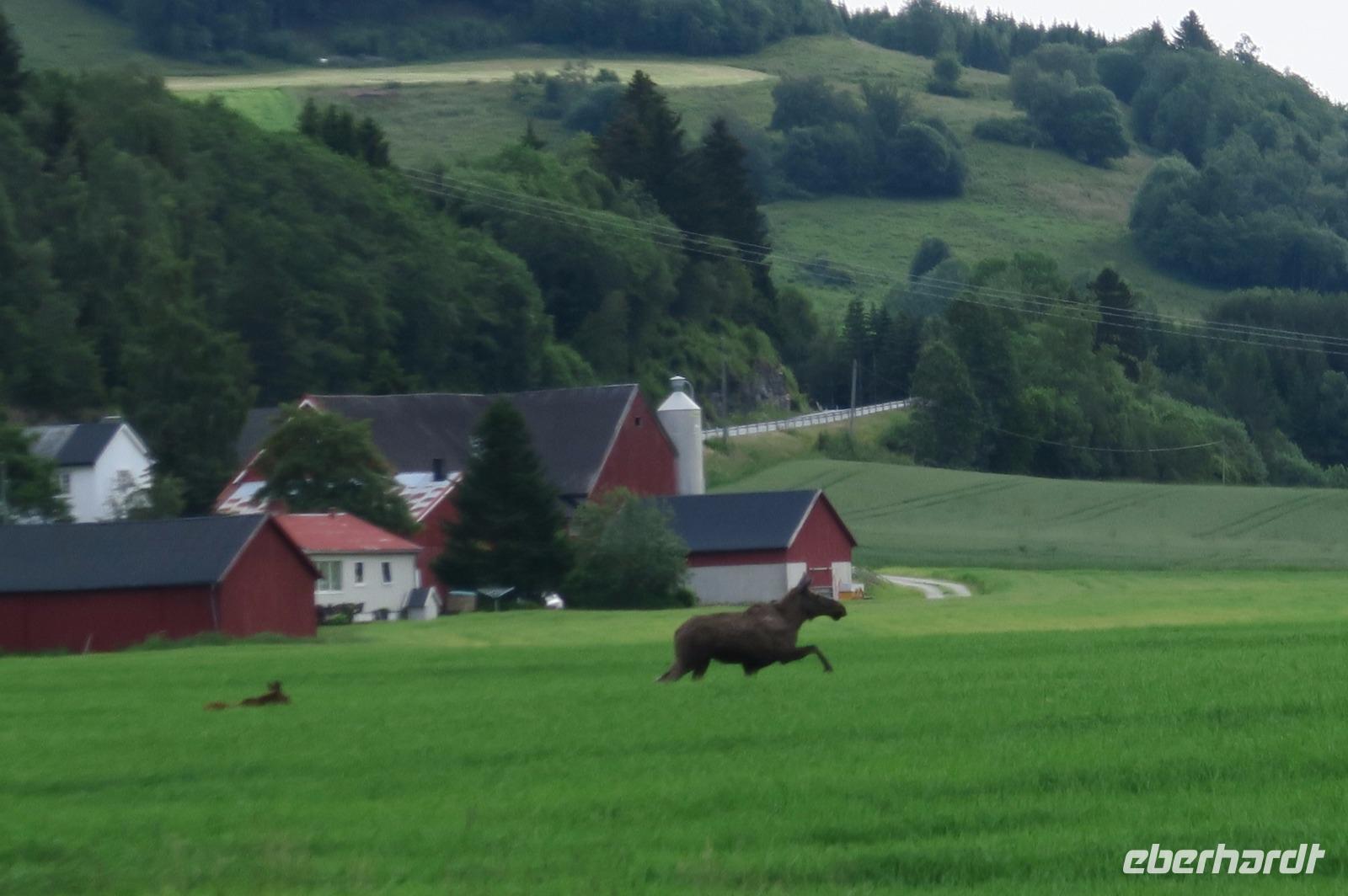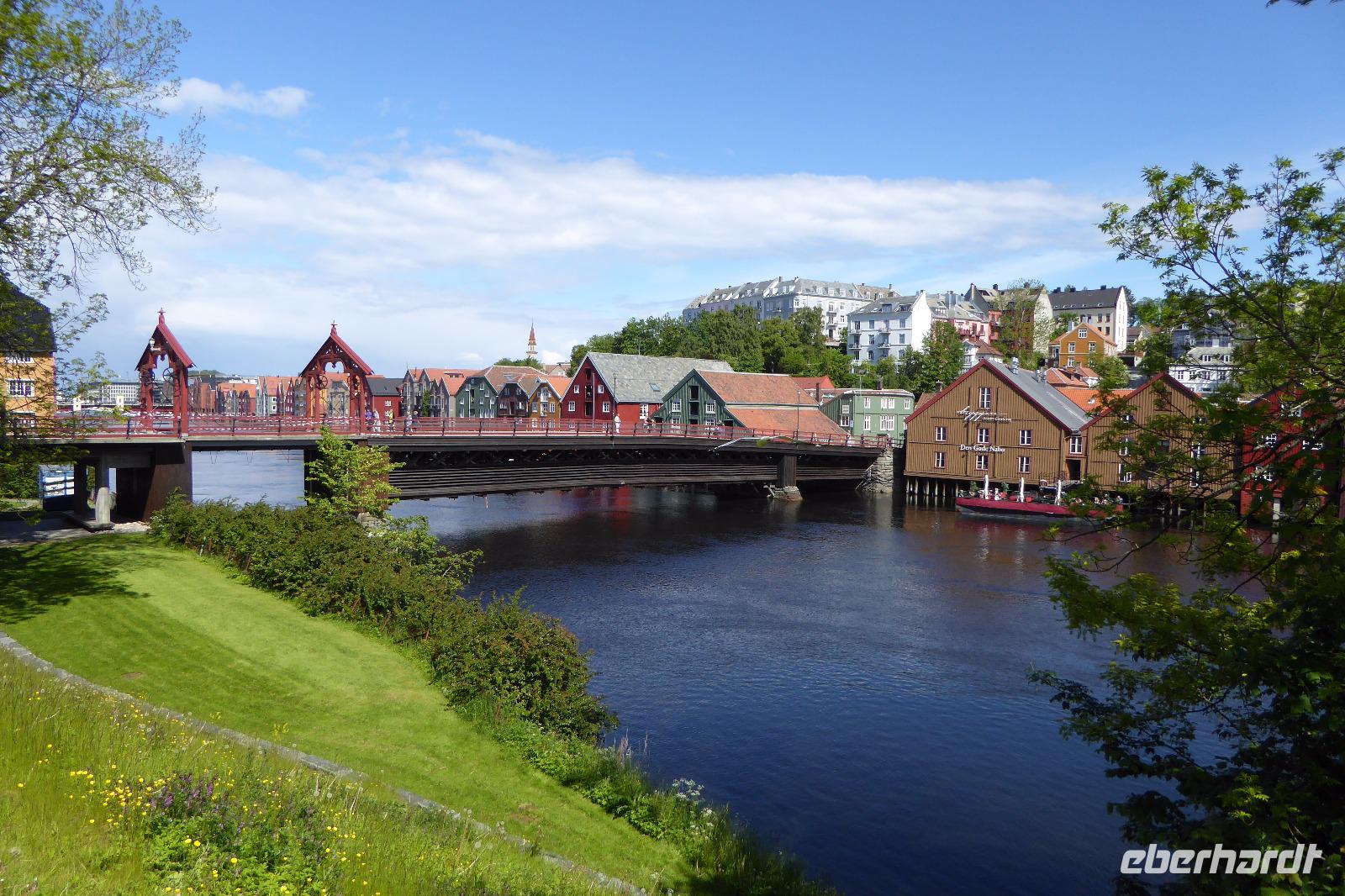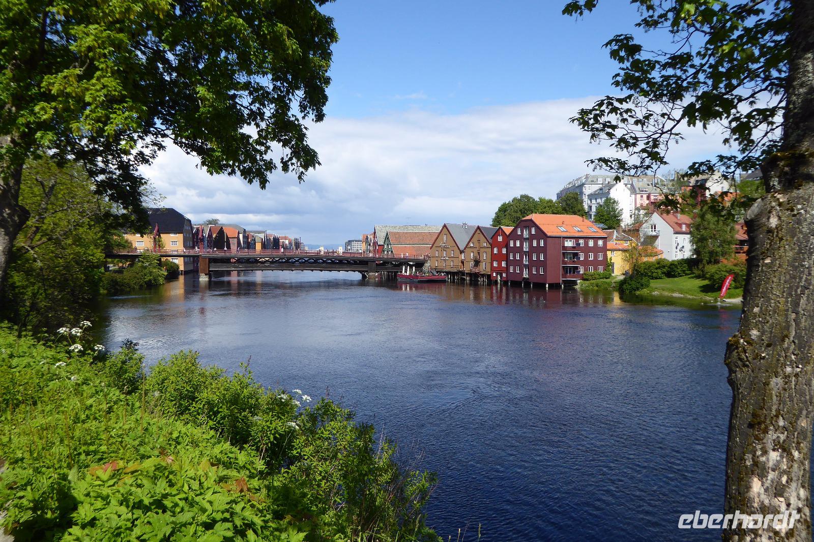 Das Wetter heute sehr wechselhaft. Dann die Sensation für alle im Bus . Eine Elch Kuh mit einem Jungen liefen von einer Seite hinter dem Bus auf die andere Seite durch die Felder. Das war wirklich eine Sensation. Es ging nun Richtung Trondheim. Hier hatten wir 2 Std. Aufenthalt um uns den Ort anzusehen. Einige Gäste besuchten auch den Nidda Dom 100m hoch 10€ Eintritt. Andere wiederum bummelten durch die Stadt oder am Fluss entlang.Hier gab es die schönen Lager und Geschäftshäuser aus dem 1700 Jahrhundert zu bewundern. Da alles im Ort sehr central liegt konnte man in 2 Std. das Wichtigste bequem besichtigen. Die Stadt ist mit 180T Einwohnern die dritt größte Stadt in Norwegen.