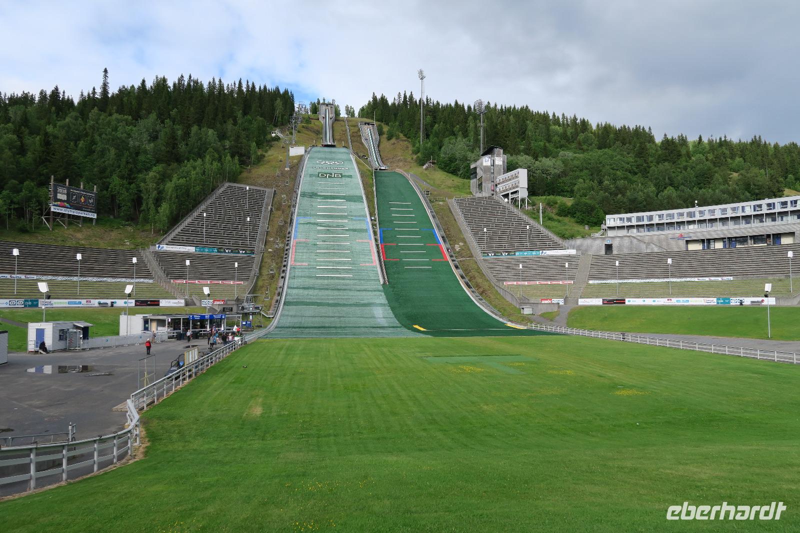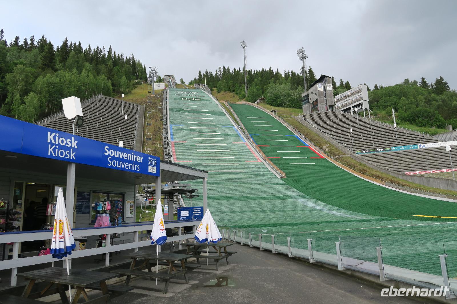 Nach 2 Std. ging es leider bei Dauerregen durchs Fjell. Nur ein kurzer Fotostop für die „Harten" im Regen. Leider waren die Farben sehr verwaschen. Nur gelb konnte man bei dem Wetter erkennen. Vor Dombas dem nächsten Halt hörte der Regen zum Glück auf. Die Stabskirche in Ringbu war unser nächstes Ziel. Leider war sie geschlossen. Von außen betrachtet war es eine recht schöne Kirche. Der Besuch der Sprungschanze in Lillehammer rundete den Tag dann ab. Der Ort ist sehr bekannt seit den olympischen Winterspielen 1994. Bei Sonnenschein konnte man auch hier schöne Fotos der Schanze sowie der ganze Umgebung machen. Der Sessellift war leider außer Betrieb. Ein Gast „Frau „ hatte den Mut und die Kraft bis zum Absprung hochzulaufen. Es sollen je 800 Stufen gewesen sein. Das Ganze in 20 min. Das war schon einen starke Leistung. Unser Hotel lag in Hama einem Wintersportort ca 30000 Einwohner und hieß Scandic Hama Hotel.