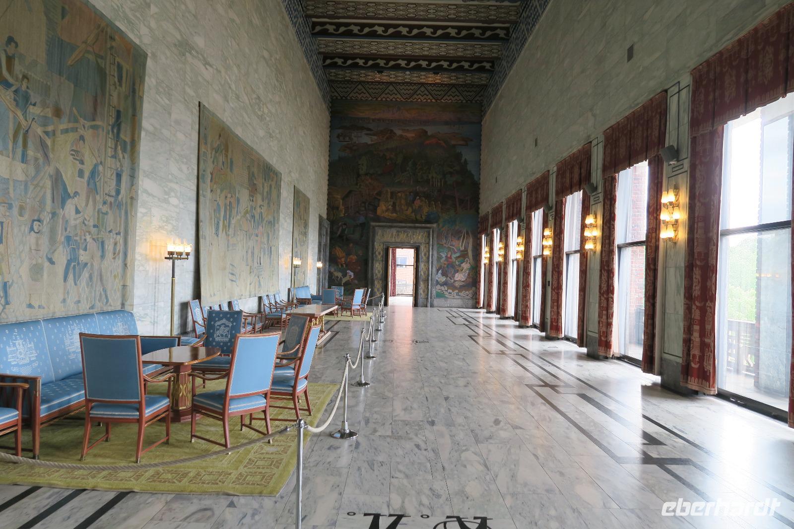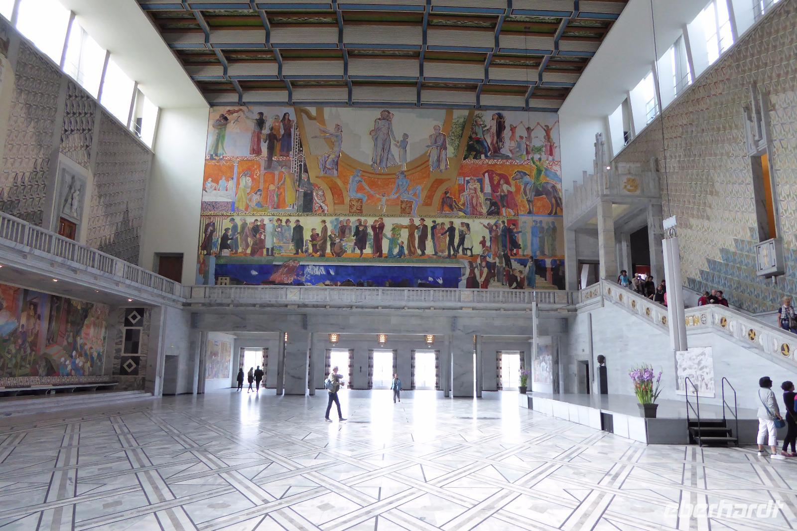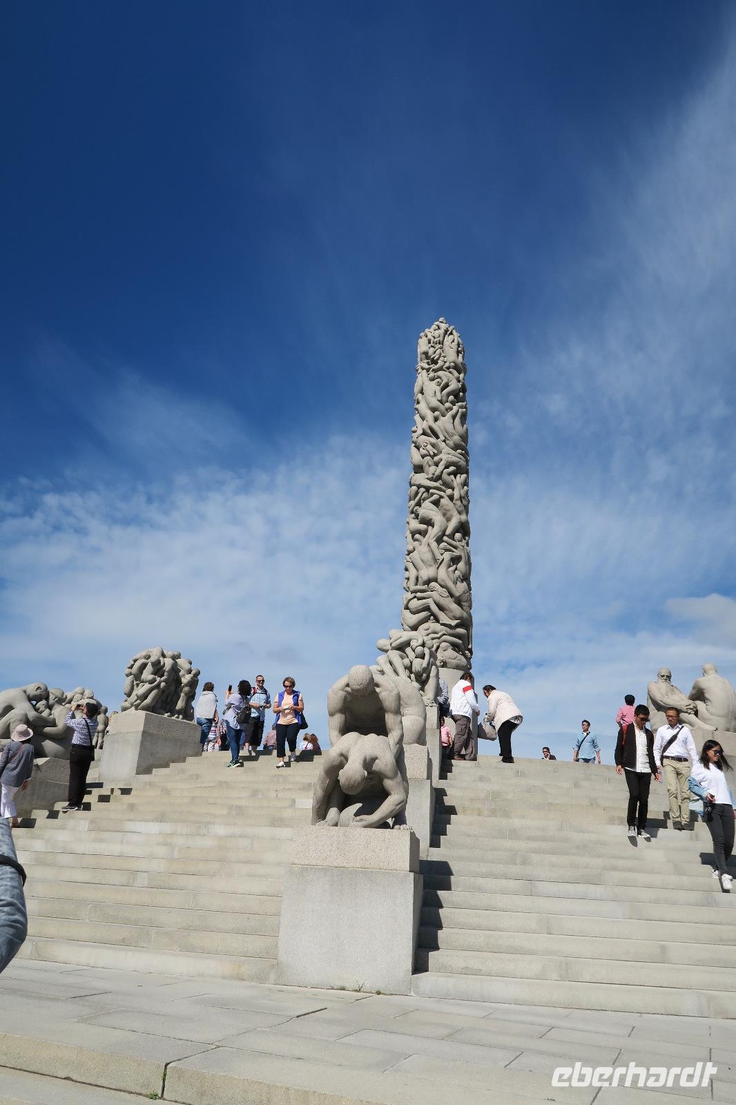 Vom Hotel ging es nach Oslo der Hauptstadt mit 630 000 Einwohnern und zur Stadtrundfahrt. Da wir schon eine Stunde eher vor Ort waren, konnten wir uns das Rathaus vorher ansehen. Wer mochte konnte noch einen Blick auf das Theater und das Schloss werfen. Eine örtliche Stadtführerin brachte uns als erstes zum Vigelandpark. Dieser Park sehr schön angelegt und ein Augenschmaus. Hier sind wir in 30 min zu Fuß durch den Park gelaufen bei 22 Grad. Es war recht voll im Park wie immer. Viele Touristen waren unterwegs. Wir bekamen viele Informationen über die Skulpturen und dem Leben von Vigeland.
