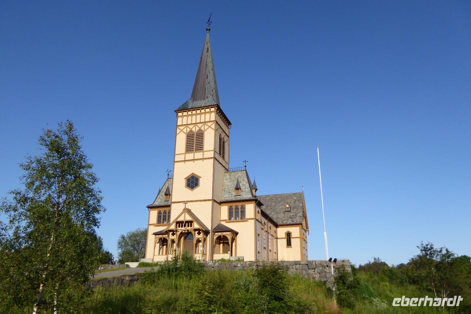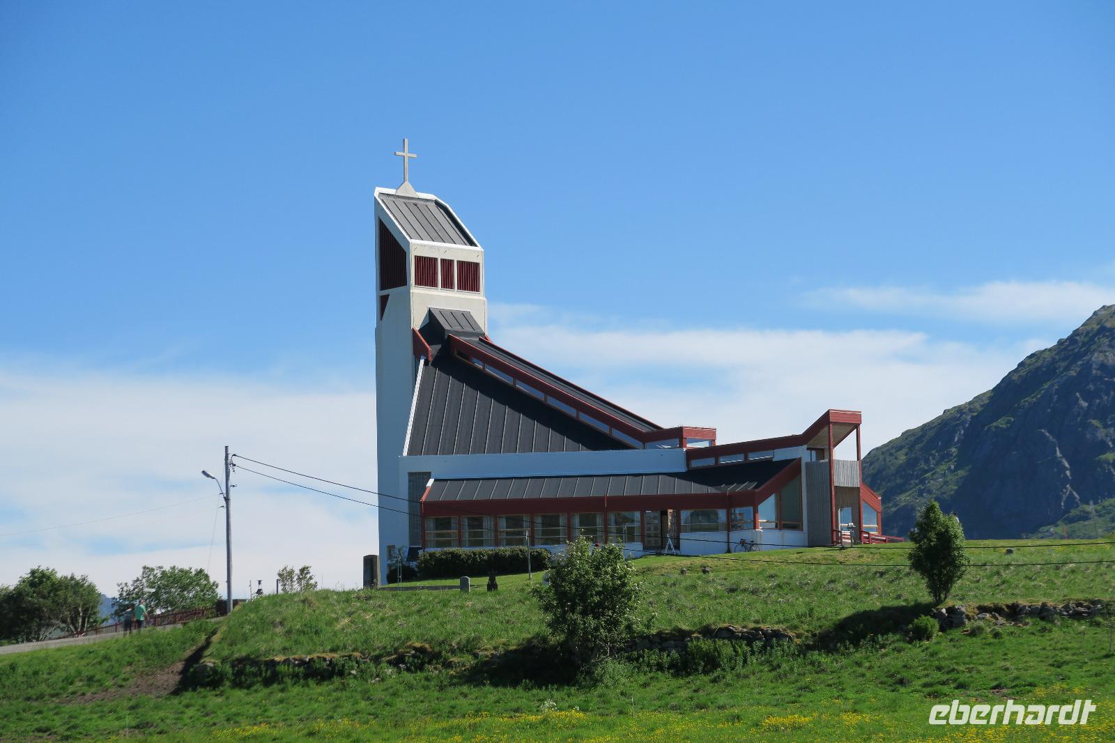 Nachdem wir die Suppe ausgelöffelt hatten fuhren wir nach Svolvaer. Die Lofotenkatedrale von 1898 wurde auch auf Fotos festgehalten. Leider war der Opferstein abhanden gekommen. 45 min hielten wir uns in der Hauptstadt Svolvaer auf. Das kleine Fischerdorf Henningsvaer 427 Einwohner war das nächste Ziel. Vorbei an einem schönen Sandstrand und den Kletterfelsen mit Kletterern in den Wänden. Die Sonne schien bei 12 Grad und so war es möglich schöne Fotos zu machen.