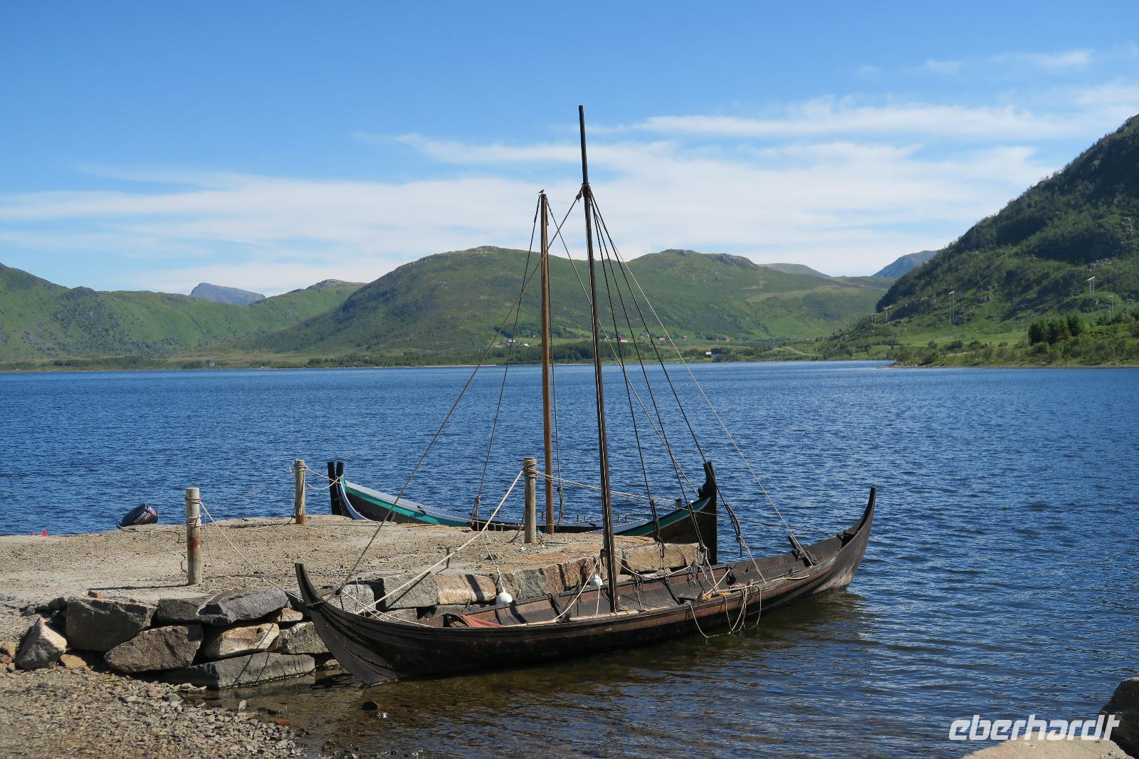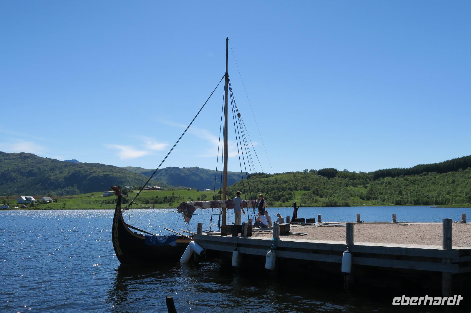Unser erstes Ziel war Leknes der zweit größte Ort und Hafen. Hier sind wir aus Zeitgründen nur entlang gefahren. Dann ging es aber auch schon zum Wikinger Museum. 1,5 Std Freizeit vor der Führung. Leider waren nicht alle Stationen besetzt, so dass man nicht alles machen konnte. Besonders traurig war, dass das Wikinger Schiff nicht einsatzklar war. Um 12:00 dann die Führung im Wikingerhaus. Eine Italienerin erzählte uns auf Deutsch was sich so abgespielt hat in dieser Zeit. Danach gab es die obligatorische Suppe für alle.