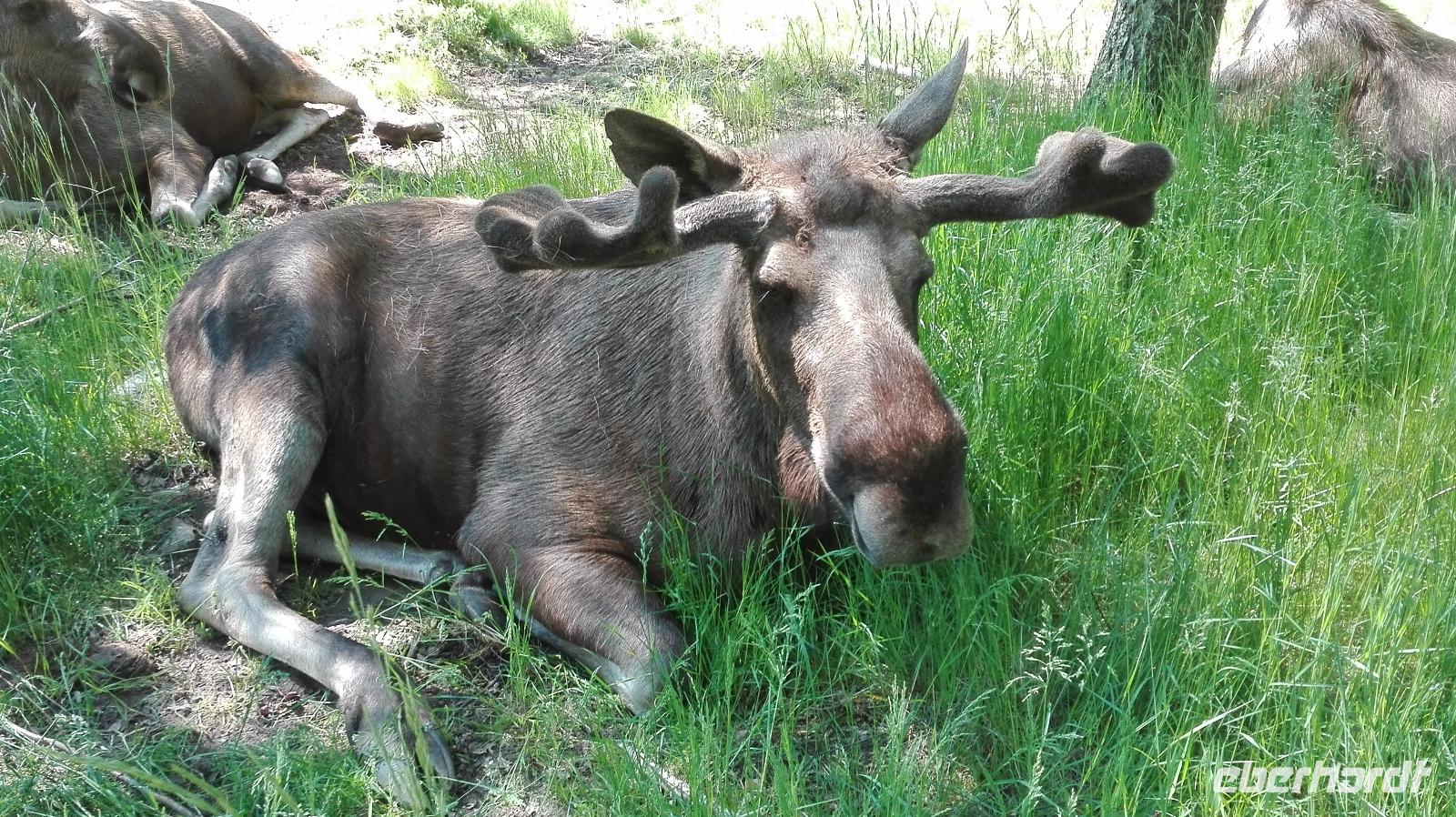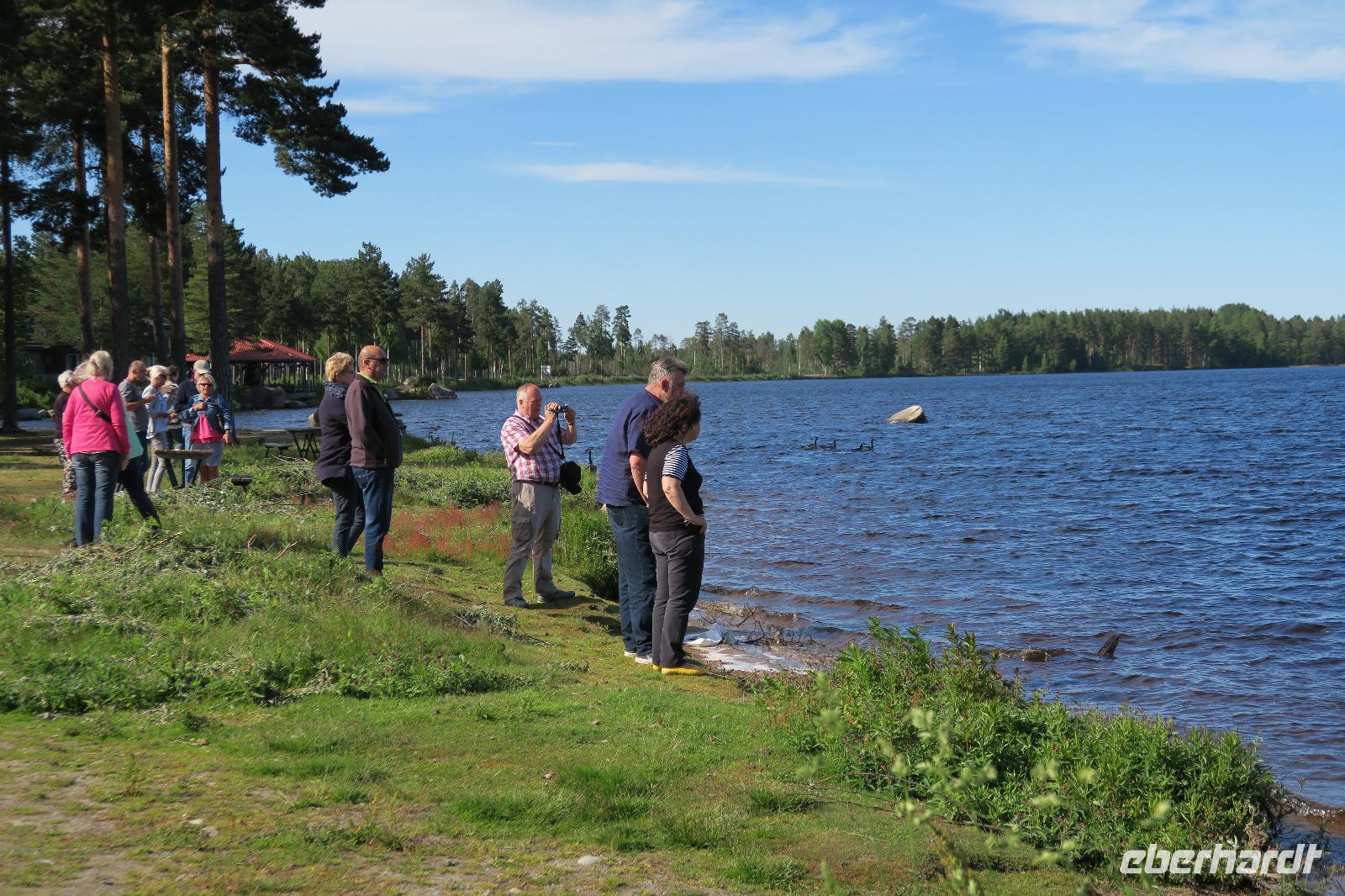 Auf dem Weg von der Kirchstadt zeigte sich wie wichtig die Information war „Raus sehen und nach Elchen Ausschau halten" und schon hat der halbe Bus zwei Elche am Waldrand gesehen.