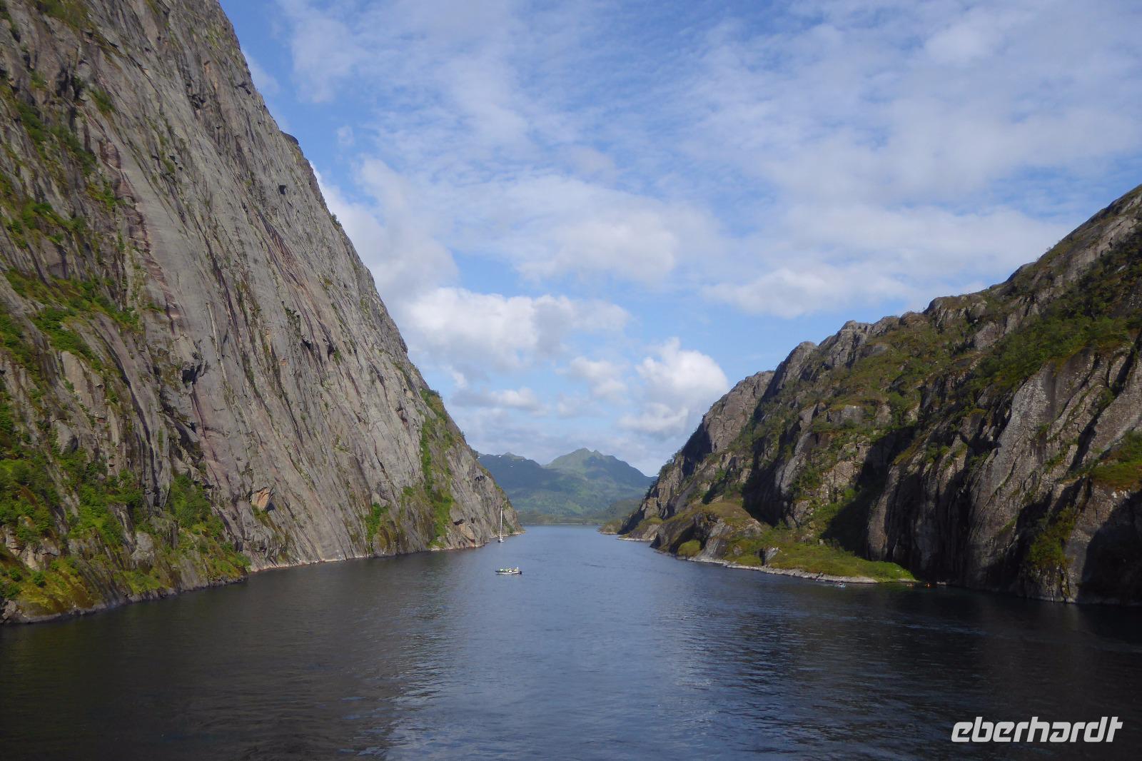 Vom Schiff aus konnte man sie dann aber doch noch frei sehen. Diese "Bergschwestern" sind um die 1000m gewesen
