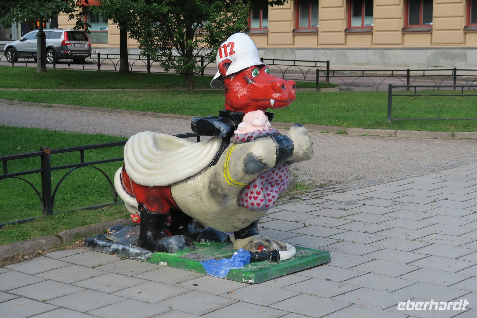 Im Anschluss konnten wir uns noch 1,5 Std in der Stadt aufhalten. Die kleinen Gassen luden bei dem Wetter zum laufen und zum sitzen ein. Danach ging es Richtung Sundsvall ins Hotel Quality. In dieser Stadt sind die kleinen Drachen beheimatet. 30 Stück soll es dort geben.