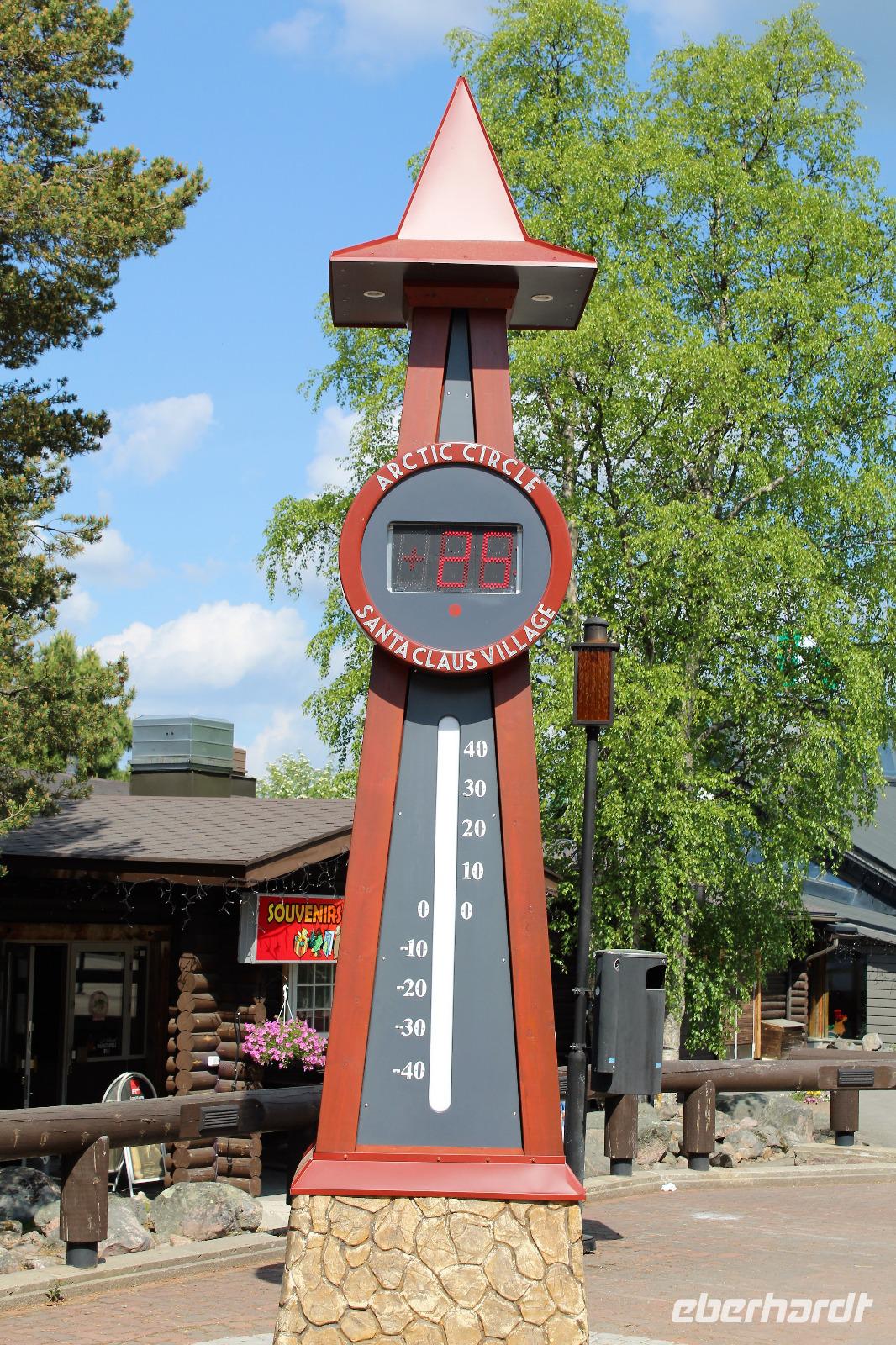 Hier befindet sich auch der Polarkreis. Diesen haben wir in vier Gruppen als erstes übersprungen und sind in das Weihnachtsmann Dorf "eingefallen". Es war recht leer vor Ort. Wenig Touristen. Überall Andenken zu erwerben. Weihnachtsmusik war auch zu hören. „O Tannebaum" das Ganze bei 26 Grad. Hier haben wir unser Gruppenfoto gemacht. Viele der Gäste haben eine Weihnachtskarte nach Hause geschickt. Diese sollte dann pünktlich zu Weihnachten ankommen.