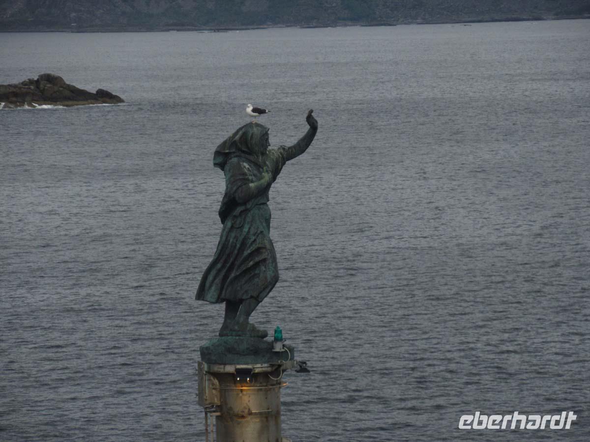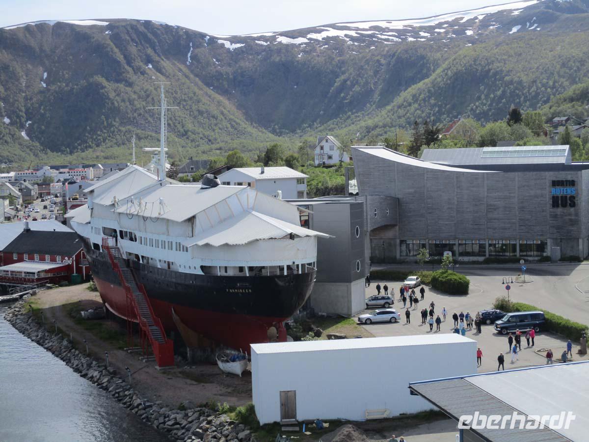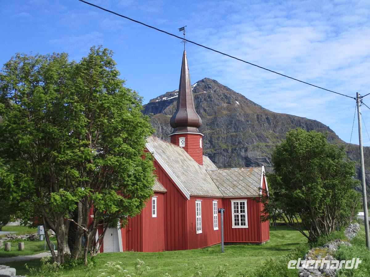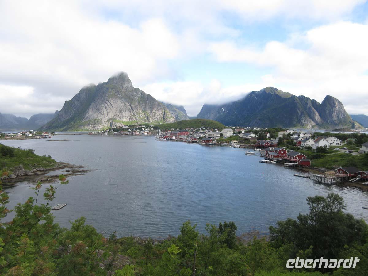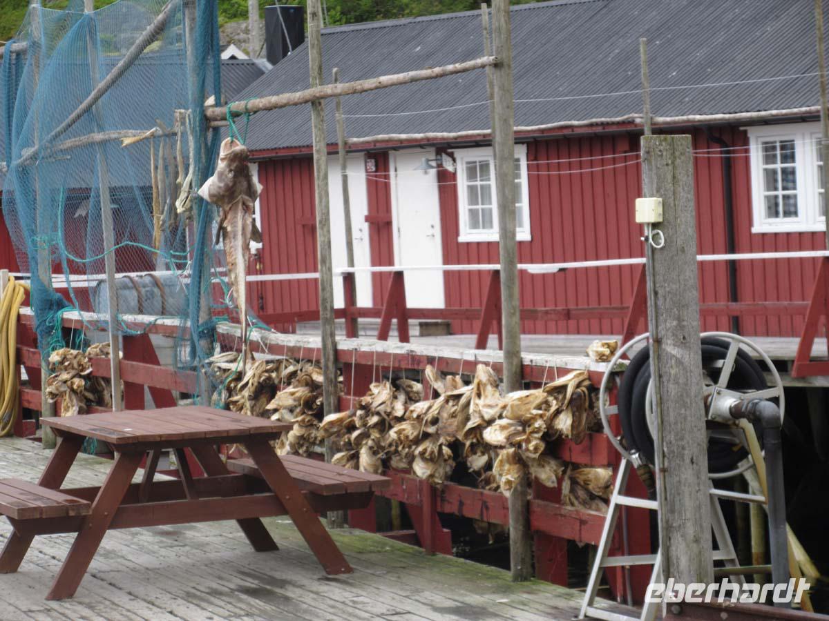 Unsre Rundfahrt über die Lofoten beginnt mit einem authentischen Dorfbild, welches der ursprüngliche Ort Nusfjord abgibt. Hier bietet sich hautnah ein Blick auf die Hjeller, mit Stockfisch behängten Gestelle rund um und auch in der Ortschaft. Oft liest man, daß Nusfjord auf der Welterbeliste der Unesco steht. Das stimmt jedoch nicht. Trotzdem lohnt ein Besuch dieses kleinen Fischerdorfes, das sich auf der Inselgruppe als eines der ursprünglichst erhaltenen präsentiert. Ein Höhepunkt ist das Wikingermuseum in Borg. Hier hat man ein nach Originalbefunden ausgegrabenes Versammlungshaus aus der Wikingerzeit nachgebaut. Es gibt für uns eine Führung mit einer Suppe, wie sie sicher auch die Nordmänner oft gegessen haben. Ausstellungsräume und ein Film runden den Besuch hervorragend ab. Kurz vor Svolvaer besuchen wir die so genannte Lofotenkathedrale in Kabelvag. Eine Kathedrale ist es nicht. Sie wird nur wegen ihrer Größe so genannt. 1200 Sitzplötze hat sie. Am Nachmittag erreichen wir Svolvaer. Die kleine Stadt ist schnell erkundet. Auf dem zentralen Platz ist Markt und auch eine stattliche Anzahl von Geschäften gibt es im Hauptort der Lofoten zu begucken. Am frühen Abend erhalten wir einen Vortrag über Stockfisch und Lebertran mit Verkostung. Dieser Fisch hat die Lofoten berühmt und reich gemacht. Es gab gar nicht so viele Fischer hier, sodass diese auch für die Fangsaison aus fremden Ländern angeworben wurden. Bis zu 30000 Fischer waren es in den 40er Jahren.