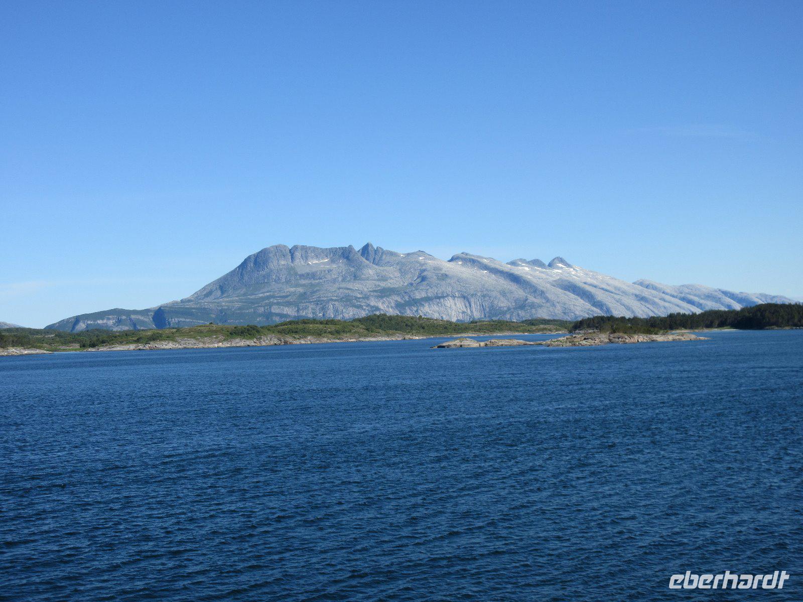 Heute reisen wir durch die Landschaft Helgeland und gönnen uns zunächst einen Aufenthalt an der riesigen Helgelandsbrücke. Es ist heute richtiges Fjordhüpfen angesagt. Drei Fähren müssen wir benutzen um an unser Ziel zu gelangen. Von Tjötta nach Farvik hat man einen Blick auf die 7 Schwestern, der Sage nach versteinerte Riesenjungfrauen. Auch den Torghätten, einen Berg mit einem Loch in der Mitte bekommen wir Gesicht. Leider ist der Winkel von der Straße so ungünstig, dass wir durch das Loch nicht hindurch schauen können. Jedoch halten wir in Sichtweite auf einem schönen Rastplatz und verkosten noch einm,al die leckere Moltebeermarmelade mit Polarbrot. Unser Hotel befindet sich für die heutige Nacht in Steinkjer am nördlichen Ende eines Nebenjords des Trondheimfjordes. Die Sonne scheint warm auf das sehr ruhig gelegene Hotel mit einem historischen Haus als Kern. Ein riesiges und ungemein vielfältiges Abendbüffet erwartet uns. Nun sind wir in Mittelnorwegen angekommen.
