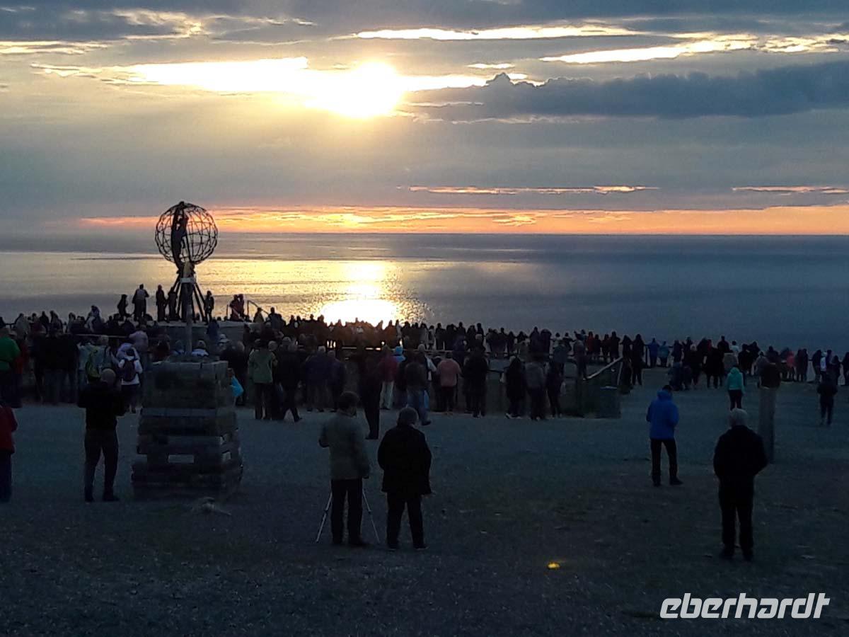 Der größte See Finnlands, der Inarisee begleitet uns heute auf einem guten Teil der Strecke. Mit seinen mehr als 3000 Inseln wirkt er mitunter weniger wie ein See, denn als Flußlabyrinth. Über seinem Ufer liegt die Bärenhöhle, ein Monolith, der durch Wasser ausgehöhlt worden ist. Mächtige Findlinge liegen in dem Wald um ihn herum verstreut. Höhepunkt des Tages ist das Siidamuseum, in dem wir alles über die Sami, also die Urbevölkerung erfahren. Über ihre Sitten und Gebräuche, die Auseinandersetzung mit der rauen Umwelt und auch die Rentierwirtschaft. Ein zweiter Teil widmet sich der Natur Lapplands mit der gesamten Flora und Fauna sehr eingehend. Der dritte Teil ist ein Freilichtmuseum mit alten Samigebäuden, meist im Blockhausstil. Höchst interessant und spannend ist es nach einhelliger Meinung, und es wäre schade, wenn man es nicht gemacht hätte. Der Inarijoki bildet die Grenze zwischen Norwegen und Finnland. Wir gehen zu Fuß hinüber. Nun stellen wir die Uhr wieder zurück und tauschen in Karasjok zunächst noch norwegische Kronen ein. Über die Hochebene Finnmarksvidda und entlang des Porsangerfjords erreichen wir gegen Abend Mageröy mit der Stadt Honnigsvag. Nachdem wir unser Abendessen eingenommen haben, geht es gegen 21 Uhr auf zum Kap. Um Mitternacht ist es auf dem Schieferfelsen am Nordmeer noch taghell. Im der Nordkaphalle werden Filme gezeigt und viel zur Geschichte des Kaps ist überdies zu erfahren. Als wir gegen 0.15 Uhr unsere Nordkapdiplome erhalten, steht die Mitternachtssonne hell am Himmel. Welch ein Anblick! Erst gegen ein Uhr sind wir wieder im Hotel.