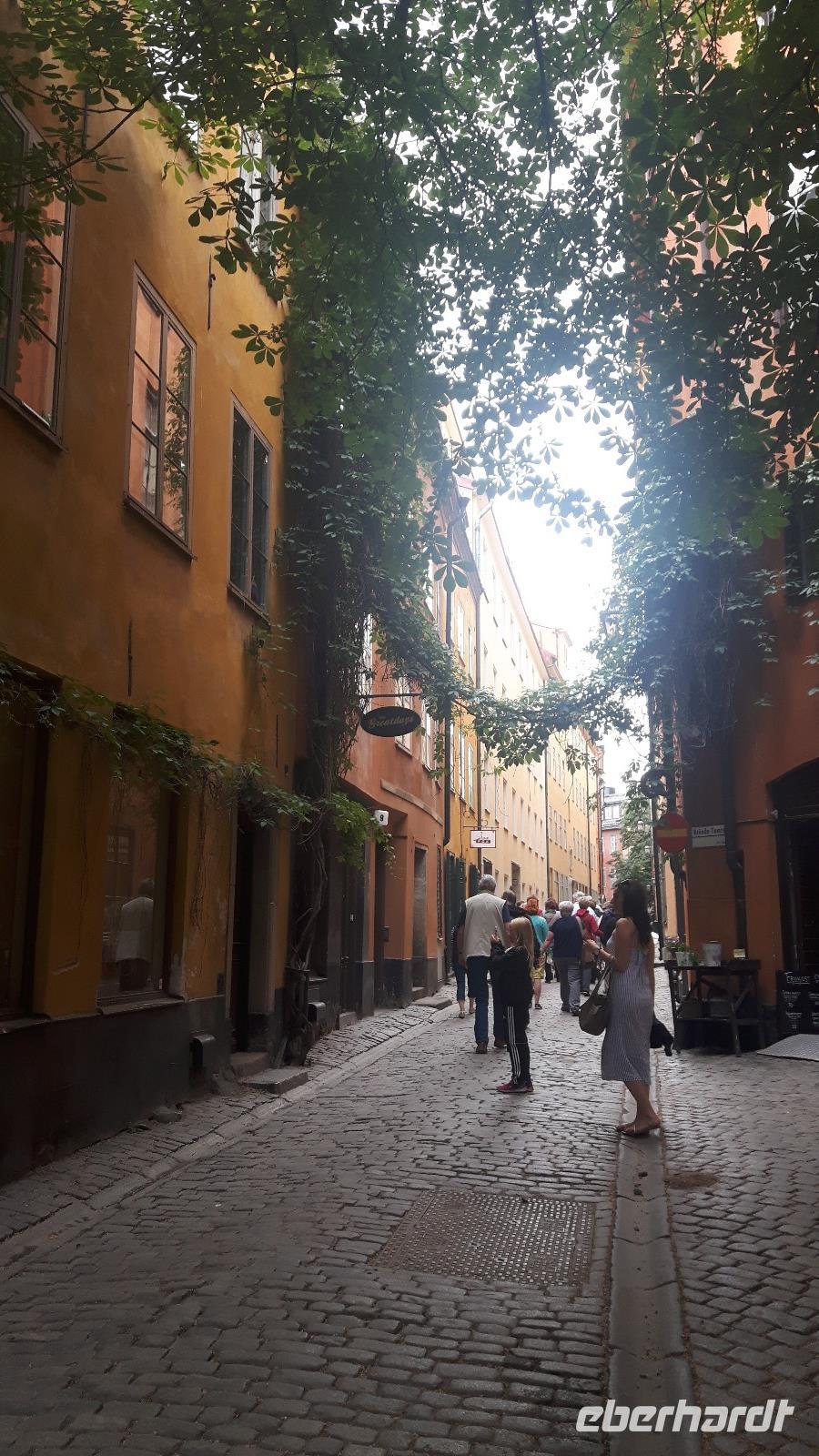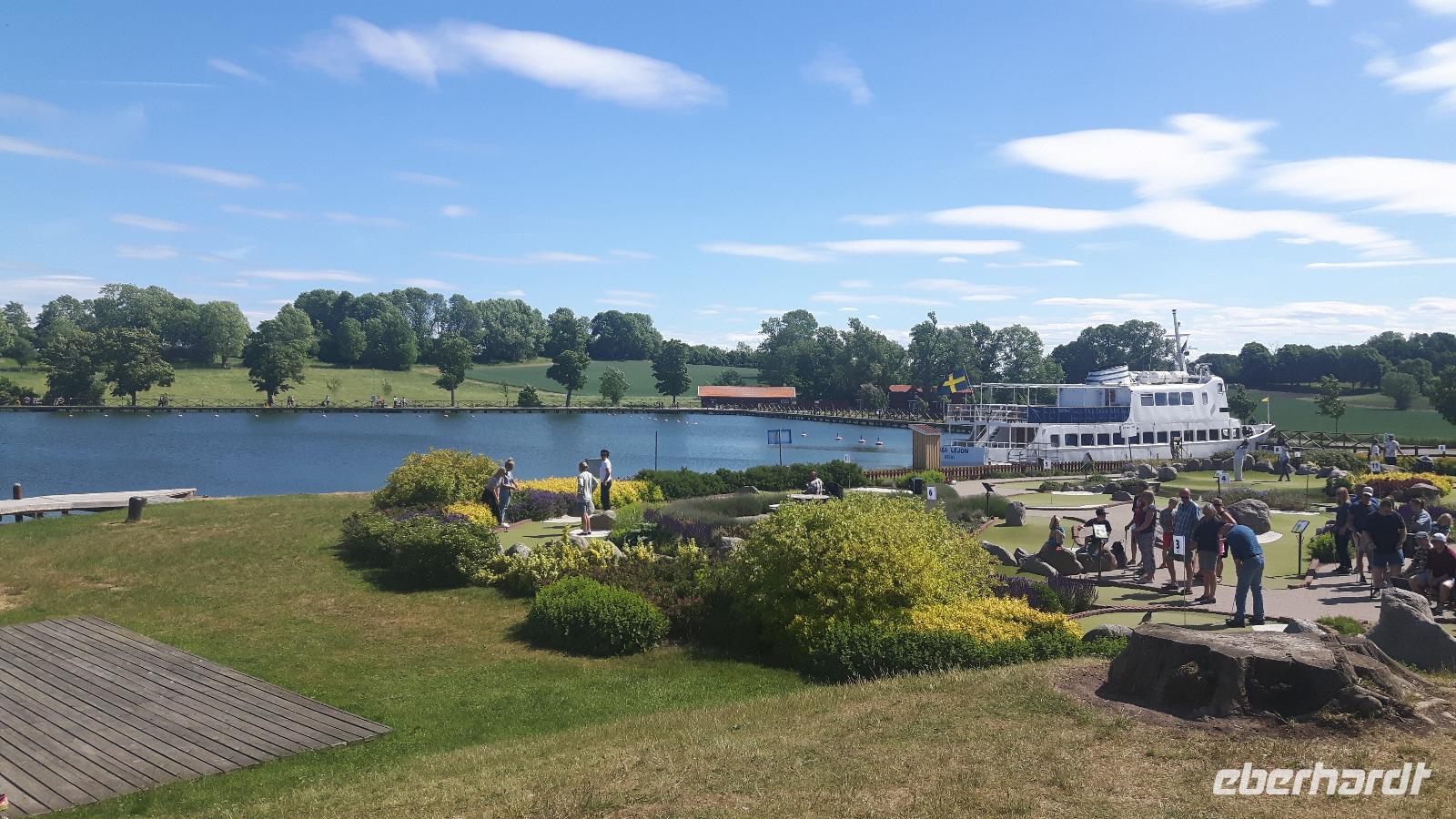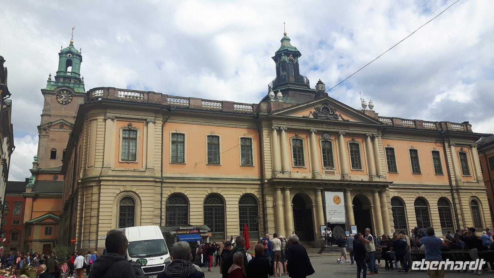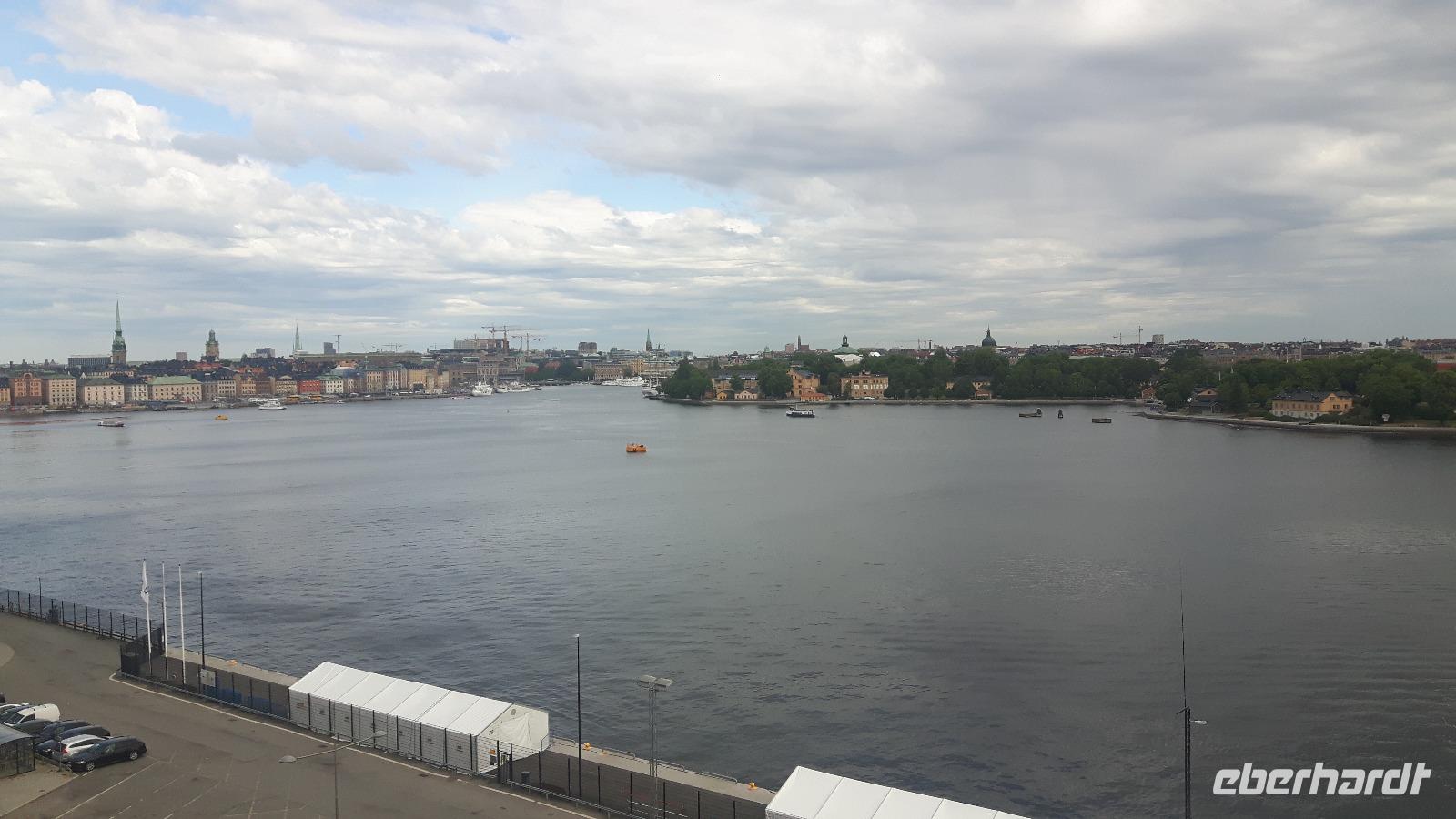 Gut erholt und voller Erwartungen erfreuten wir uns am Morgen an der Einfahrt durch die Schären vor Göteborg! Pünktlich legte unsere Fähre in Göteborg an und der Bus mit Chauffeur Thomas stand auch ziemlich schnell für uns bereit, so dass es sofort mit unserem Bus - quer durch Göteborg und hinaus in die Landschaft des sommerlichen Südschwedens - weiter gehen konnte. Der Wettergott meinte es sehr gut mit uns und somit legten wir entlang unserer Strecke interessante Pausen ein - so z. B. in der Nähe von Gränna am Vätternsee, bekannt für seine Zuckerstangen - in Schweden heißen diese „Polkagris". Eine gewisse Amalie Erikson eröffnete hier nämlich Mitte des 19. Jahrhunderts die erste Zuckerstangenbäckerei. Weiter ging es bis Linköping und von hier aus führte uns ein zusätzlicher Abstecher in das benachbarte Berg, am westlichen Ufer des Roxen-Sees an der Mündung des Göta-Kanals in diesen See, gelegen. Bekannt ist der Ort vor allem wegen seiner zahlreichen Schleusen (Bergs slussar) und die Schleusen des Göta-Kanals sind beliebte Ausflugsziele. Heute war dementsprechend viel los, denn es war schließlich Nationalfeiertag und die Schweden hatten einen arbeitsfreien Tag, den sie nach Lust und Laune genießen durften. Leider blieb uns das wahrhaft sehenswertes Schauspiel einer Schleusung versagt - das war zwar schade, ließ sich allerdings nicht ändern! Die hiesige Anlage umfasst immerhin sieben Schleusen und danach zwei weitere Doppelschleusen - es muss beeindruckend sein, wie die Schiffe den Höhenunterschied von 18,8 Metern überwinden! Von hier aus waren es dann nur noch knapp 200 Kilometer bis in die schwedische Hauptstadt Stockholm! Am frühen Abend erreichten wir schließlich unser Hotel in der Nähe des Stockholmer Hafens „Värtahamnen", wo wir nunmehr auch unsere acht Fluggäste herzlich begrüßten, die fortan unsere Reisegruppe komplettierten.