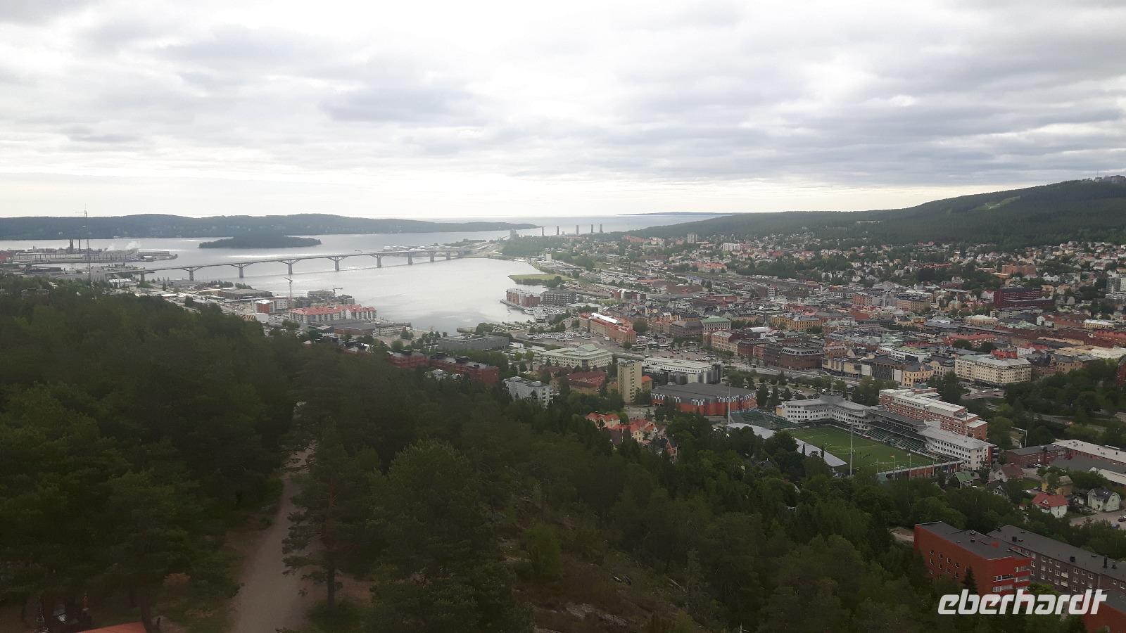Zunächst erlebten wir an diesem Vormittag den Charme der schwedischen Hauptstadt! Sie wird auch gern als „Venedig des Nordens", „Schwimmende Stadt", „Kleinste Großstadt bzw. größte Kleinstadt der Welt" bezeichnet - Stockholm hat viele Beinamen und irgendwie ist alles zutreffend! Die Metropole bezieht einen Großteil ihrer Anziehungskraft aus ihrer traumhaften Lage am Übergang vom Mälernsee zur Ostsee. Die älteren Stadtviertel sind immerhin auf 14 Inseln verteilt und durch zahlreiche historische Gebäude mit Kupferdächern und goldüberzogenen Turmhauben charakterisiert. Krönender Abschluss unseres Kurzbesuches in Stockholm war dann der Besuch des weltberühmten Vasa-Museums, wo wir das weltweit einzige aus dem 17. Jahrhundert erhaltene Schiff sehen konnten. Die „Vasa" ist somit eine recht außergewöhnlicher Schatz und besteht immer noch zu über 95 Prozent aus Originalteilen - grandios! Gesunken ist das ehemalige Kriegsschiff „Vasa" übrigens im Jahre 1628 bereits auf seiner Jungfern-Fahrt mitten in Stockholm und wurde dann 333 Jahre später, also im Jahre 1961, geborgen. Anschließend folgten fast ein halbes Jahrhundert andauernde Restaurierungsarbeiten, während derer das Schiff Schritt für Schritt, sorgfältig und mit viel Liebe zum Detail nahezu wieder in seinen Originalzustand versetzt wurde - es wurde damit zum „Größten Puzzle der Welt". Die verschiedenen Ausstellungen rund um das Schiff gewährten uns gute Einblicke in das Leben an Bord und zu guter Letzt gab es sogar noch eine interessante Filmvorführung über die Geschichte der „Vasa"! Schade nur, dass die schöne Zeit in der schwedischen Metropole gegen Mittag auch schon wieder vorüber war! Die Europastraße 4 führte uns weiter nordwärts und parallel der schwedischen Ostseeküste. Am Abend erreichten wir unsere Zwischenstation in Sundsvall, wo gewaltige Betriebe der Holzverarbeitung und der Papierindustrie die Umgebung prägen.