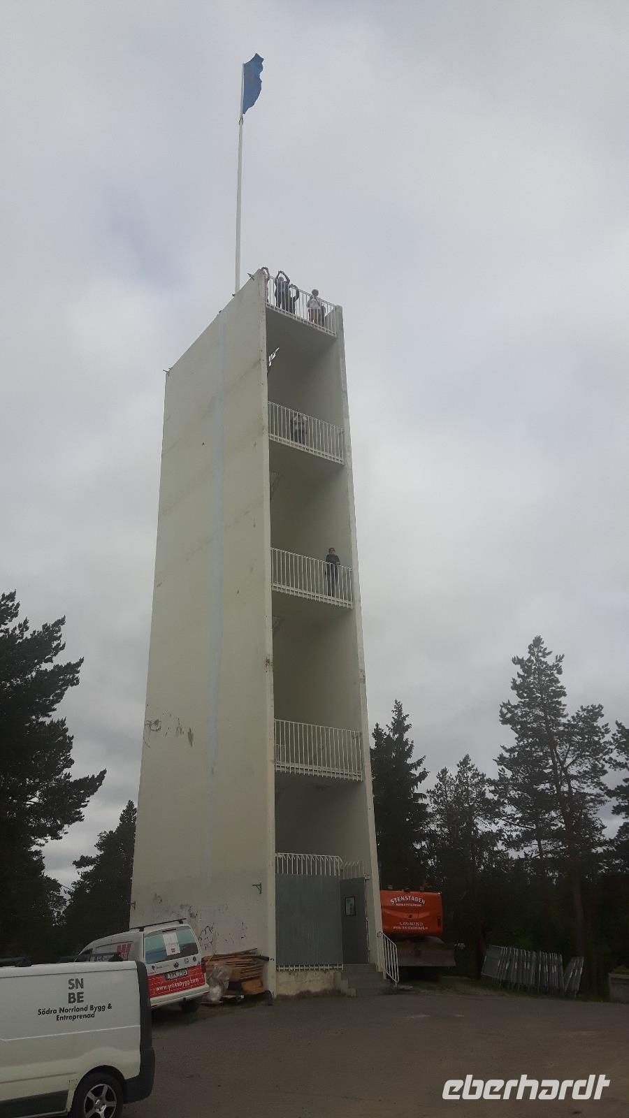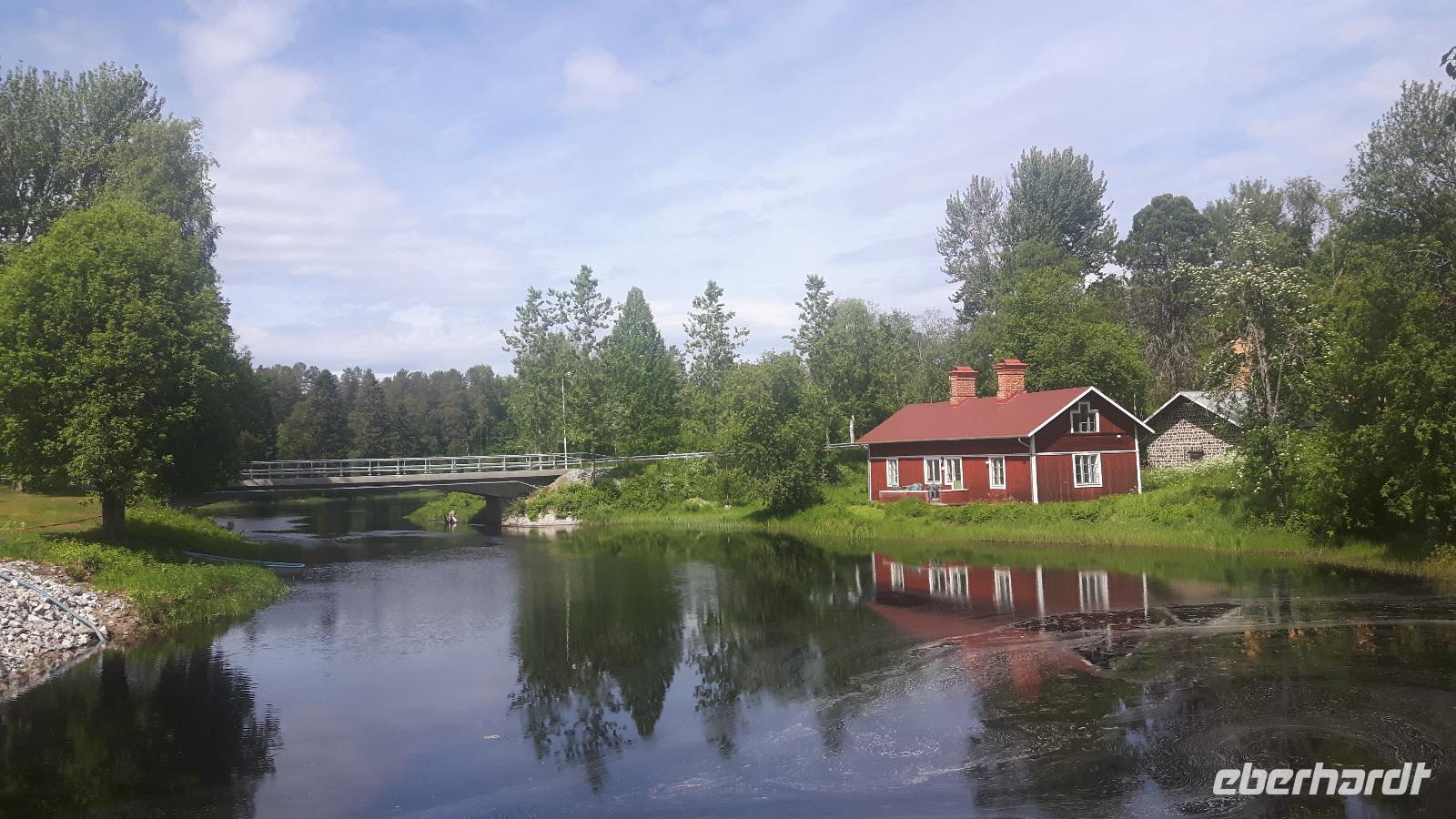 Gut gestärkt starteten wir bereits am Morgen in eine neue Etappe auf dem Weg zum Nordkap. Zunächst führte uns ein kleiner Abstecher auf den nur etwa 155 Meter hohen Nördlichen Hausberg der Stadt, von wo aus wir vom dortigen Aussichtsturm eine fantastische Aussicht über Sundsvall und deren Umgebung hatten. Der Himmel war zwar noch etwas wolkenverhangen, aber im Laufe des Tages meinte es Petrus schließlich besser mit uns und so stand einem Aufenthalt an der über den Fluss Ångermanälven führenden imposanten Högakustenbron, einer 1997 eröffneten Hängebrücke, nichts im Wege. Unsere Mittagspause legten wir im weiteren Fahrtverlauf an der ehemaligen Eisenhütte „Olofsfors Bruk" ein. Diese wurde bereits Mitte des 18. Jahrhunderts gegründet und zwar in der Nähe von drei Wasserläufen, die ausreichend Strömung hatten, um Maschinen anzutreiben. Weiter ging es entlang der Hohen Küste und damit auch durch bizarre Felsenlandschaften, durch Wälder und über Flüsse bzw. vorbei an kleinen Dörfern mit ihren Kirchen und den daneben extra stehenden Glockentürmen. Ein weiterer Höhepunkt des Tages erwartete uns am Nachmittag - wir gelangten in das Kirchendorf Lövanger mit seinen historischen Holzhäuschen und der Kirche. Später stoppten wir noch am Leuchtturm bei Jävre, bevor wir am Abend in der Stadt Luleá, unserem Domizil einer weiteren Nacht, ankamen.