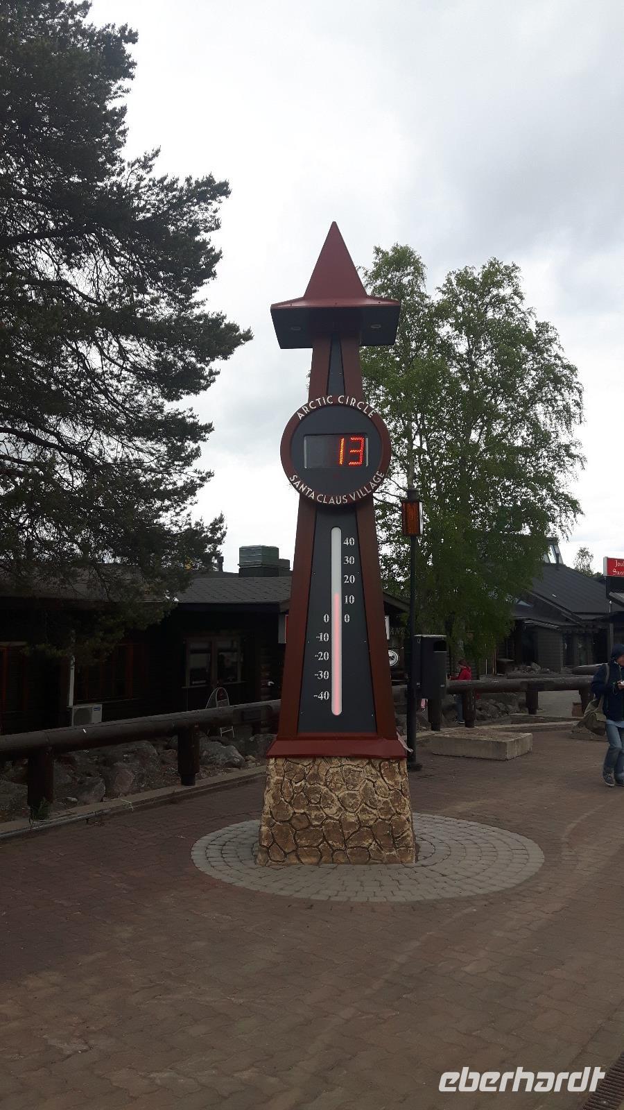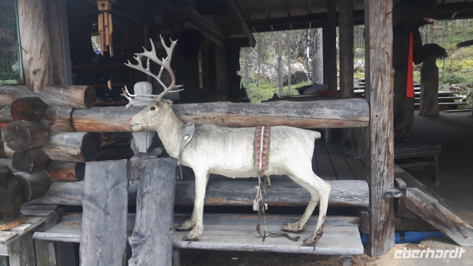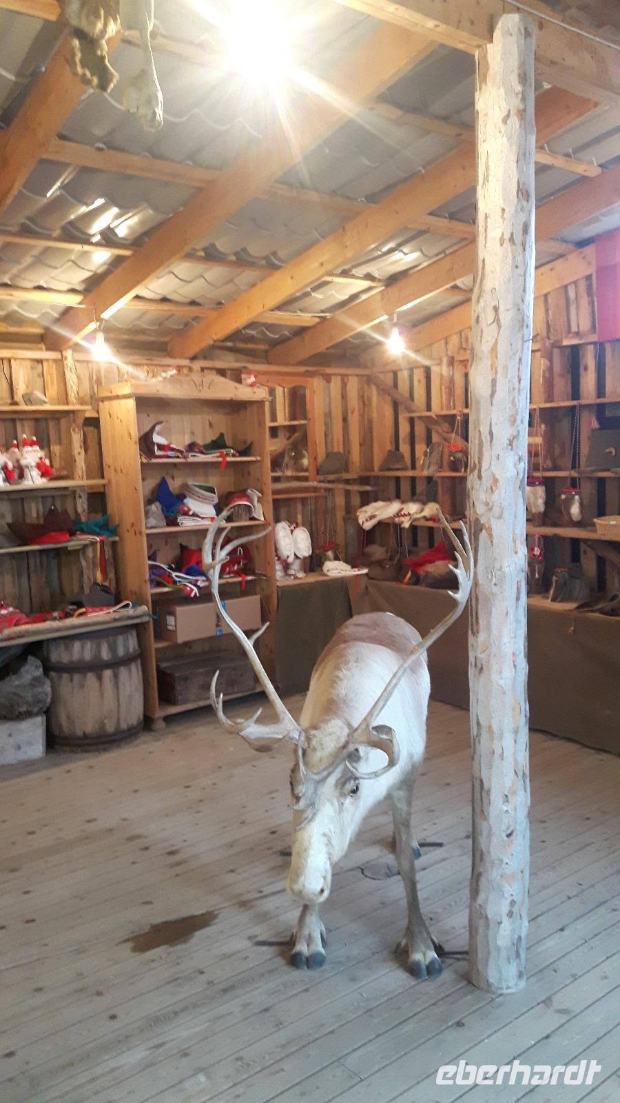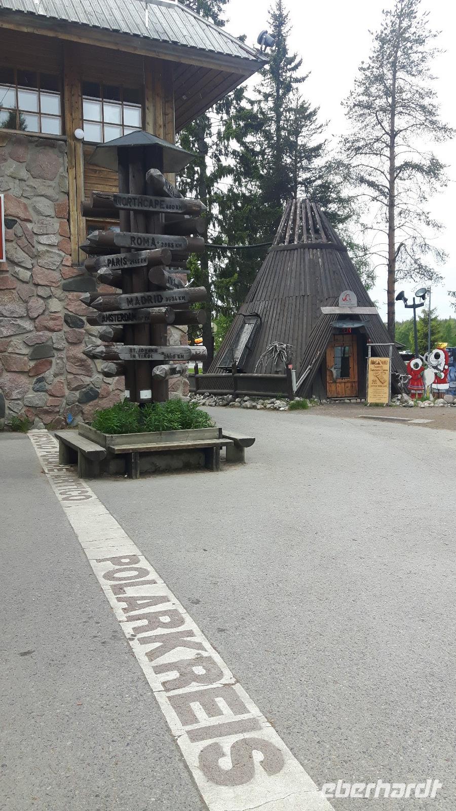 Ein wiederum kurzer außerplanmäßiger Abstecher führte uns gleich am Morgen in den alten Teil von Luleá, nach Luleá Gammelstad, mit seiner Kirche und den hübschen Holzhäusern - es ist das größte und am besten bewahrte Beispiel eines Kirchendorfs in Schweden. Kirchendörfer, die es übrigens nur in Nordskandinavien gibt, entstanden aufgrund der enormen Größe der Pfarreien und der schwierigen, geografischen Verhältnisse und Wetterbedingungen - Faktoren, die den Kirchgang zu einer enormen Unternehmung machten. Die Lösung war ganz einfach - man baute ein Dorf um die Kirche, in dem man übernachten, andere Gemeindemitglieder treffen und an den wöchentlichen Messen und Kirchenfeierlichkeiten teilnehmen konnte. Die roten Häuschen wurden in ihrer ursprünglichen Nutzung bis in die 1950er Jahre genutzt. Jetzt ist das auf der UNESCO-Weltkulturerbeliste stehende Dorf eine lebende Gemeinde und ein Freilichtmuseum. Einige der Häuschen dienen nach wie vor bei größeren kirchlichen Feierlichkeiten als Unterkünfte für die Kirchgänger. Bei der weiteren Fahrt durch Wälder mit zahllosen Mooren, Seen und Flüssen genossen wir das tolle Wetter! Bereits am Mittag überschritten wir bei Haparanda die schwedisch-finnischen Grenze und das bedeutete auch, unsere Uhren eine Stunde vor zu stellen! Von hier aus ging es weiter in den Norden hinauf. Schließlich trafen wir bei Rovaniemi auf den Nördlichen Polarkreis und das Weihnachtsmanndorf. Dies war für uns eine willkommene Gelegenheit, um mit einem, von Eberhardt TRAVEL spendierten Glas Sekt, auf die Polarkreis-Überquerung anzustoßen - na dann Prost...! Außerdem zauberten wir mit Weihnachtsdekoration, -musik, -geschichten bzw. „hauseigenen" Keksen etwas Weihnachtsstimmung in den Bus - gar nicht so einfach...! Der weiterhin wald- und seenreichen Landschaft folgten wir am Nachmittag weiter bis Saariselkä, wo wir im Lapland-Hotel unser heutiges Nachtlager aufschlugen. Wir hatten bei dieser Fahrt bisher noch kein Rentier gesehen, aber heute liefen sie uns prompt über den Weg!