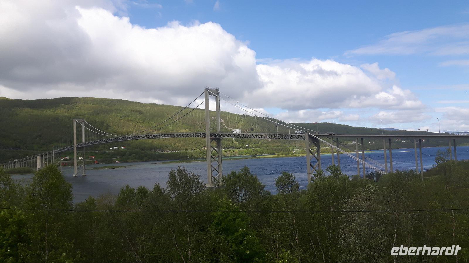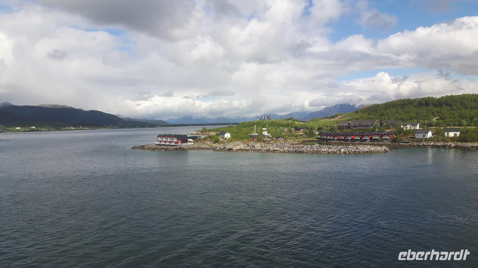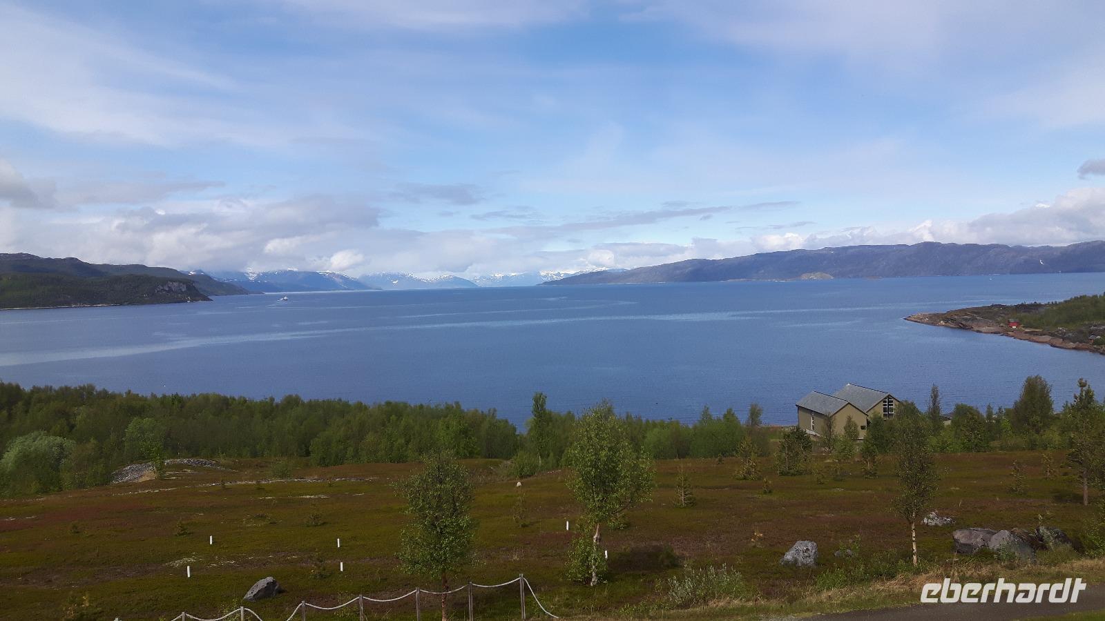 Heute fuhren wir durch das sagenumwobene Helgeland - mit der gewaltigen Helgelandbrücke und mit dem prägnanten Bergmassiv der „Sieben Schwestern"! Leider machte uns das Wetter teilweise einen Strich durch die Rechnung, es war nämlich äußerst wechselhaft - eine Mischung aus Sonne, Wolken und Regen! Drei Fähren brachten uns über die Fjorde des Helgelandes, bevor es am Nachmittag durch die Berge, entlang der Fjorde und Seen Nord-Trøndelags ging. Schließlich, vorbei am Snåsa-See, fuhren wir am Abend nach Steinkjer, der Handelsstadt am Beitstadfjord, einem Seitenarm am Ende des Trondheimfjords. Im „Quality Hotel Grand" wurden wir herzlich aufgenommen und verköstigt.