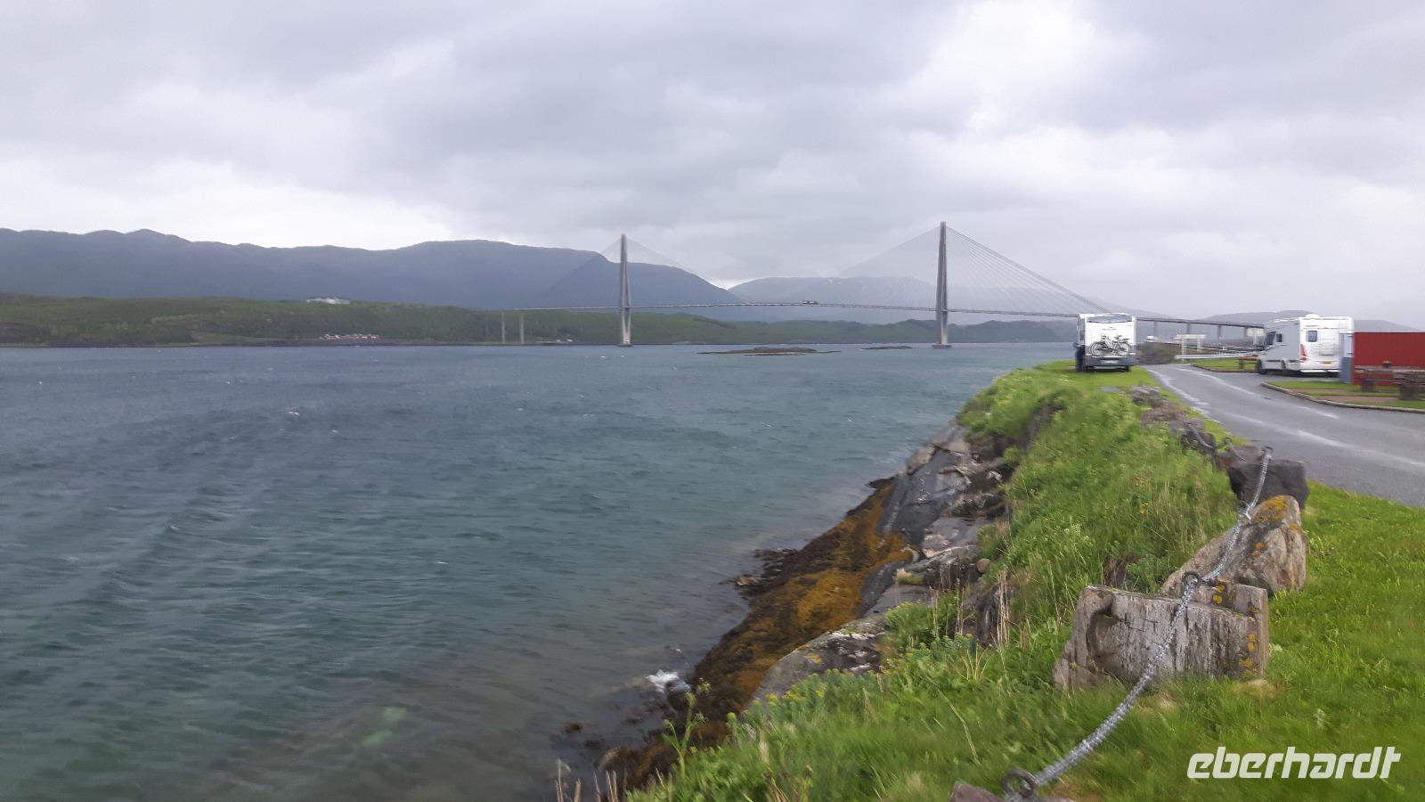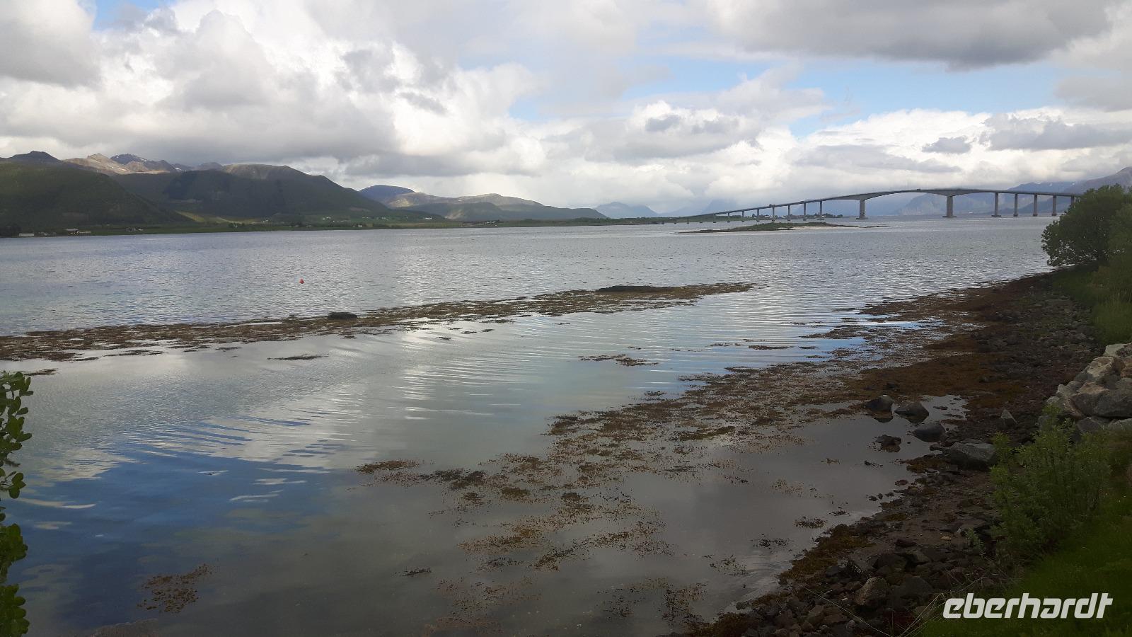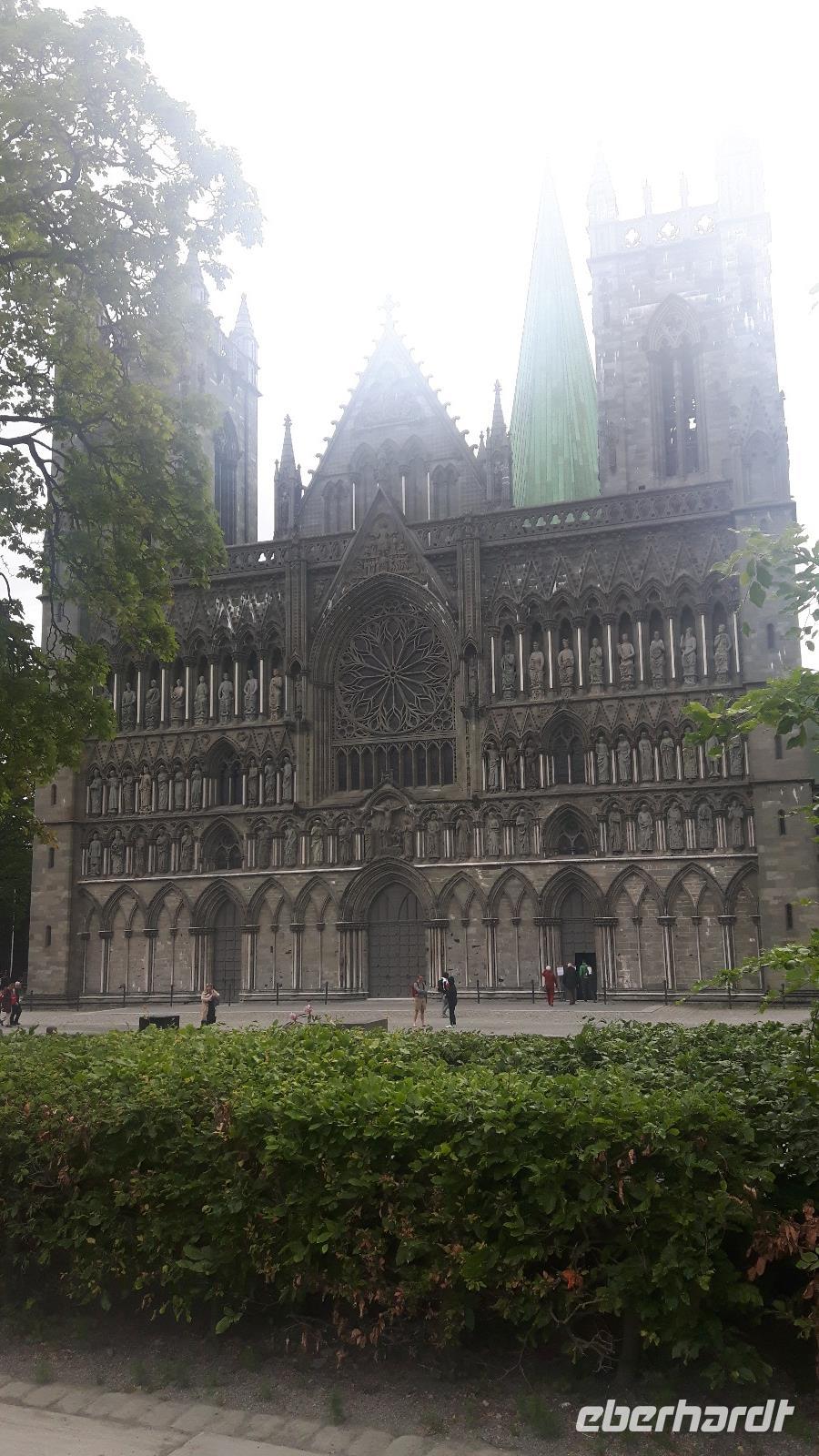 Heute fuhren wir durch das sagenumwobene Helgeland - mit der gewaltigen Helgelandbrücke und mit dem prägnanten Bergmassiv der „Sieben Schwestern"! Leider machte uns das Wetter teilweise einen Strich durch die Rechnung, es war nämlich äußerst wechselhaft - eine Mischung aus Sonne, Wolken und Regen! Drei Fähren brachten uns über die Fjorde des Helgelandes, bevor es am Nachmittag durch die Berge, entlang der Fjorde und Seen Nord-Trøndelags ging. Schließlich, vorbei am Snåsa-See, fuhren wir am Abend nach Steinkjer, der Handelsstadt am Beitstadfjord, einem Seitenarm am Ende des Trondheimfjords. Im „Quality Hotel Grand" wurden wir herzlich aufgenommen und verköstigt.