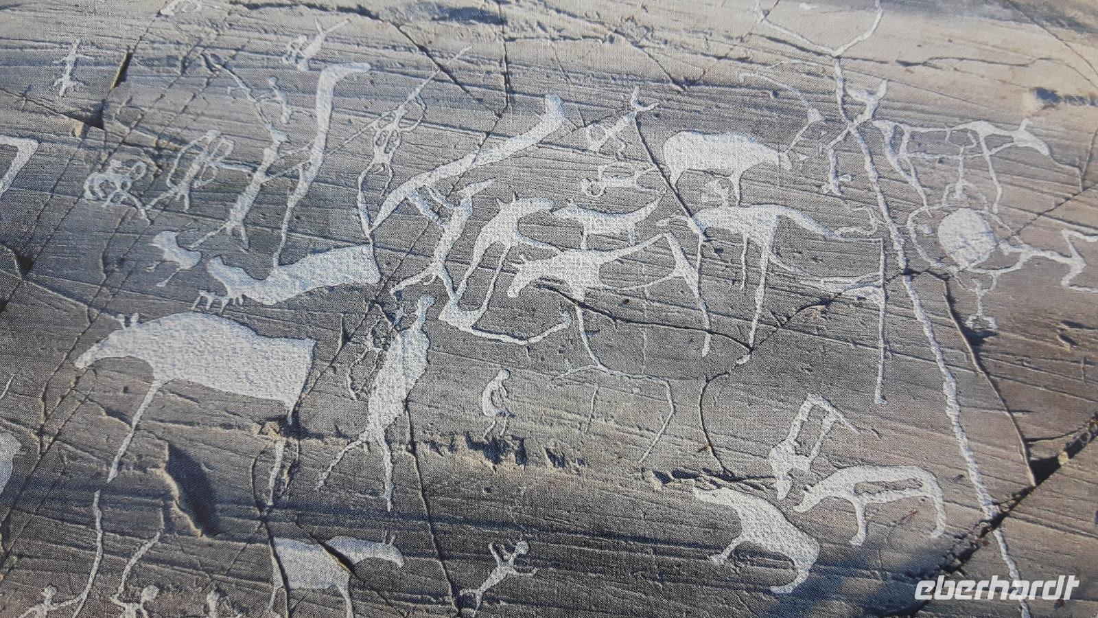 Die Fahrt führte uns an diesem Reisetag nach Oteren, dem reizvollen Ort in den Lyngen-Alpen. Bezaubernde Landschaften erwarteten uns - wechselnde Formen und Farben der Berge, der Fjells und der Fjorde, wilde Bergflüsse und stille Buchten... Ein Höhepunkt des Tages war die geführte Besichtigung im Alta-Museum, welches auf seinem Außengelände die seit 1985 zum UNESCO-Weltkulturerbe gehörenden grandiosen Felszeichnungen aus der Steinzeit beherbergt. Die ca. 6000 Felszeichnungen sind zwischen 2.000 und 6.200 Jahren alt und wurden 1973 entdeckt. Ein kurzer Fotostopp an der Nordlicht-Kathedrale von Alta durfte übrigens auch nicht fehlen! Am Abend konnten wir es uns dann am Kamin des Hotels „Welcome Inn Lyngskroa" so richtig gemütlich machen und genossen ein überaus leckeres Drei-Gänge-Menü. Die Gegend wirkte zwar recht einsam (unser Hotel war das einzige weit und breit), aber hier wurde Gastfreundschaft sehr groß geschrieben und so etwas tut schließlich immer gut!