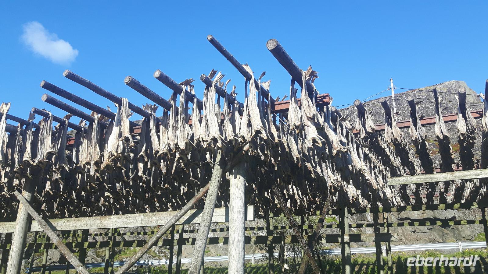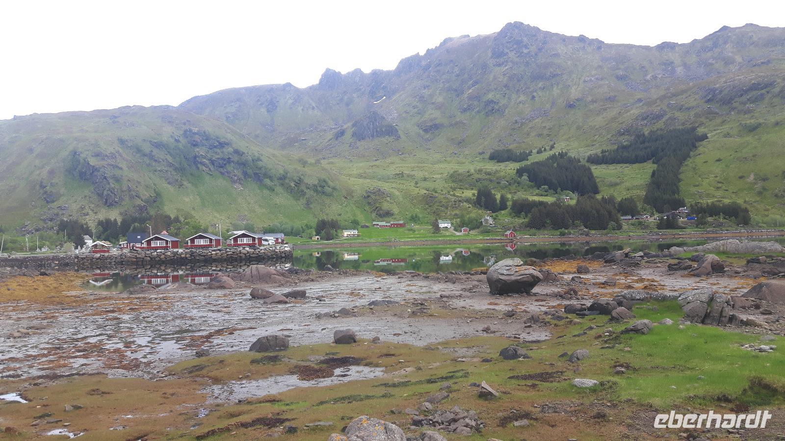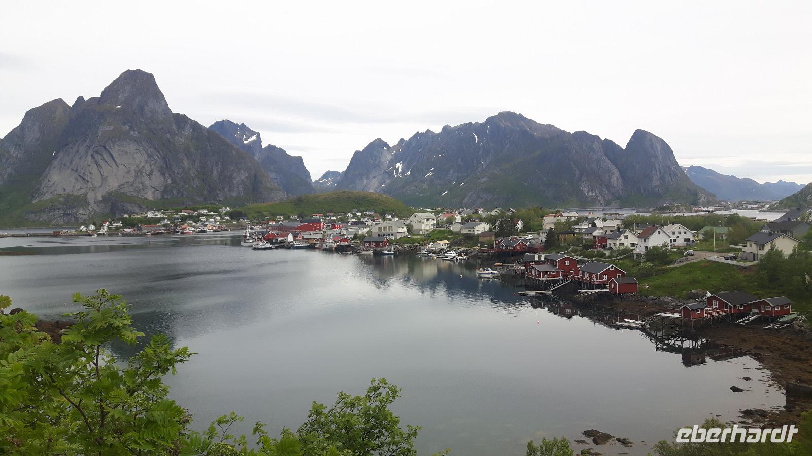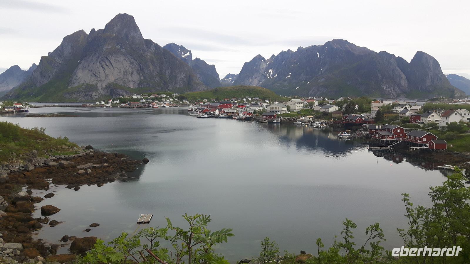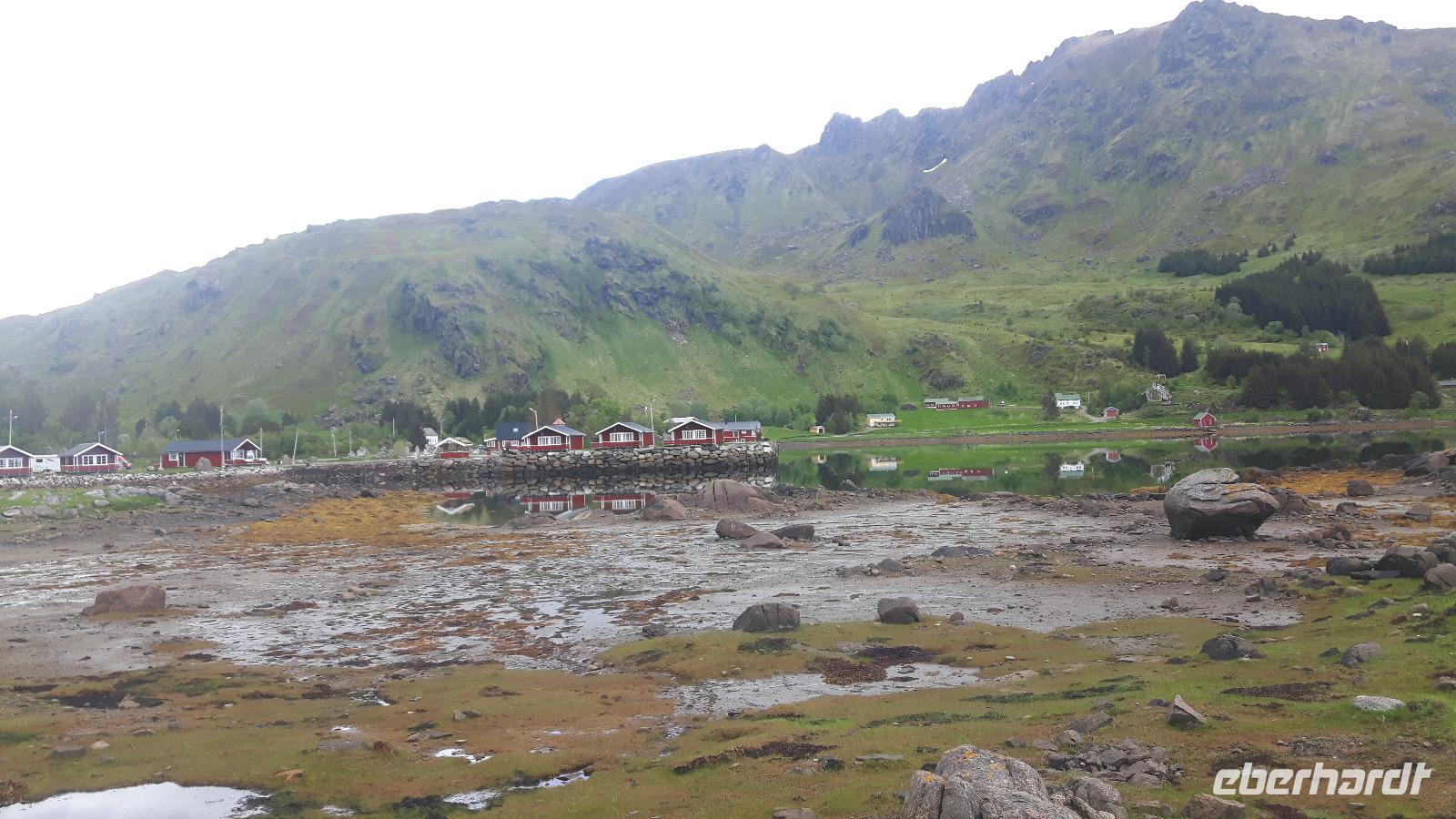 Wir ließen den neuen Tag mal etwas geruhsamer angehen. An diesem Morgen wachten wir auf, gingen nach draußen und standen in einem Natur-Idyll - türkisblaues Meer und kleine Fische, die sich um die Pfähle der Hütten tummelten... Ein gemütliches Frühstück und ganz entspannt begannen wir die Lofoten-Rundfahrt. Einen ersten Aufenthalt legten wir im kleinen Fischerdorf Nusfjord auf der Insel Flakstadøy, einer der Hauptinseln des Lofoten-Archipels, ein. Anschließend besuchten wir das Wikingermuseum in Borg, ein „Museum zum Anfassen". In Borg haben Archäologen 1983 ein Langhaus aus Wikingerzeiten entdeckt. Um den größten Fund aus dieser Zeit entstand ein Museum, in dem jedermann 1.000 Jahre zurück in die Vergangenheit reisen kann. Während einer interessanten und kurzweiligen Führung erfuhren wir beispielsweise wie sich die Vorfahren der heutigen Norweger ernährt haben und wie es auf ihren Festen zuging. Außerdem wurden wir mit leckerer Wikingersuppe (Lamm) verwöhnt! Gut gestärkt ging es am Nachmittag weiter. Unser nächstes Ziel hieß Henningsvær und schon die Fahrt dahin war unglaublich beeindruckend. Es ging durch einzigartige Gebirgswelten und an traumhaften Buchten vorbei, bevor wir das sogenannte „Venedig des Nordens" erreichten. Der Ort wirkte beruhigend, fast schon „verschlafen". Während eines kleinen Bummels entdeckten wir nicht nur den idyllischen Hafen mit den kleinen Fischerbooten, sondern wiederum auch die auf den Lofoten überall präsenten Rorbu-Hütten. Zurück in Mortsund, erwartete uns noch vor dem Abendessen Brigitte, eine überaus sympathische Mitarbeiterin des Statles Rorbusenter, mit einem informativen und lustigen Vortrag über die Kabeljau-Fischerei, den Lebertran und das Leben auf den Lofoten. Sogar eine Lebertran-Verkostung durfte dabei nicht fehlen!