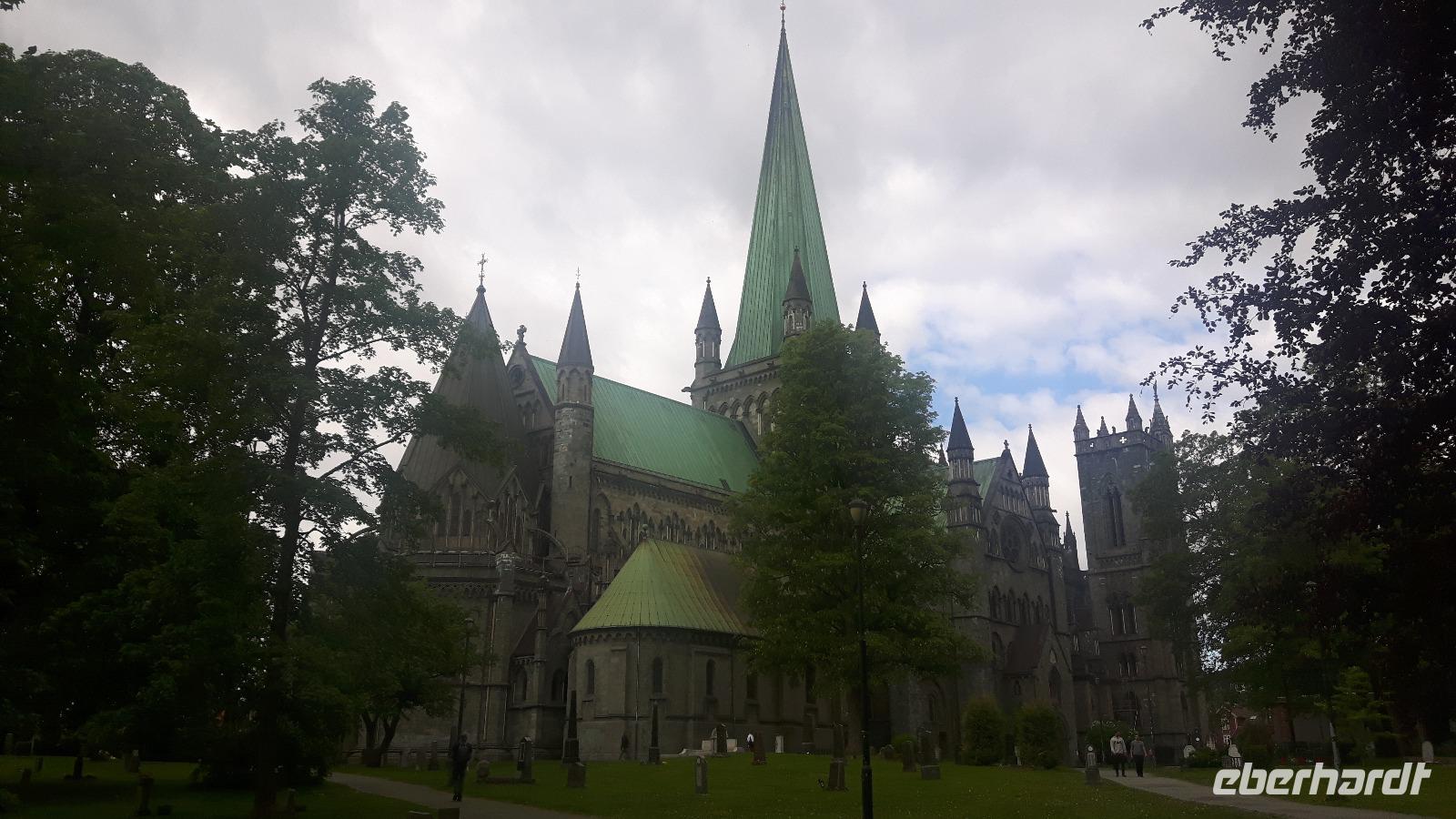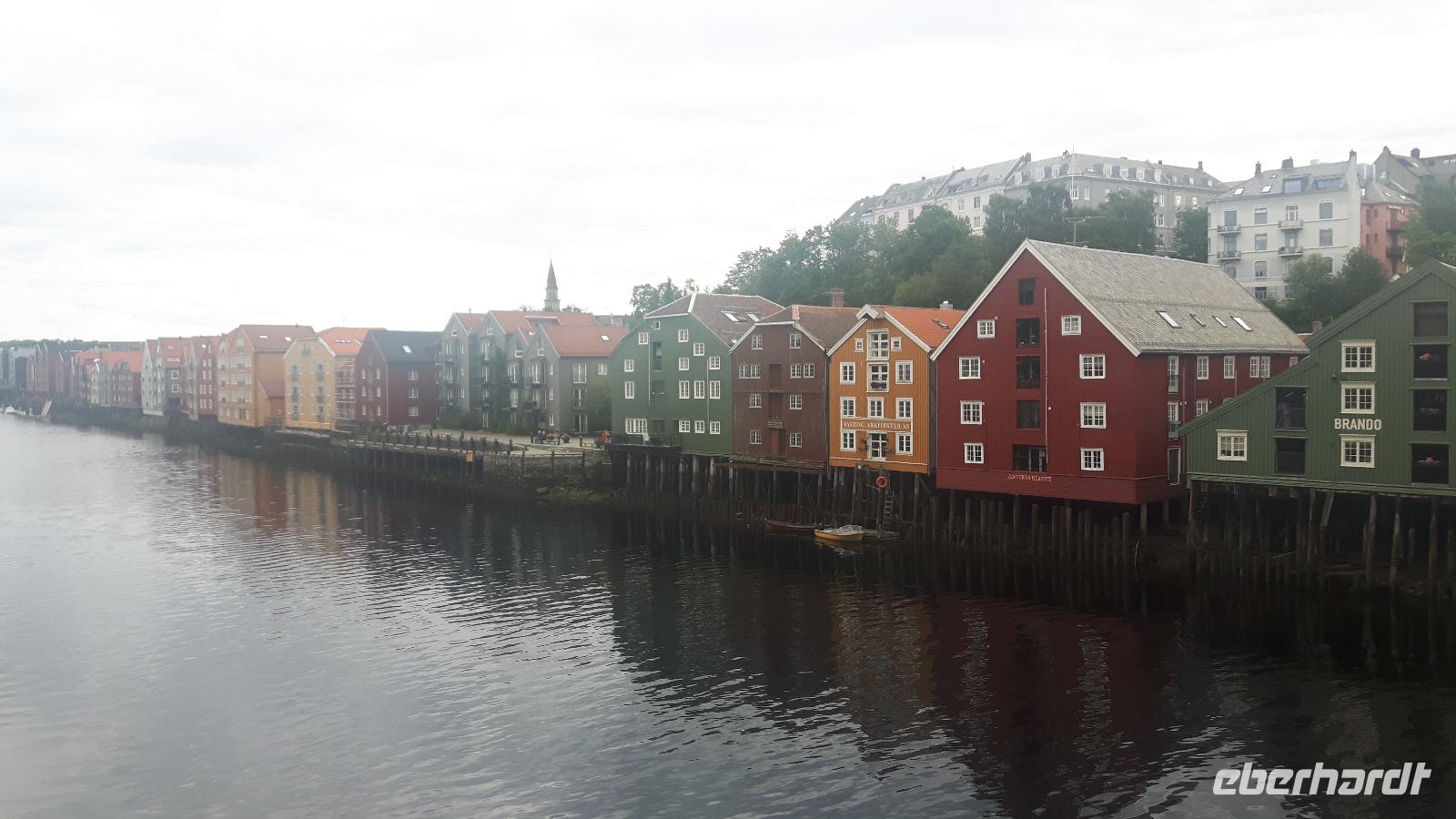 Den Vormittag verbrachten wir in Trondheim, der schönen Stadt am Trondheimfjord - mit seinem Markt, dem Stiftsgården, mit der Speicherstadt, der Roten Brücke am Nidelv und mit dem Dom, wo die norwegischen Könige gekrönt, aber auch beigesetzt wurden! Danach wieder Landschaft pur - wieder anders - das Wintersportzentrum Oppdal, das Dovrefjell und das Gudbrandsdal mit der Stabkirche von Ringebu. Schließlich am Abend die Olympiastadt Lillehammer mit den gewaltigen Sprungschanzen und Hamar am Mjøsasee, dem größten norwegischen Binnensee. Hier, im Scandic-Hotel Ringsaker, verbrachten wir die letzte Nacht auf norwegischem Boden.