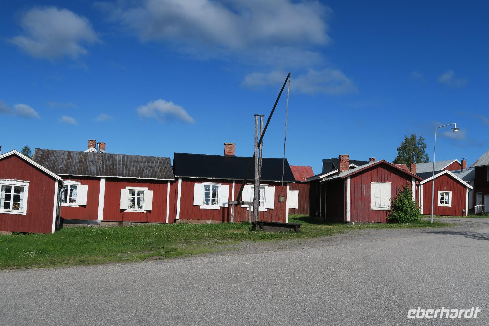 Der nächste Halt an einer alten Eisenhütte bei Normaling an der Olofsfors Bruk. Auch hier konnte man schöne Fotos machen. Das Kirchdorf in Lövanger war dann ganz etwas Anderes. Viele kleine Häuser waren hier auf engstem Raum zu sehen. Sie lagen neben der Kirche. In der Vergangenheit schliefen hier die Kirchenbesucher.Die Häuser