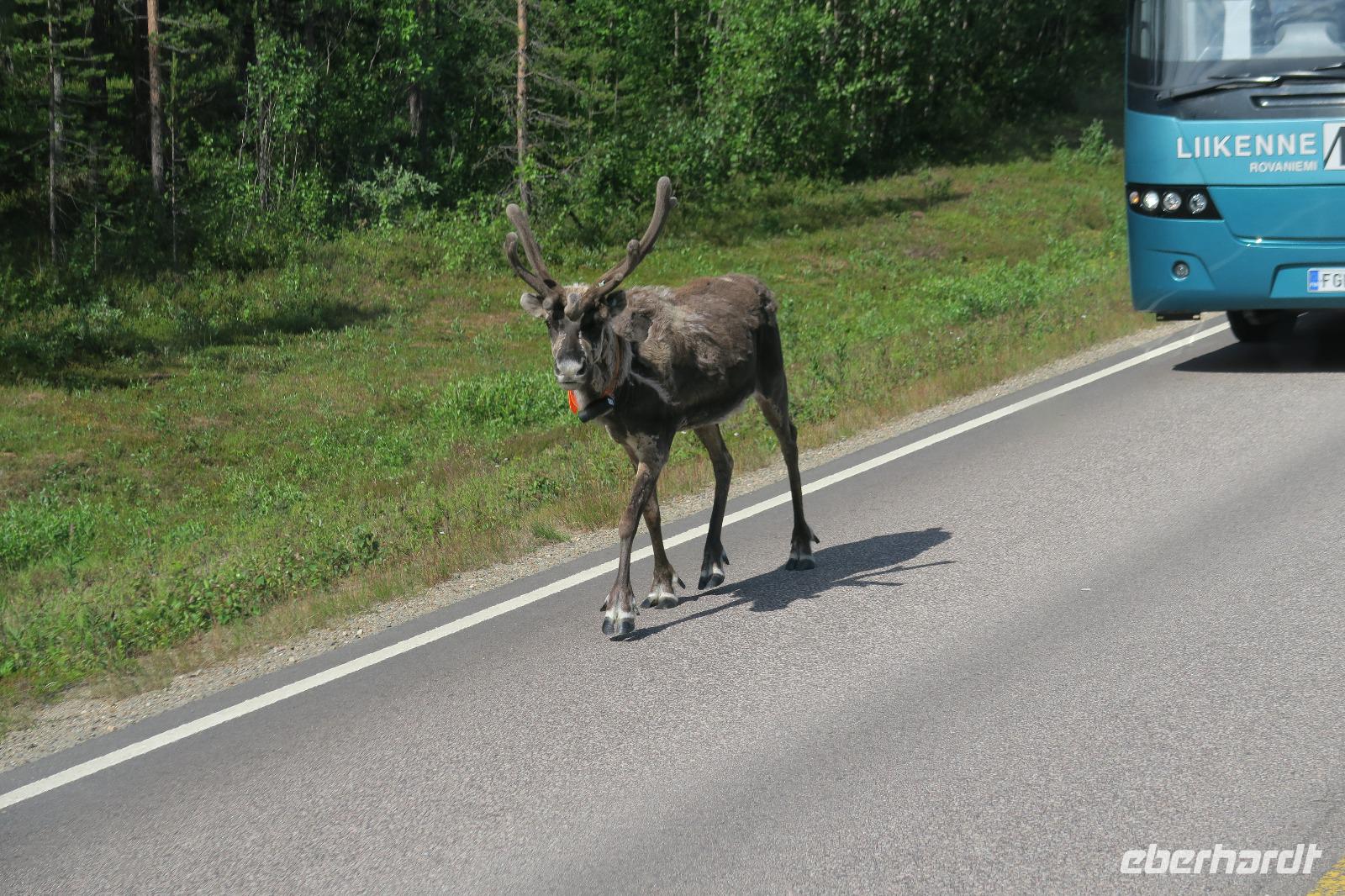 Nun ging es zum Weihnachtsmann nach Rovaniemi. Auf dem Weg dorthin wurde von einem Gast ein UHU gesichtet sowie ein Rentier. Leider kein Elch.