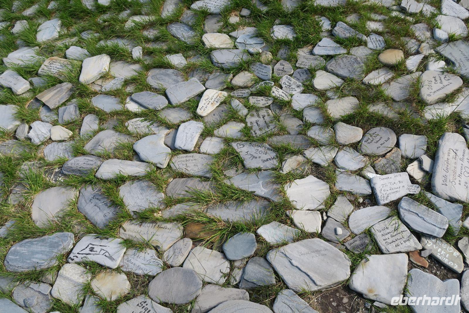 Am Olderfjord dann der nächste Stopp. Hier gab es nochmal schöne Souvenirs zu kaufen. Das wurde auch reichlich gemacht. So langsam kamen wir dem Nordkapp näher. An einem Strand am Fjord machten wir eine weitere Pause um kleine Steintürme zu bauen und Steine zu beschriften.