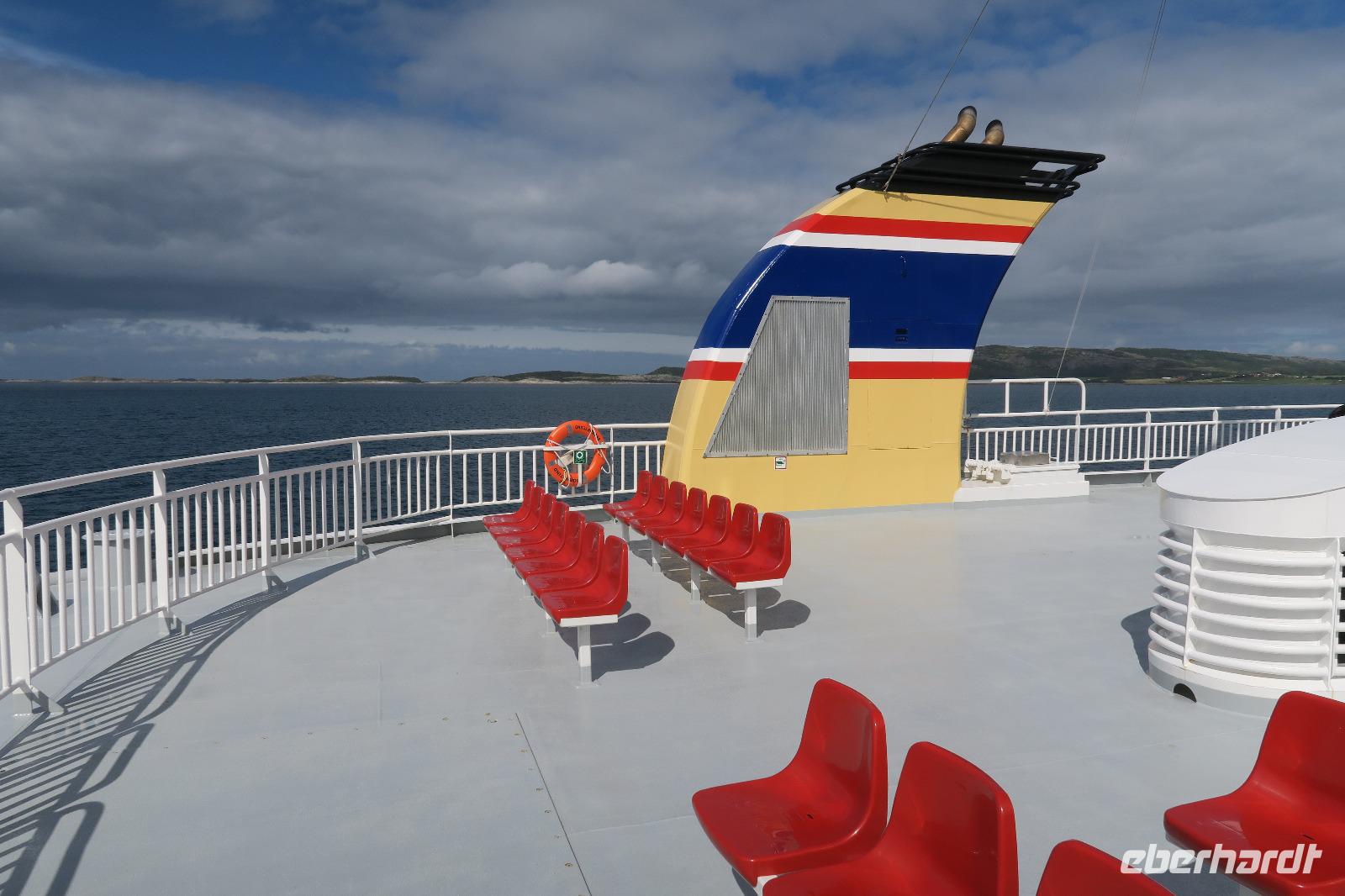 Da es Sonntag war, war es auf der Strasse nicht zu voll und so kamen wir mehr als pünktlich am Fährhafen an. Wir haben auch gleich eingecheckt und an Deck konnte man das schöne Wetter nochmal richtig genießen.