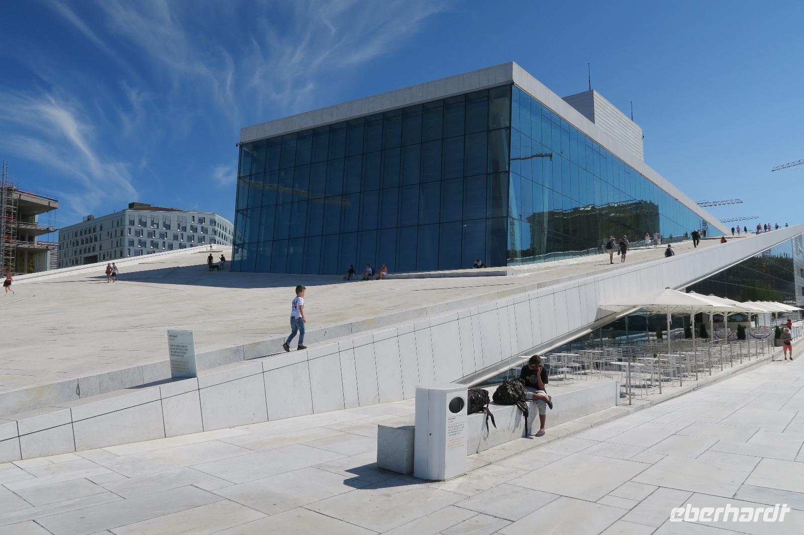 Heute ging es gleich in der Frühe nach Oslo. Da wir recht früh vor Ort waren konnten wir noch zu Fuß ins Rathaus und zur Prachtstraße laufen. Am "Finger"vorbei ging es dann zum Bus an der Festung Akshus. Hier wartete der Stadtführer auf uns. Er fuhr mit uns gleich zum Vigelant Park. Das Wetter 27 Grad. Der Park sehr schön angelegt. Leider hatten wir nicht mehr so viel Zeit und so war dann die Oper unsere letzte Sehenswürdigkeit. Hier konnten nochmal schöne Fotos gemacht werden. Im Anschluß haben wir dann unsere 9 Fluggäste verabschiedet und zum Bahnhof gebracht.