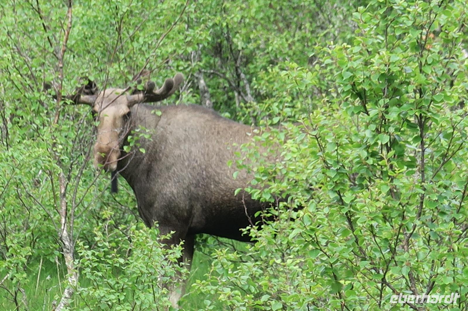 Heute haben dann der Fahrer und ich und einige Gäste einen Elch direkt am Zaun der Straße gesehn.