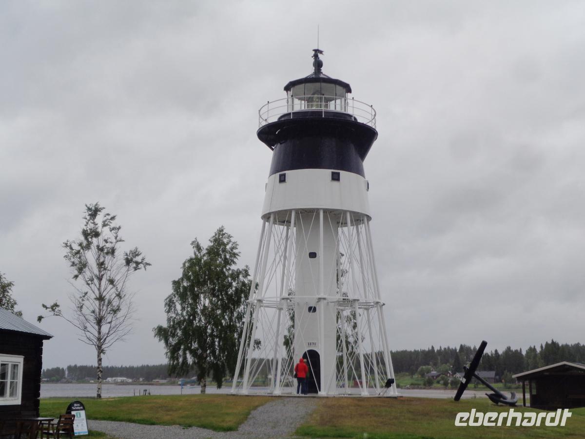 Noch im Stadtgebiet von Sundsvall befindet sich das größte Gräberfeld von Norrland im Stadtteil Högom. Noch 8 von ehemals 14, z. T. sehr mächtigen Grabhügeln aus der Wikingerzeit gibt es hier zu bestaunen. Zudem steht hierhin vesetzt auch ein Runenstein, welcher schon christliche Symbolik aufweist und somit in die Zeit nach 1100 zu datieren ist. Weiter reisen wir, nun schon den dritten Tag in Folge bei strömenden Regen entlang der Höga Kusten, also der Hohen Küste. Nachdem das Eis der letzten Eiszeit abgeschmolzen war begann die isostatische Landhebung, welche bis heute anhält. Von den Bergen liegt die Küste mittlerweile drei Kilometer entfernt. Wir machen eine erste ausgedehnte Pause an der gut 1,8 km langen Högakustenbrücke, die 1997 eingeweiht wurde. Sie überspannt den Angermanälven in 40 m Höhe. Unser Mittag nehmen wir an der ältesten Eisenhütte Schwedens ein, welche noch steht und heute ein Museum ist. Olofsfors. Die Außenbesichtigung ist kostenlos. Ein Cafe, eine Galerie, ein kleiner Shop und ein Restaurant sind auch vorhanden, weil aber heute Midsommerwochenende ist hat alles geschlossen. Fast alle Bewohner Schwedens sind in hren Häuser auf dem Land und die Städte sind wie ausgestorben. Lövanger ist unser nächstes Ziel und unbedingt einen weiteren Stop wert. Es handelt sich um eines der wenigen erhaltenen Kirchdörfer. Rund um die Kirche stehen kleine Hütten für die Bauern, deren Weg zur Kirche mehr als eine Tagesreise dauerte, und die hier nächtigten. Heute können sie als Feriendomizil gemietet werden. Sehr ruhig und romantisch. Ein Stück altes Schweden hat sich hier erhalten. Ein technisches Denkmal ist dagegen der alte Leuchtturm von Jävre, der 1871-1957 in Betrieb war. Natürlich halten wir auch hier. Am Abend beziehen wir unser Hotel in Lulea, welches mitten in der Stadt, nur wenige Schritte vom Dom entfernt liegt. Der lädt zum Hinspazieren ein, um das leckere Abendmenü aus Krebsschwanzsuppe, Lachs und Blaubeerstreusel mit Vanillesauße zu verdauen.