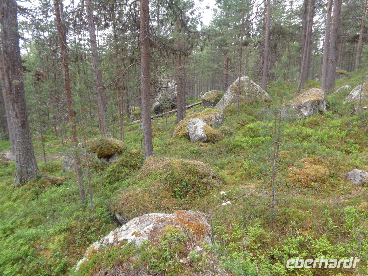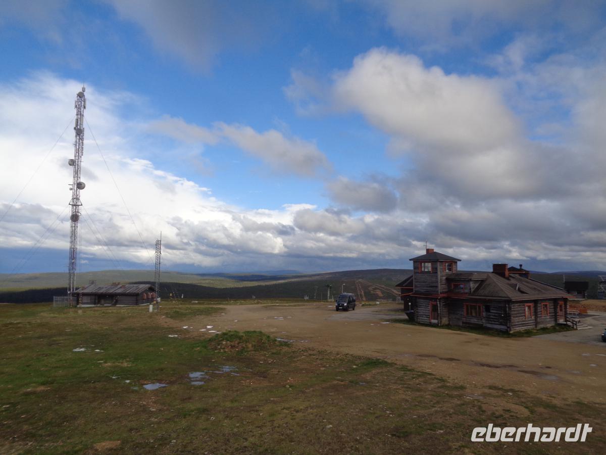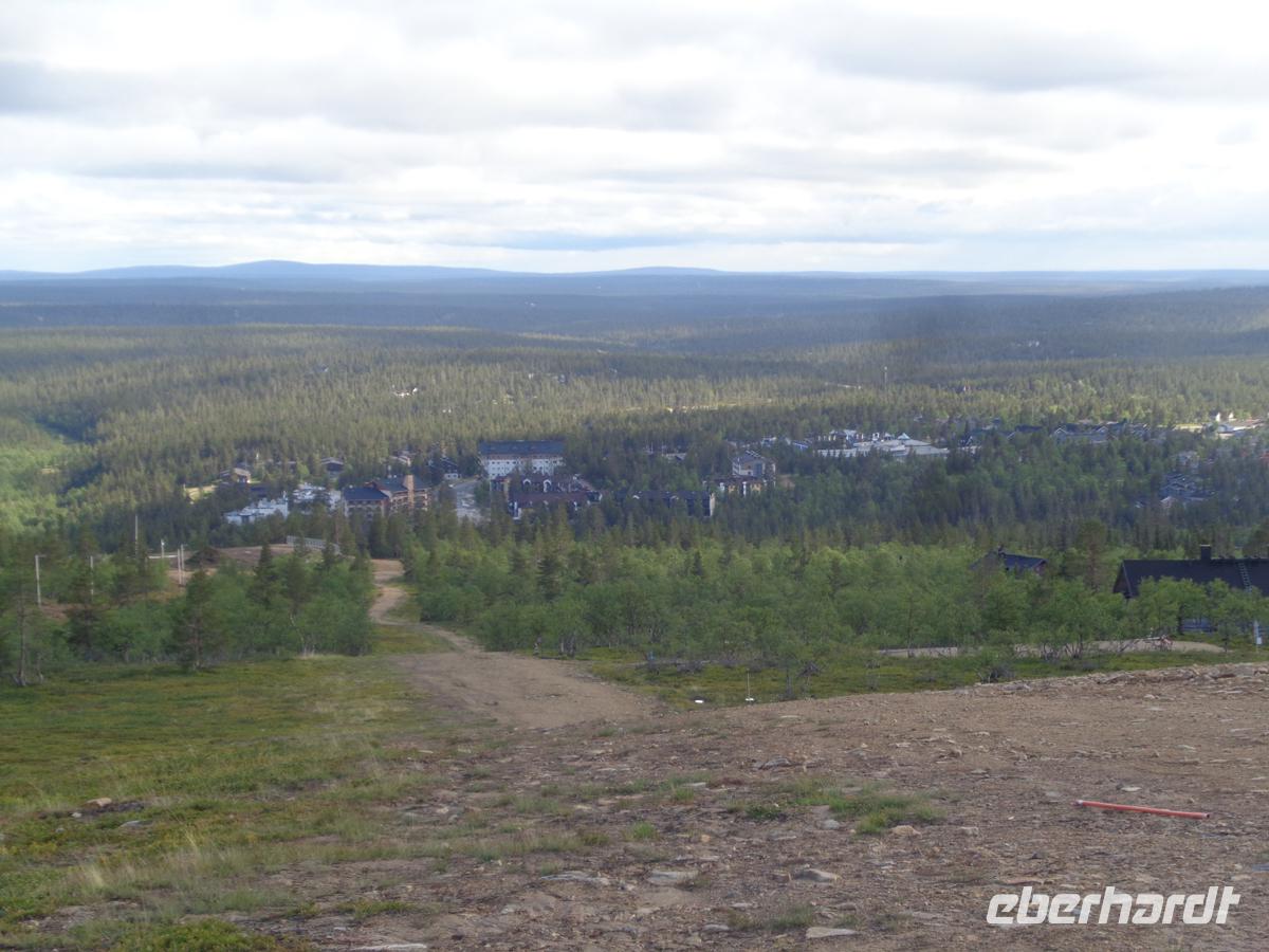 Heute reisen wir nach Finnland. Kurz vor der finnischen Grenze ist die Kirche von Kalix sehenswert. Weil aber der Midsommersamstag ist, schläft ganz Schweden heute aus und die Kirche hat geschlossen. Nun erreichen wir im Bus kurze Zeit später in Tornio die Grenze zu Finnland und stellen unsere Uhren um eine Stunde vor. Zunächst besuchen wir einen riesigen Supermarkt und decken uns für den einsamen Norden mit Vorräten ein. Das Highlight aber ist das Polarkreiszentrum in Rovaniemi. Gleich hinter Tornio beginnen die unendlichen Wälder Finnlands, wo wir heute auch den ersten echten Elch sichten, welcher friedlich und versonnen an einem See grast. In Rovaniemi sitzt auch der Weihnachtsmann und man kann Postkarten schreiben, die dann pünktlich zum Fest ankommen. Wir stoßen am Polarkreis mit einem Gläschen Sekt an und auch auf den Sonnenschein, denn nach fast 4 Tagen Dauerregen hellt sich nun tatsächlich der Himmel auf und wir erblicken die ersten Sonnenstrahlen seit langem. Nach den ersten Hinweisschildern auf Straßenwechsel durch Rentieren erblicken wir auch ein erstes nach einiger Zeit, das direkt an der Straße steht. Es ist Vorsicht geboten, denn die äsenden Tiere achten nicht auf den Straßenverkehr. Bevor wir zu unserem Hotel fahren bereisen wir noch den Aussichtspunkt auf dem Berg Kaunispää, von welchem wir einen herrlichen Blick in die weite bewaldete Landschaft Lapplands haben. Wir kommen bei strahlendem Sonnenschein im Hotel an und genießen das Abendbüffet. Heute ist unsere erste Nacht, in der die Sonne nicht untergehen wird.