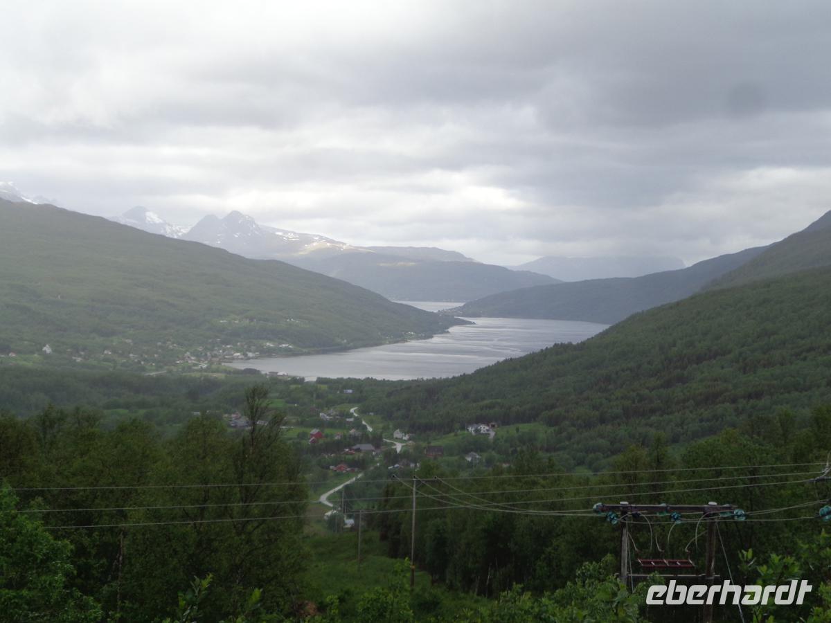 Sie leogt am Ranafjord, wo der Ranaelva in denselbigen mündet. Ein sehr reichhaltigeres Bueffet wird uns hier geboten, wo wir schon wieder südlich des Polarkreises sind, es des Nachts aber trotzdem nicht dunkel wird.