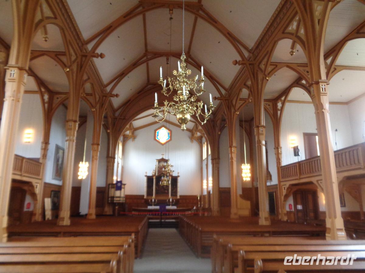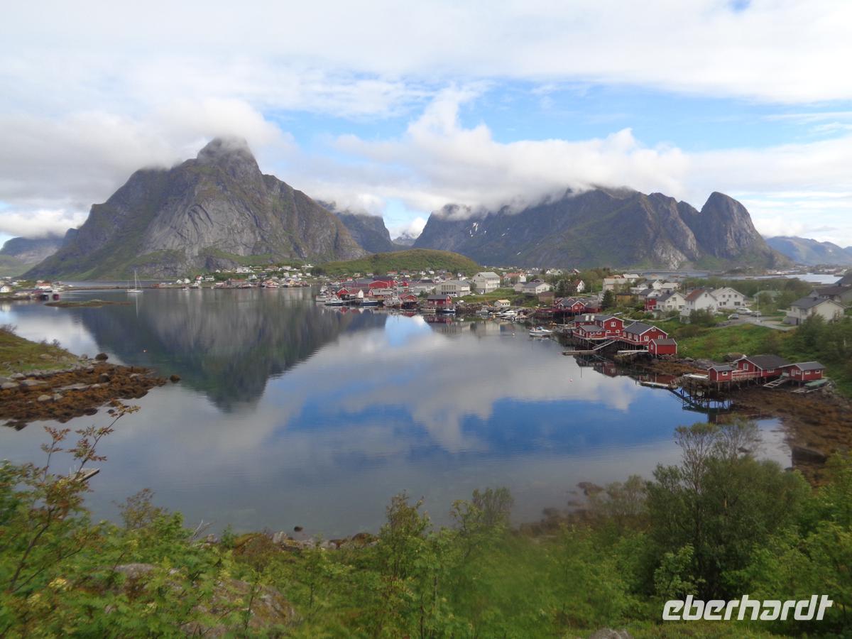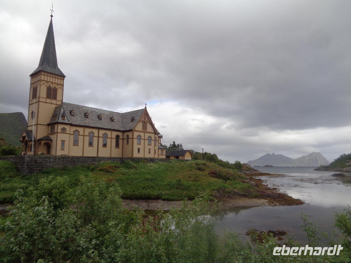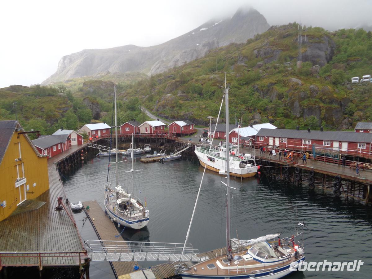 Unsere Rundfahrt über die Lofoten beginnt mit einem authentischen Fischerdorf, welches der ursprüngliche Ort Nusfjord abgibt. Oft liest man, daß Nusfjord auf der Welterbeliste der Unesco steht. Das stimmt jedoch nicht. Trotzdem lohnt ein Besuch dieses kleinen Fischerdorfes, das sich auf der Inselgruppe als eines der ursprünglichsten erhaltenen präsentiert. Ein Höhepunkt ist das Wikingermuseum in Borg. Hier hat man ein nach Originalbefunden ausgegrabenes Häuptlings- und Versammlungshaus aus der Wikingerzeit nachgebaut. Es gibt für uns eine Führung mit einer Suppe, wie sie sicher auch die Nordmänner oft gegessen haben. Ausstellungsräume und ein Film runden den Besuch hervorragend ab. Kurz vor Svolvaer besuchen wir die so genannte Lofotenkathedrale in Kabelvag. Eine Kathedrale ist es nicht. Sie wird nur wegen ihrer Größe so genannt. 1200 Sitzplötze hat sie. Am Nachmittag erreichen wir Svolvaer. Die kleine Stadt ist schnell erkundet. Auf dem zentralen Platz ist Markt und auch eine stattliche Anzahl von Geschäften gibt es im Hauptort der Lofoten zu begucken. Am frühen Abend erhalten wir einen Vortrag über Stockfisch und Lebertran mit Verkostung. Dieser Fisch hat die Lofoten berühmt und reich gemacht. Es gab gar nicht so viele Fischer hier, sodass diese auch für die Fangsaison aus fremden Ländern angeworben wurden. Bis zu 30000 Fischer waren es in den 40er Jahren und prägte den Begriff der Lofotenfischerei.