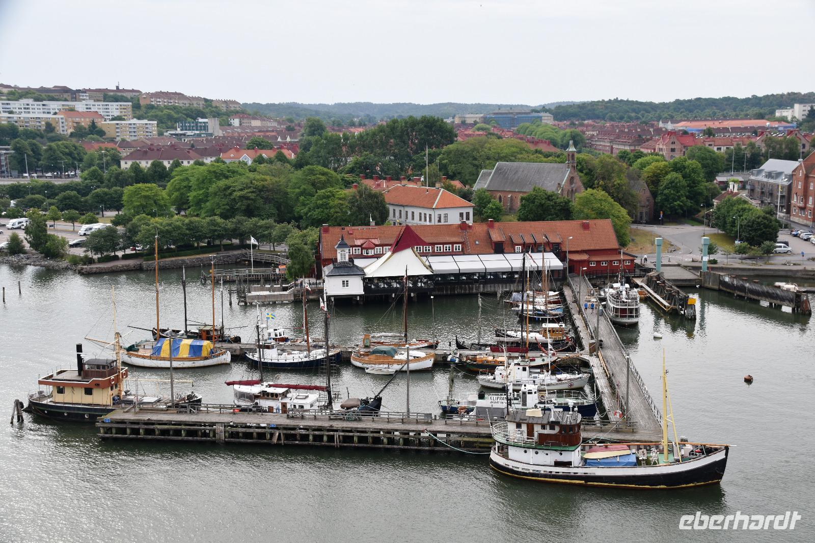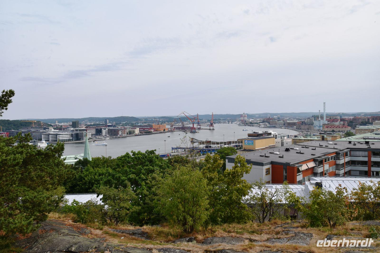 Weiter geht es dann mit unserem Reisebus - zuerst hinauf zum Stigbergstorget mit der 60 m hohen Masthuggskyrkan und einer wunderschönen Aussicht auf die Stadt und den Hafen.