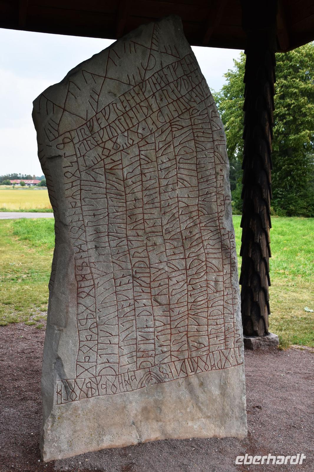 Quer durch Göteborg fahren wir danach hinaus in die Landschaft des sommerlichen Südschwedens. Über Jönköping, den alten Handelsplatz am Südzipfel des Vätternsees, wo die Streichhölzer erfunden wurden und dem Husqvarna-Werk, geht es weiter zum Runenstein von Rök, dem Runenstein mit der längsten Runenschrift der Welt - schön gelegen bei der Kirche von Rök, in der ländlichen Idylle Südschwedens. Die ziehenden Gewitter lassen uns genügend Zeit für eine Besichtigung zwischen den Regenschauern.