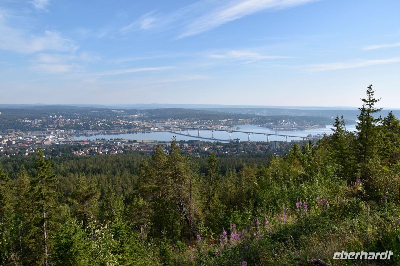 Nach gutem Frühstück starten wir mit frischen Kräften und fahren zuerst hinauf auf den Hausberg von Sundsvall, den 240 m hohen Södraberg, um von hier die schöne Aussicht auf die Stadt, die neue Sundbrücke und die bewaldete Umgebung zu genießen.