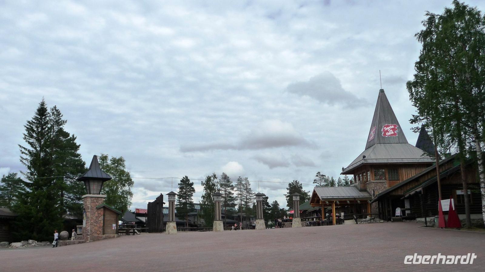 Erster Halt ist an dem großen Einkaufspark der Stadt Tornio an der schwedisch-finnischen Grenze. Von hier geht es mittags weiter in den Norden hinauf. Schließlich treffen wir bei Rovaniemi auf den Polarkreis und das Weihnachtsdorf. Für die Polarkreisüberquerung gibt es ein Glas Sekt von eberhardt Travel für jeden Gast.