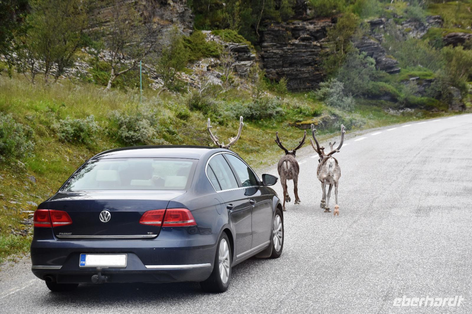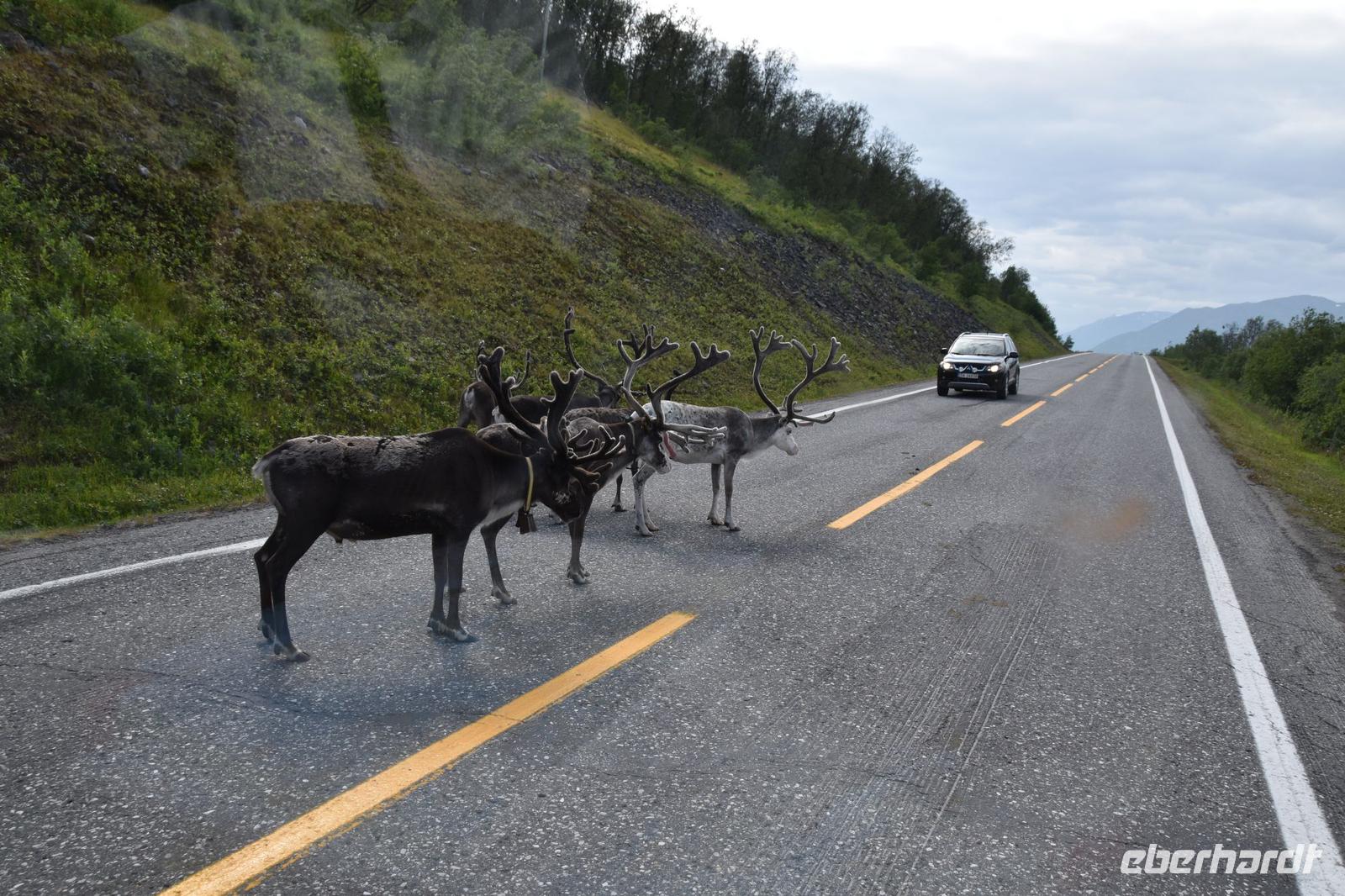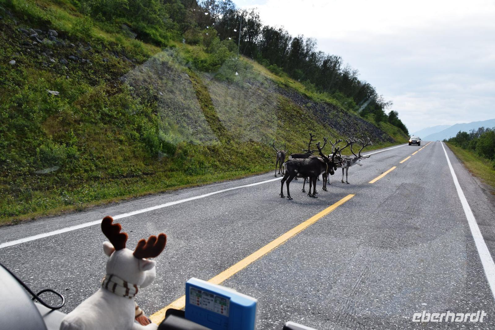 Neben der Uferstraße dann plötzlich Rentiere und nochmals Rentiere.