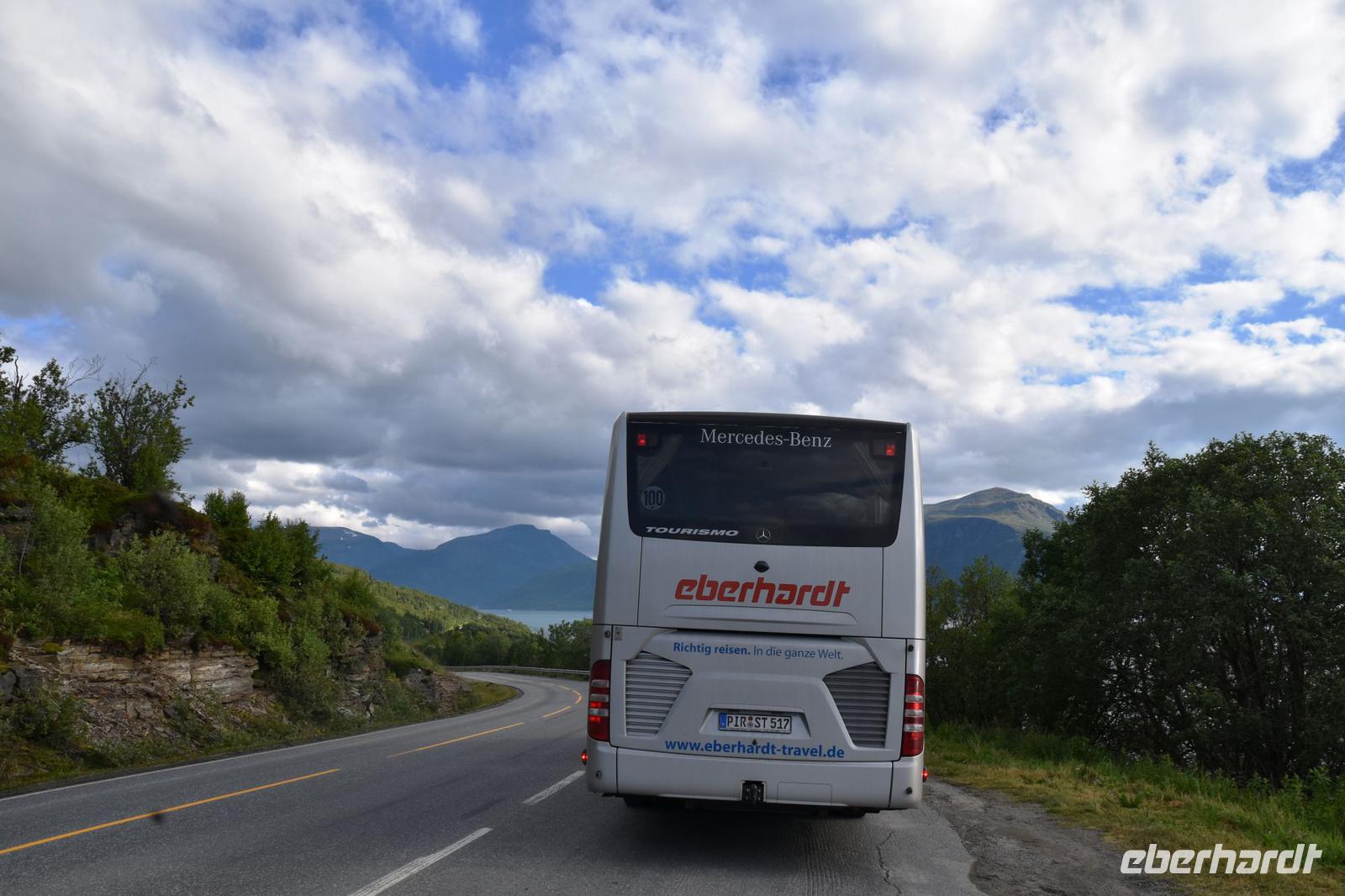 Weiter geht es, vorbei an der Marmorstadt Fauske über das Saltfjell mit dem norwegischen Polarkreiszentrum und von hier wieder hinab, nach Mo i Rana am Ranfjord. Hier nimmt uns das Hotel Meyergarden auf und bietet uns ein gepflegtes Nachtlager und gutes Essen.