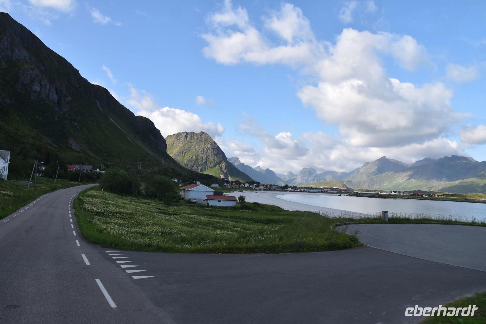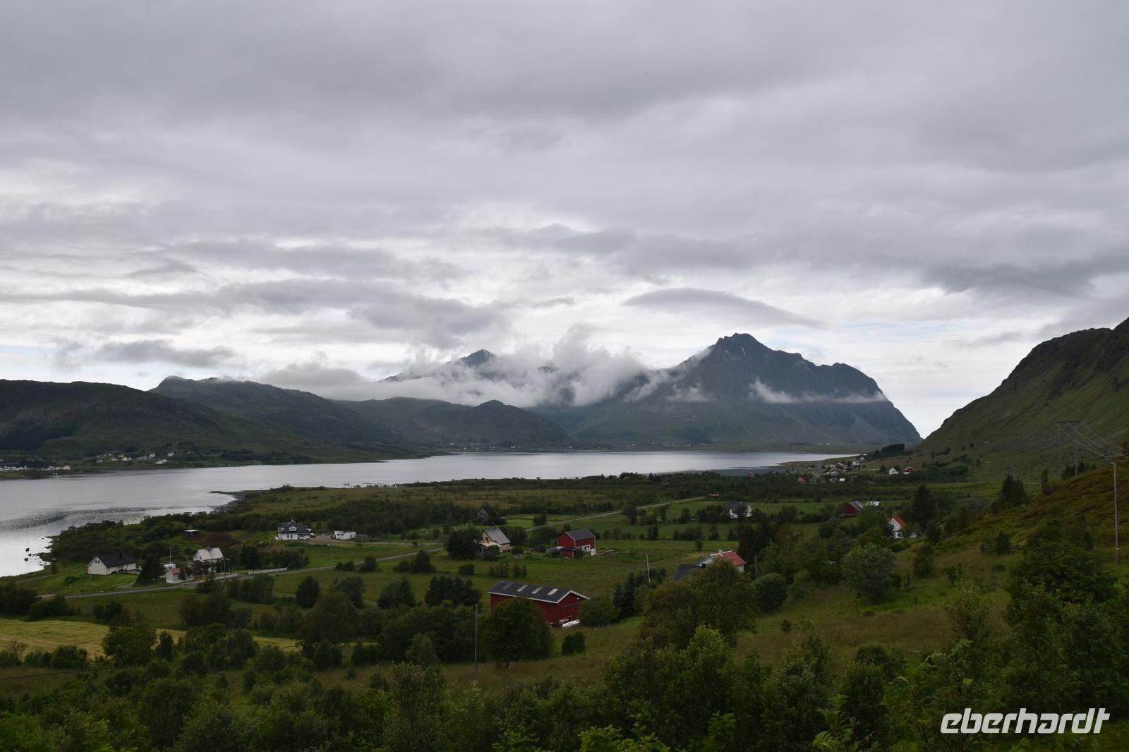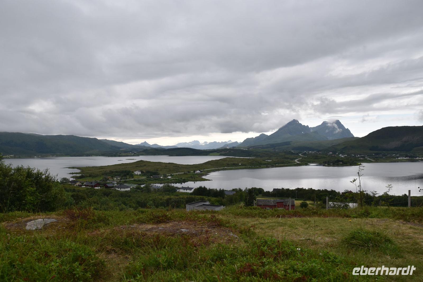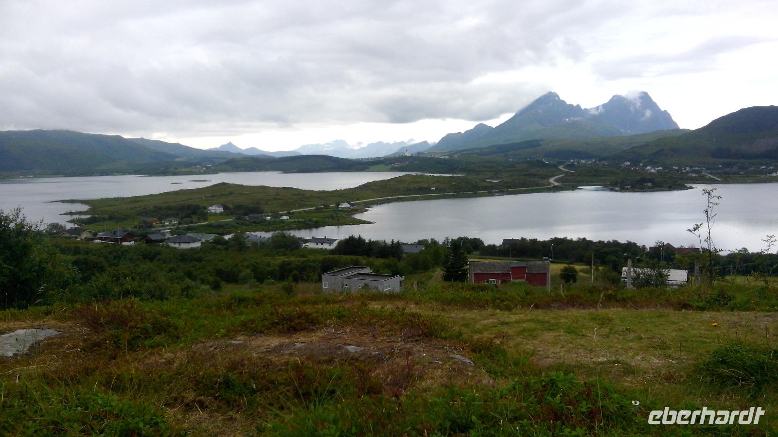 Die Weiterfahrt bringt uns zur Aussicht Torvdalshalsen, nach Leknes zum Einkaufscenter und über den Sennesviksveien und den Pass von Einangen zurück nach Mortsund.