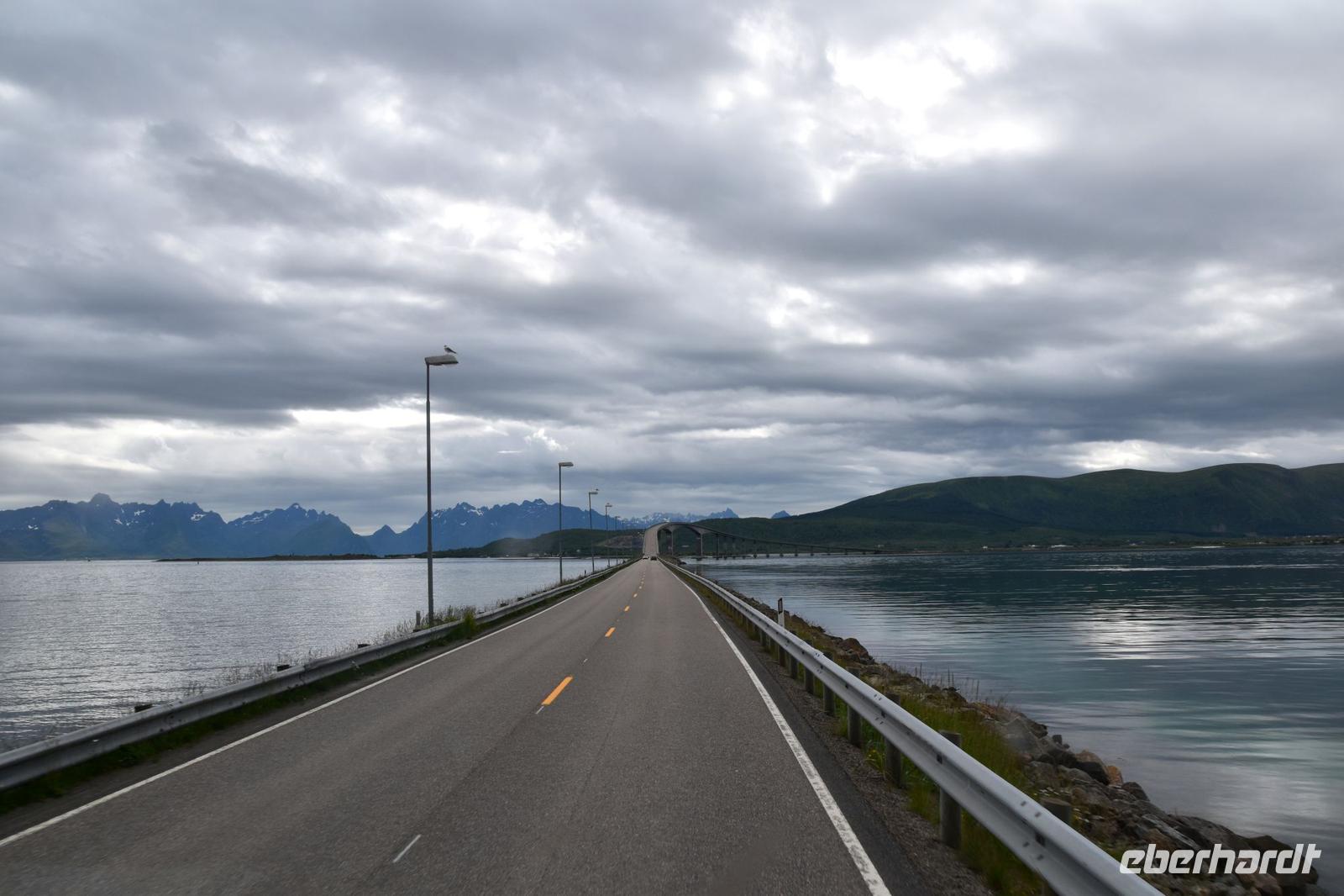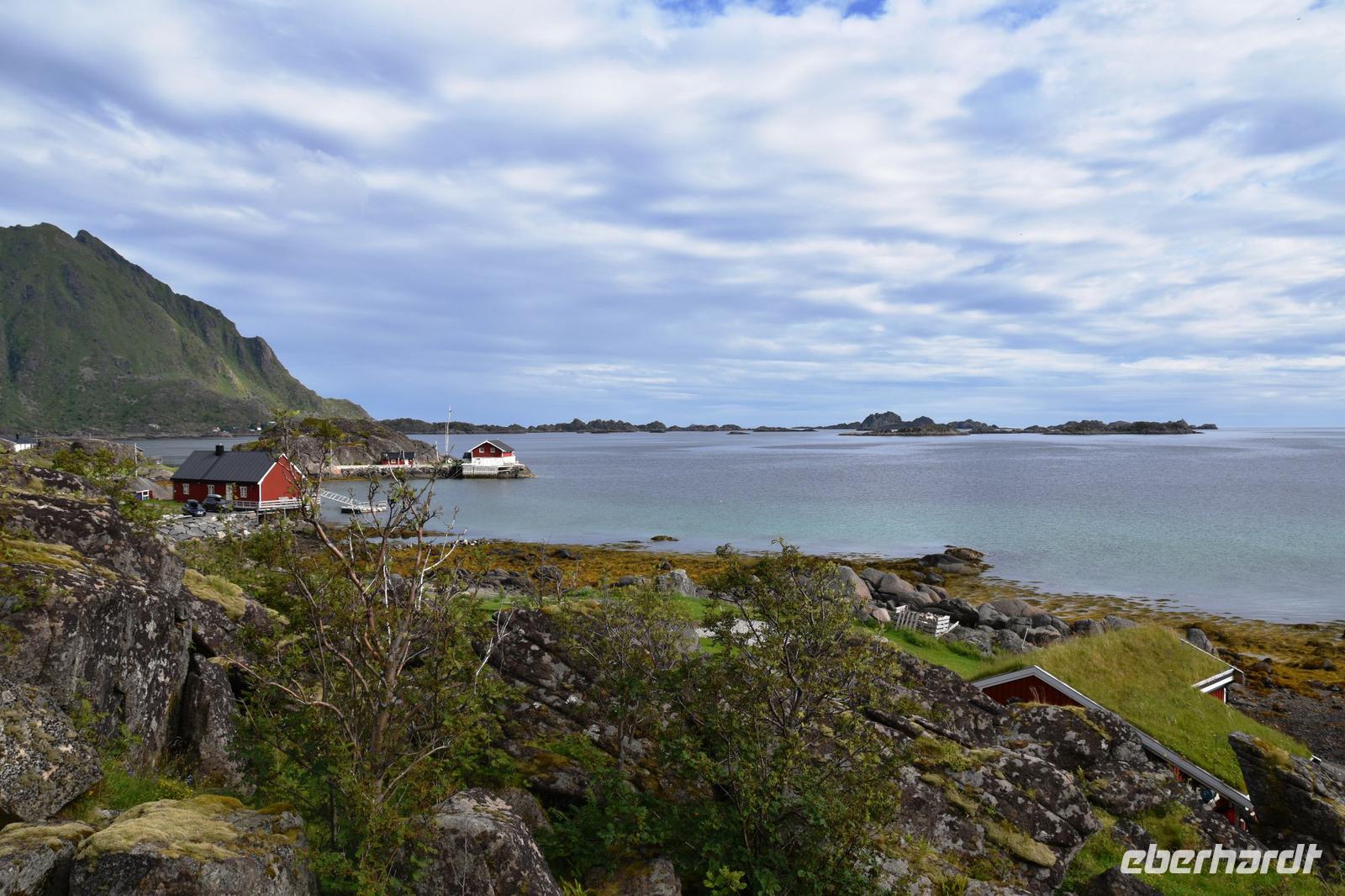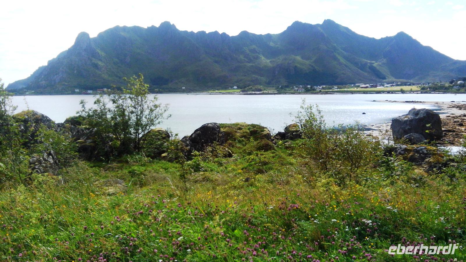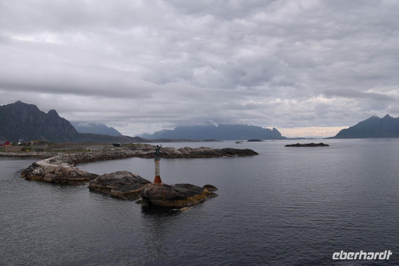 Die Weiterfahrt bringt uns zur Aussicht Torvdalshalsen, nach Leknes zum Einkaufscenter und über den Sennesviksveien und den Pass von Einangen zurück nach Mortsund.