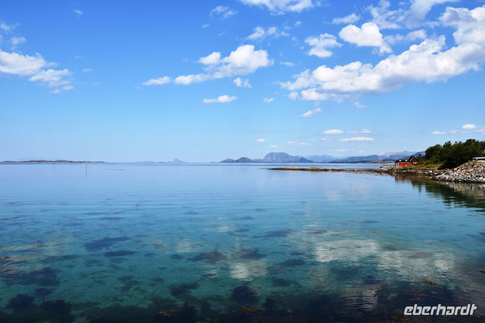 Bei schönstem Sonnenwetter fahren wir über die Inseln nach Südwesten, nach Moskenes, wo unsere Fähre auf uns wartet.