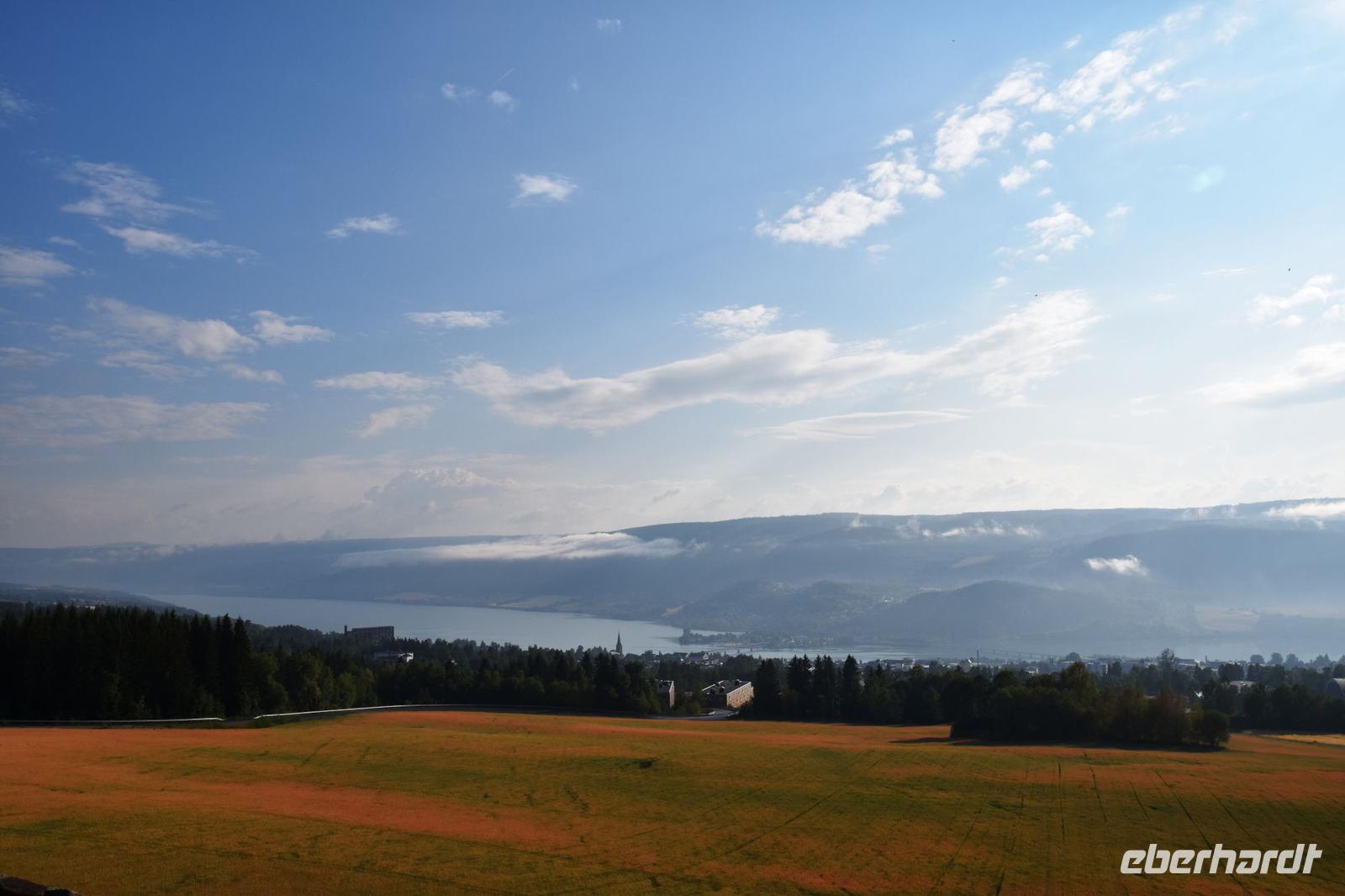 Danach wieder Landschaft pur - wieder anders - das Wintersportzentrum Oppdal, das Dovre- und Sundvallfjell, das Gudbrandsdal mit der Stabkirche von Ringebu. Schließlich am Abend die Olympiastadt Lillehammer mit den gewaltigen Sprungschanzen hoch über dem Mjøsasee. An Norwegens größten Binnensee liegt auch das Verwaltungszentrum der Hedmark, die Stadt Hamár. Wo wir im